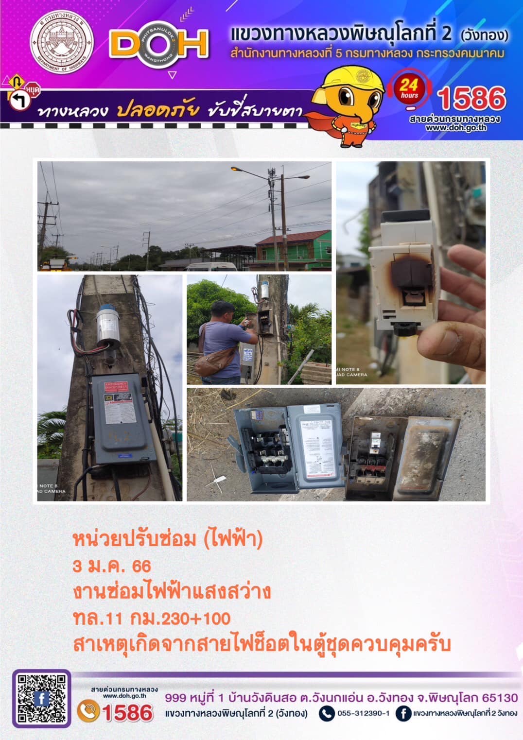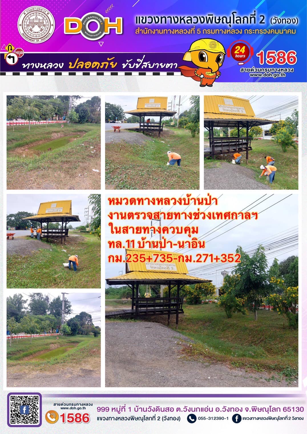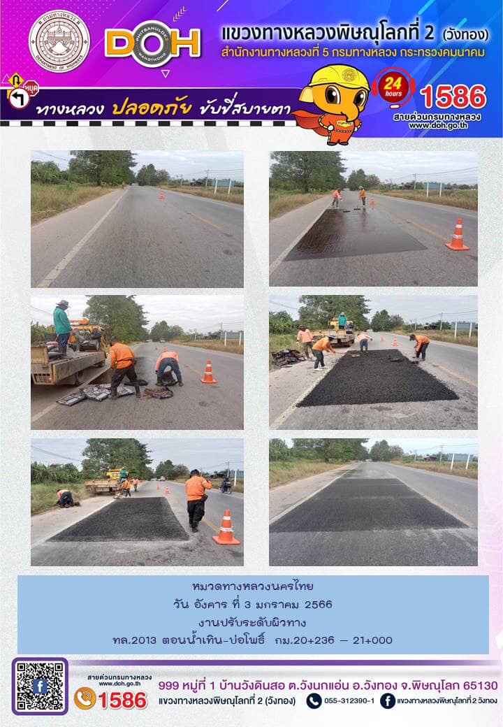 การปฏิบัติงานของ หมวดทางหลวง และ หน่วยงานในสังกัด เพื่ออำนวยความสะดวก และปลอดภัยให้กับประชาชนผู้ใช้เส้นทาง ประจำ วันอังคารที่ 3 มกราคม 2566