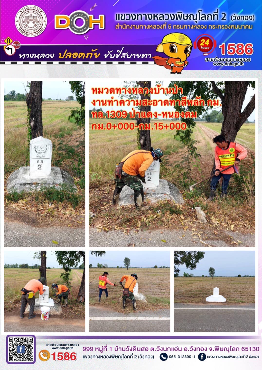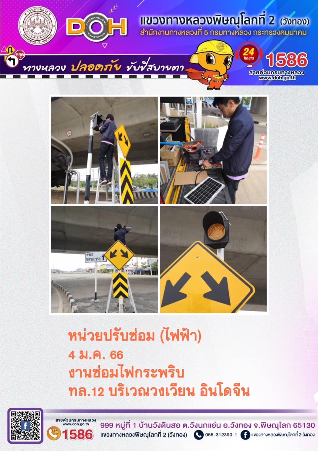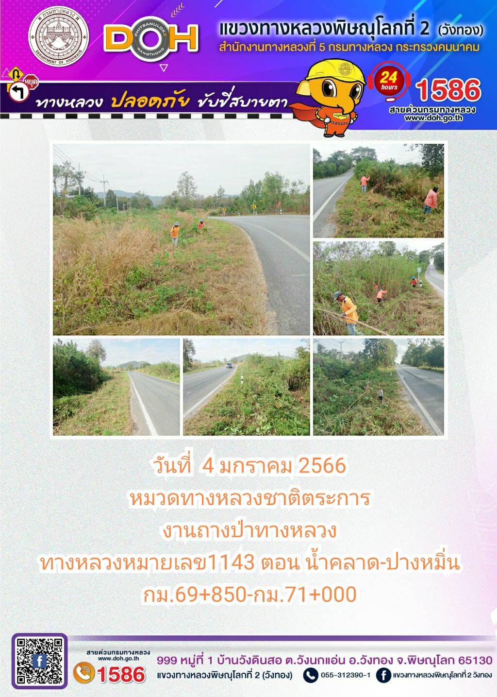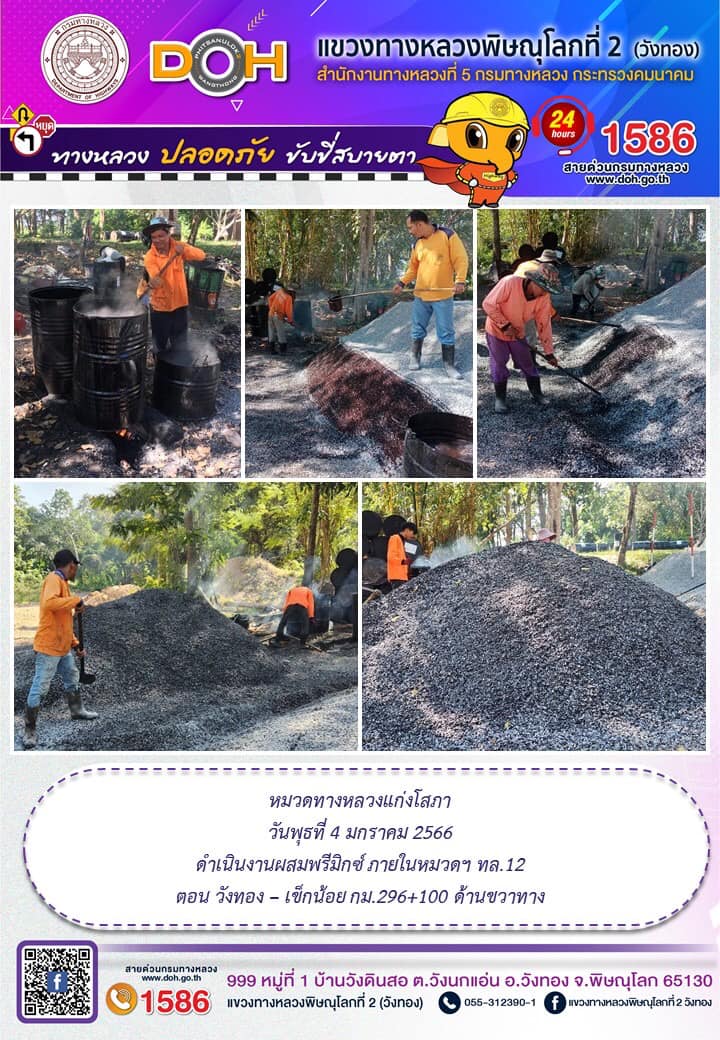 การปฏิบัติงานของ หมวดทางหลวง และ หน่วยงานในสังกัด เพื่ออำนวยความสะดวก และปลอดภัยให้กับประชาชนผู้ใช้เส้นทาง ประจำ วันพุธที่ 4 มกราคม 2566