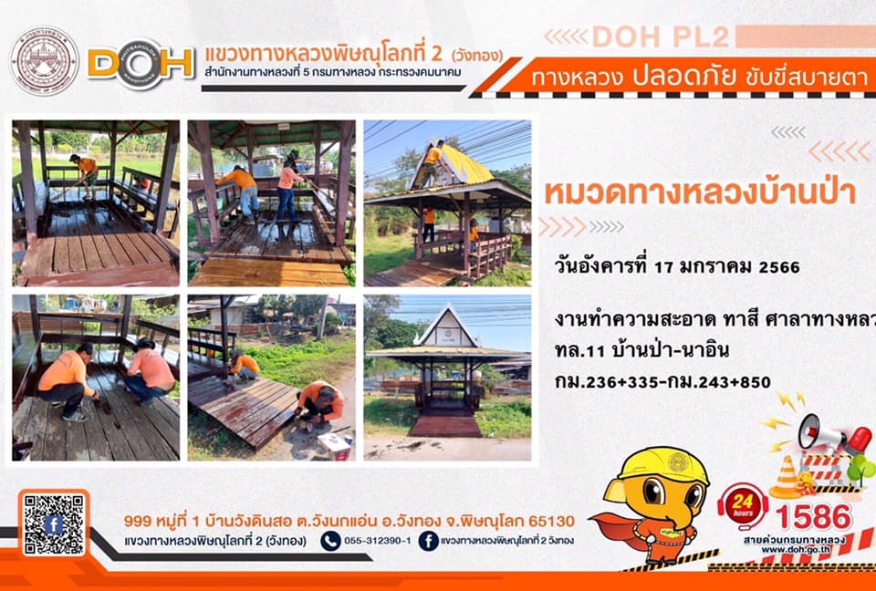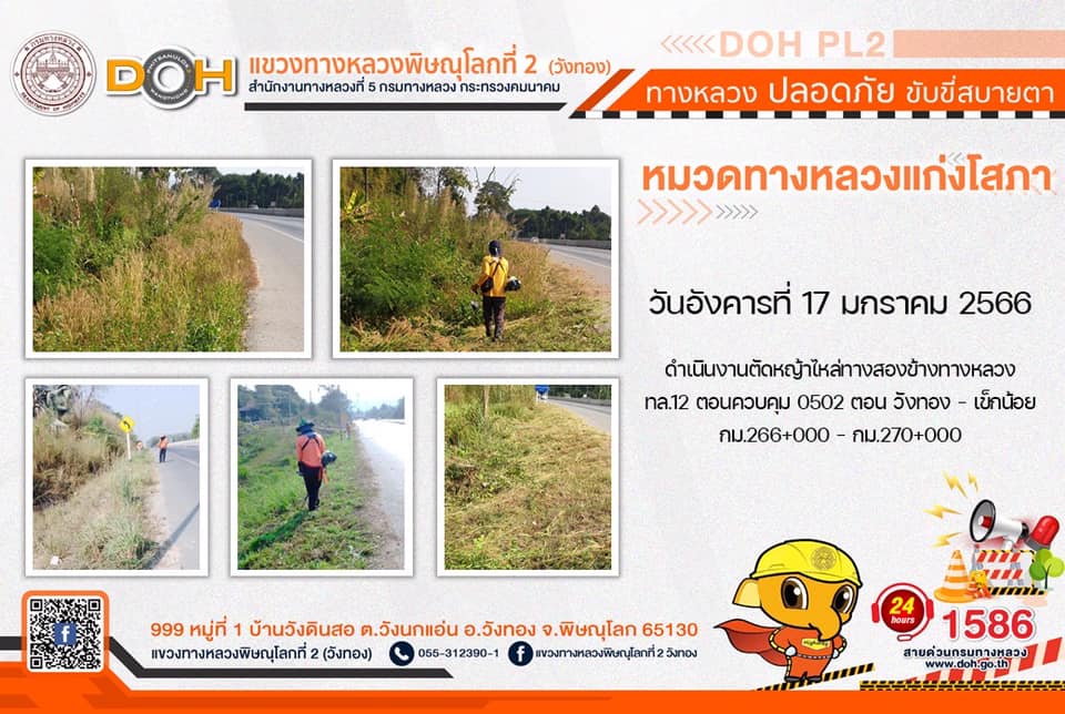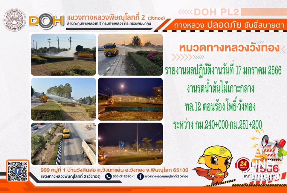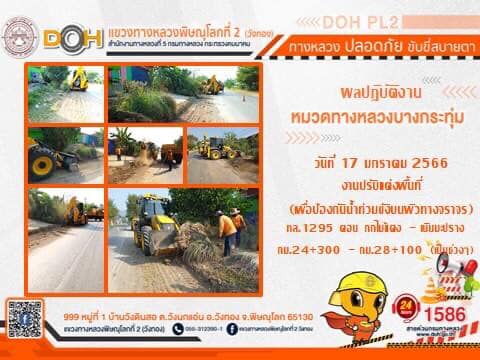 การปฏิบัติงานของ หมวดทางหลวง และ หน่วยงานในสังกัด เพื่ออำนวยความสะดวก และปลอดภัยให้กับประชาชนผู้ใช้เส้นทาง ประจำ วันอังคารที่ 17 มกราคม 2566