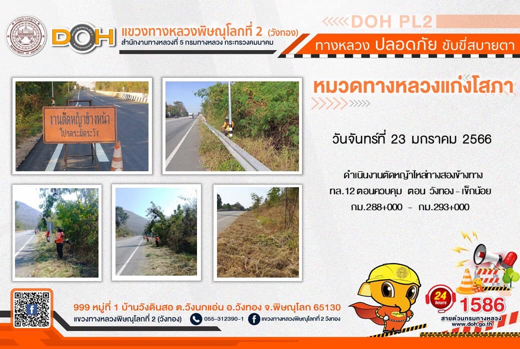 การปฏิบัติงานของ หมวดทางหลวง และ หน่วยงานในสังกัด เพื่ออำนวยความสะดวก และปลอดภัยให้กับประชาชนผู้ใช้เส้นทาง ประจำ วันจันทร์ที่ 23 มกราคม 2566