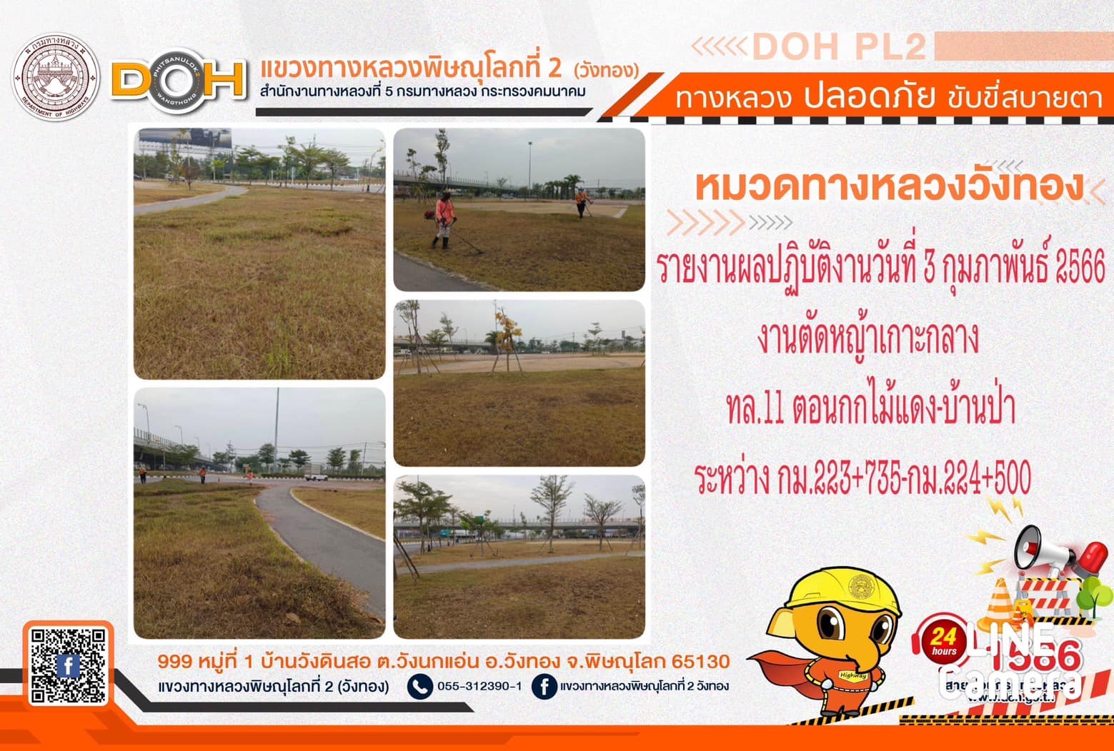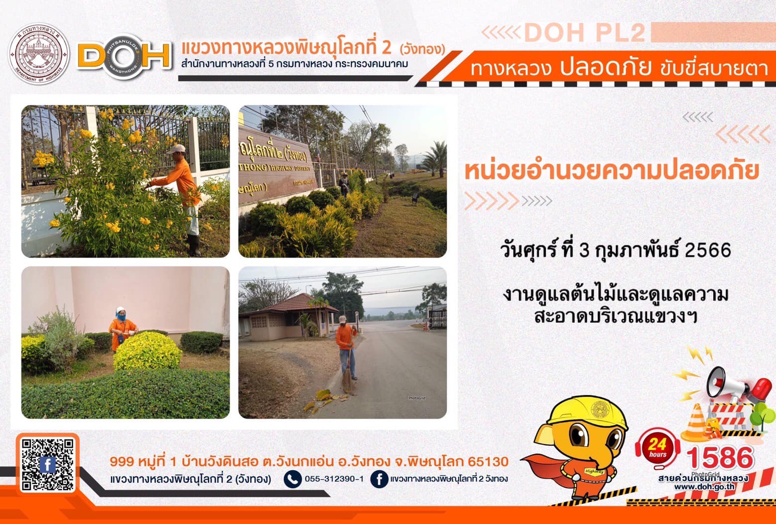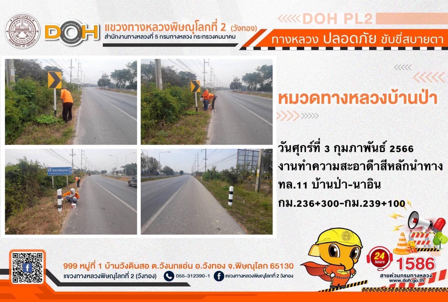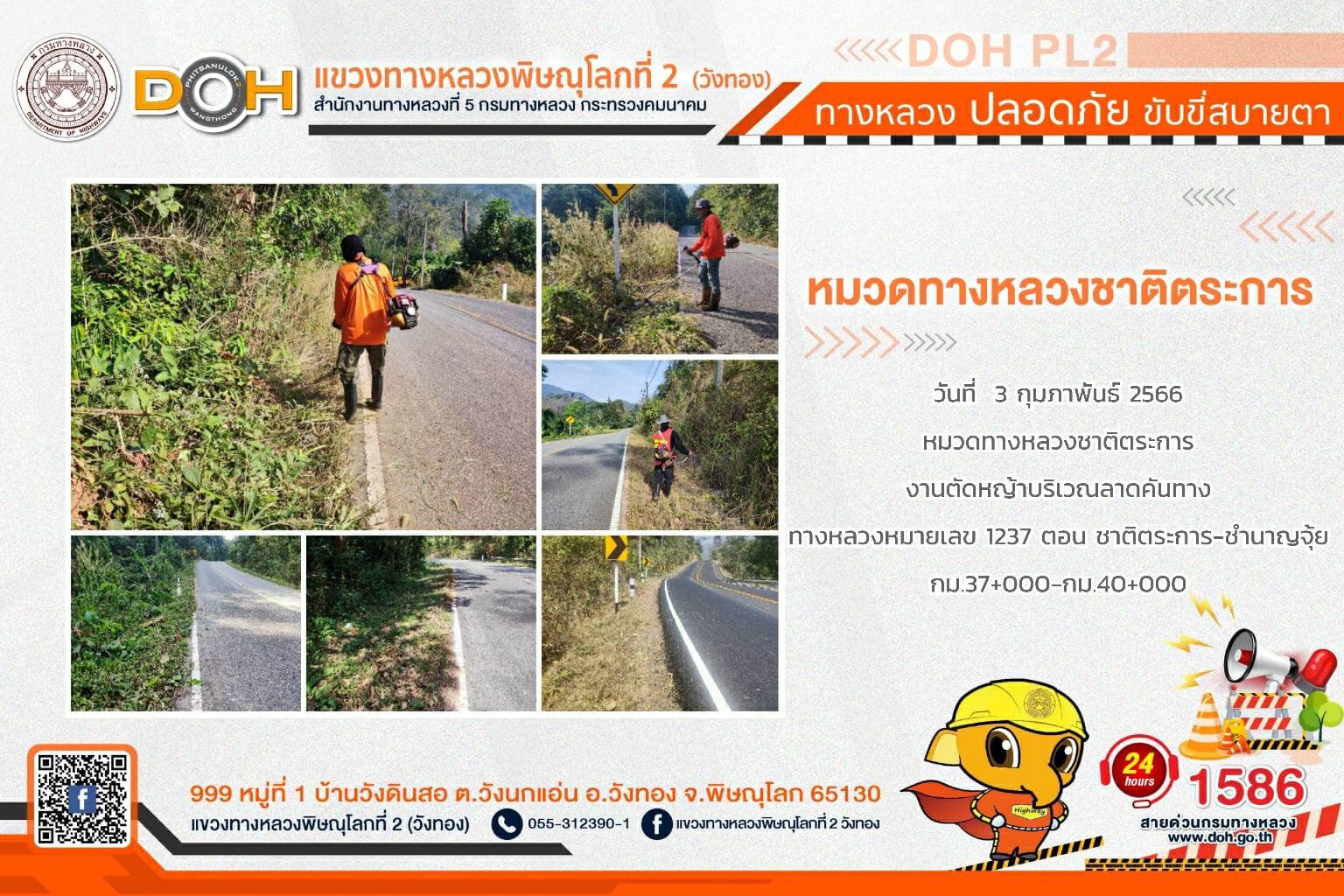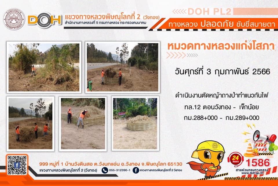 การปฏิบัติงานของ หมวดทางหลวง และ หน่วยงานในสังกัด เพื่ออำนวยความสะดวก และปลอดภัยให้กับประชาชนผู้ใช้เส้นทาง ประจำ วันศุกร์ที่ 3 กุมภาพันธ์ 2566