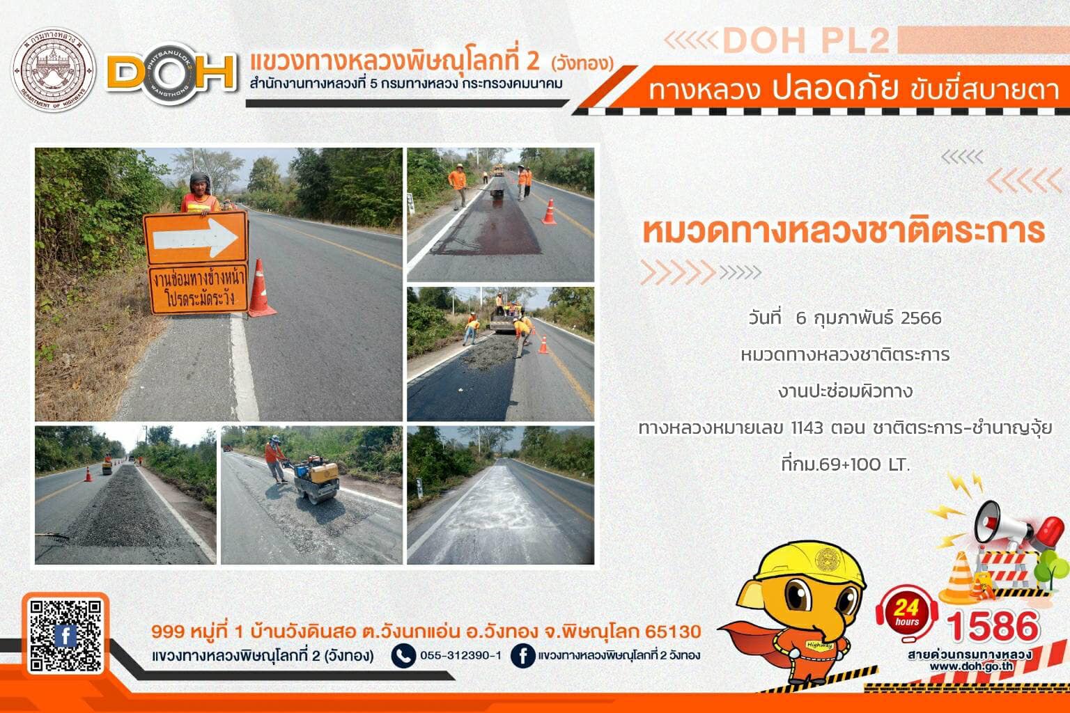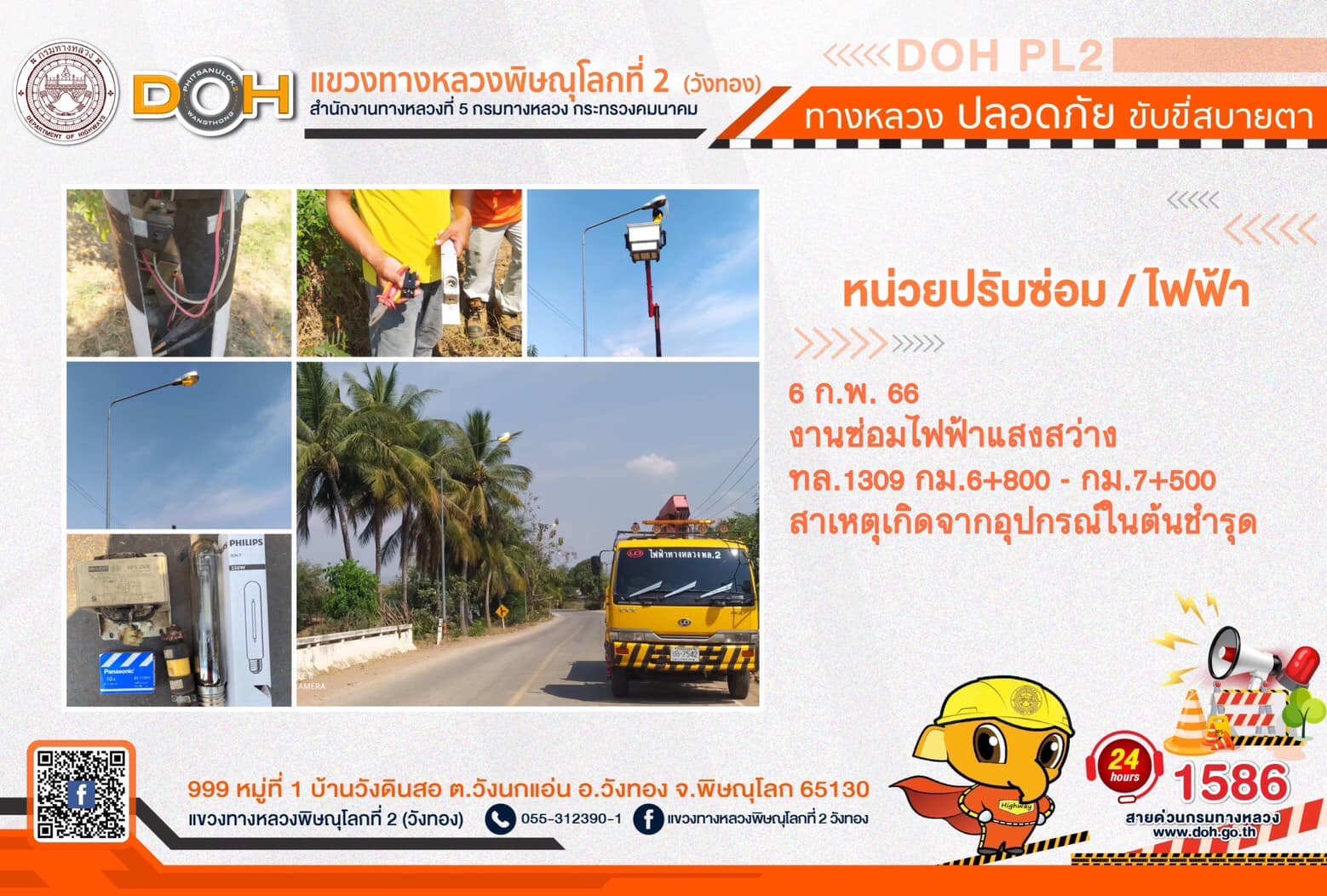การปฏิบัติงานของ หมวดทางหลวง และ หน่วยงานในสังกัด เพื่ออำนวยความสะดวก และปลอดภัยให้กับประชาชนผู้ใช้เส้นทาง ประจำ วันจันทร์ที่ 6 กุมภาพันธ์ 2566