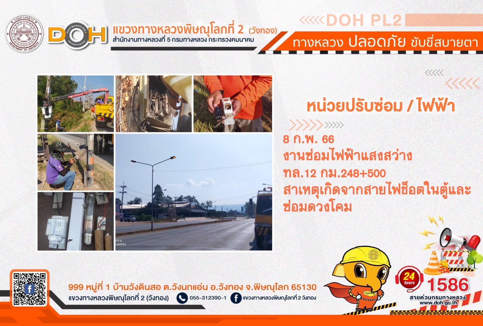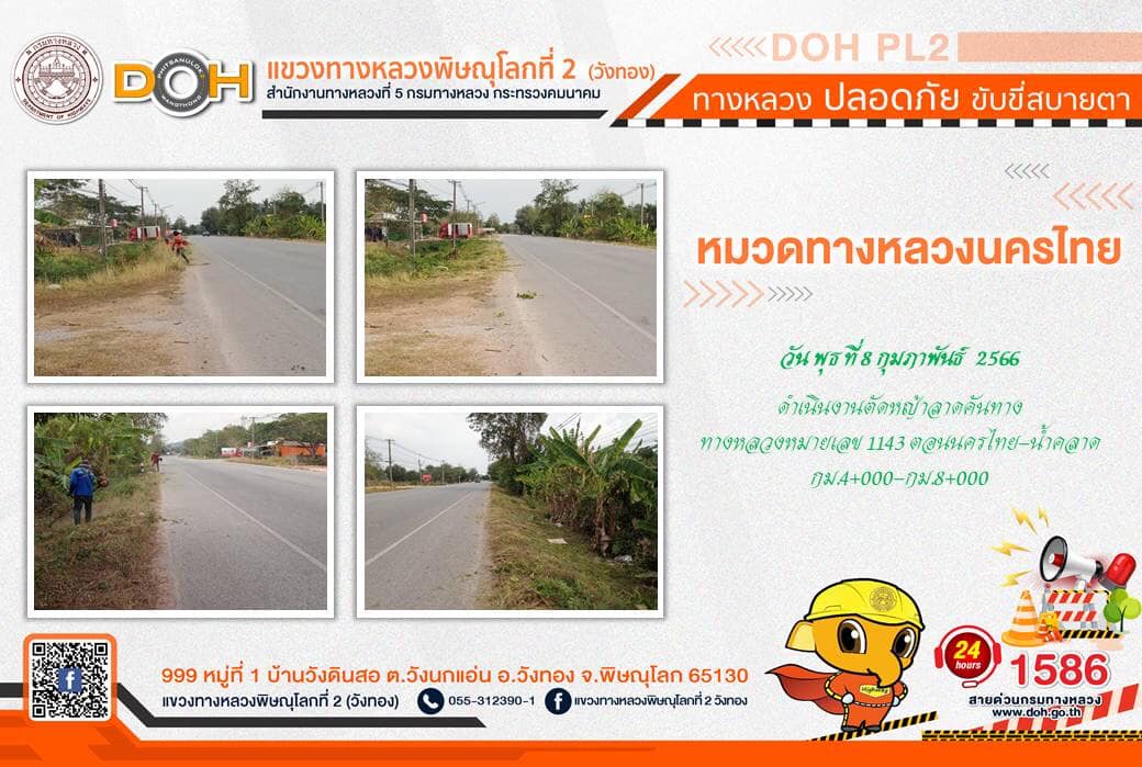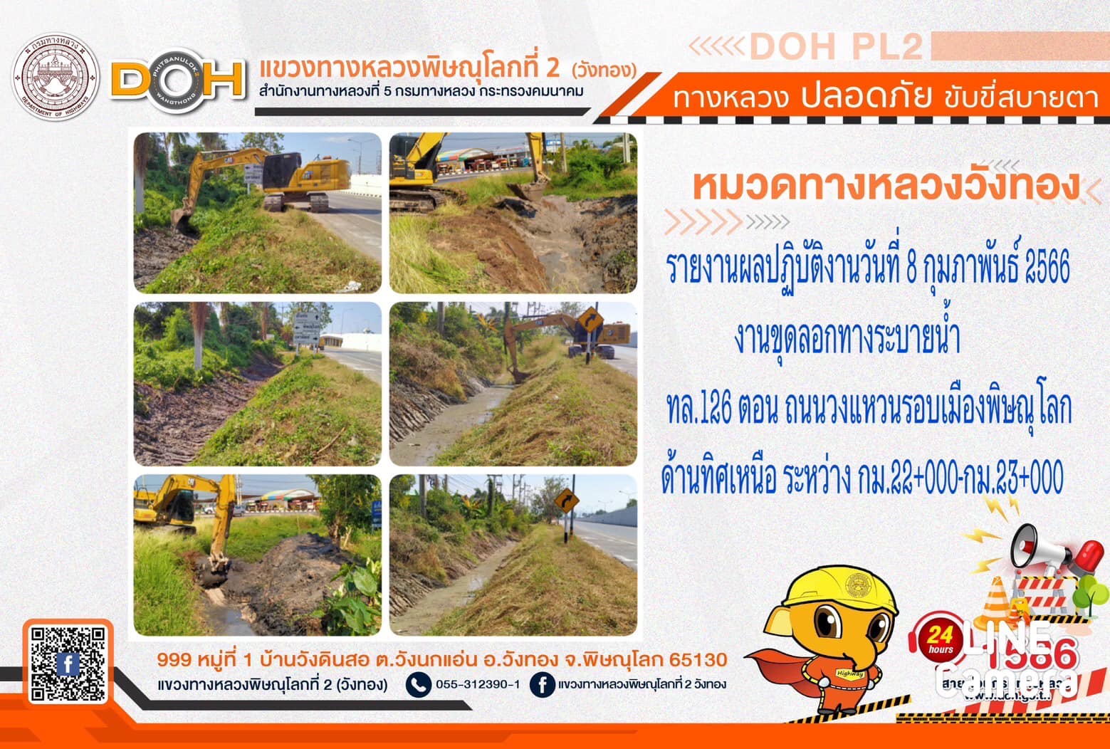 การปฏิบัติงานของ หมวดทางหลวง และ หน่วยงานในสังกัด เพื่ออำนวยความสะดวก และปลอดภัยให้กับประชาชนผู้ใช้เส้นทาง ประจำ วันพุธที่ 8 กุมภาพันธ์ 2566