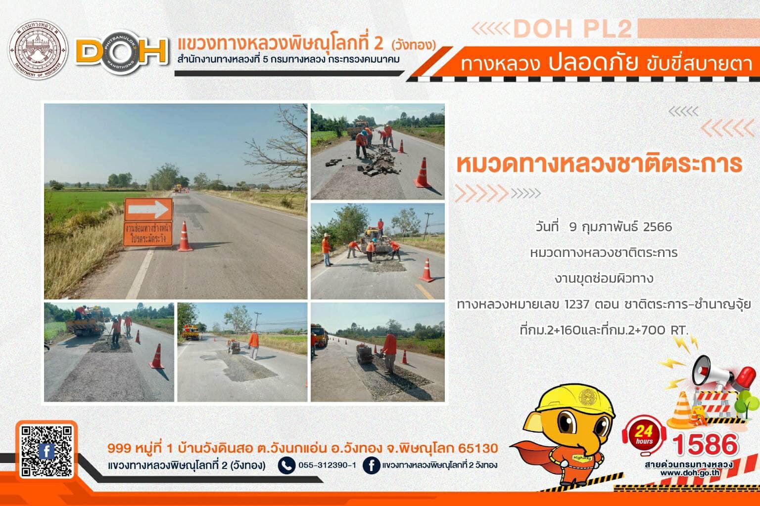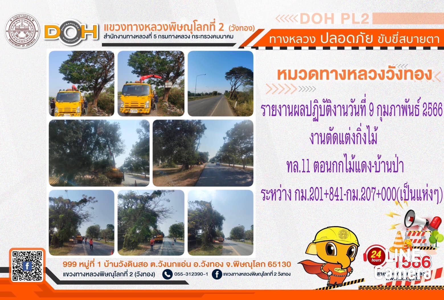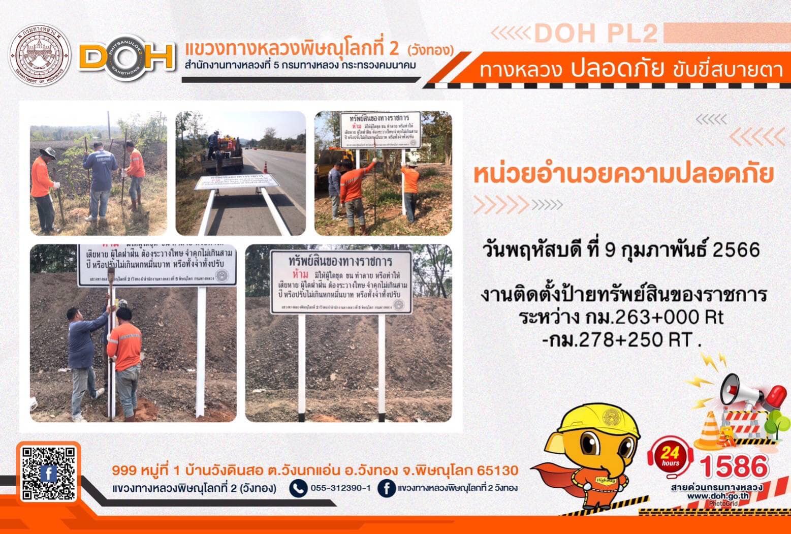 การปฏิบัติงานของ หมวดทางหลวง และ หน่วยงานในสังกัด เพื่ออำนวยความสะดวก และปลอดภัยให้กับประชาชนผู้ใช้เส้นทาง ประจำ วันพฤหัสบดีที่ 9 กุมภาพันธ์ 2566