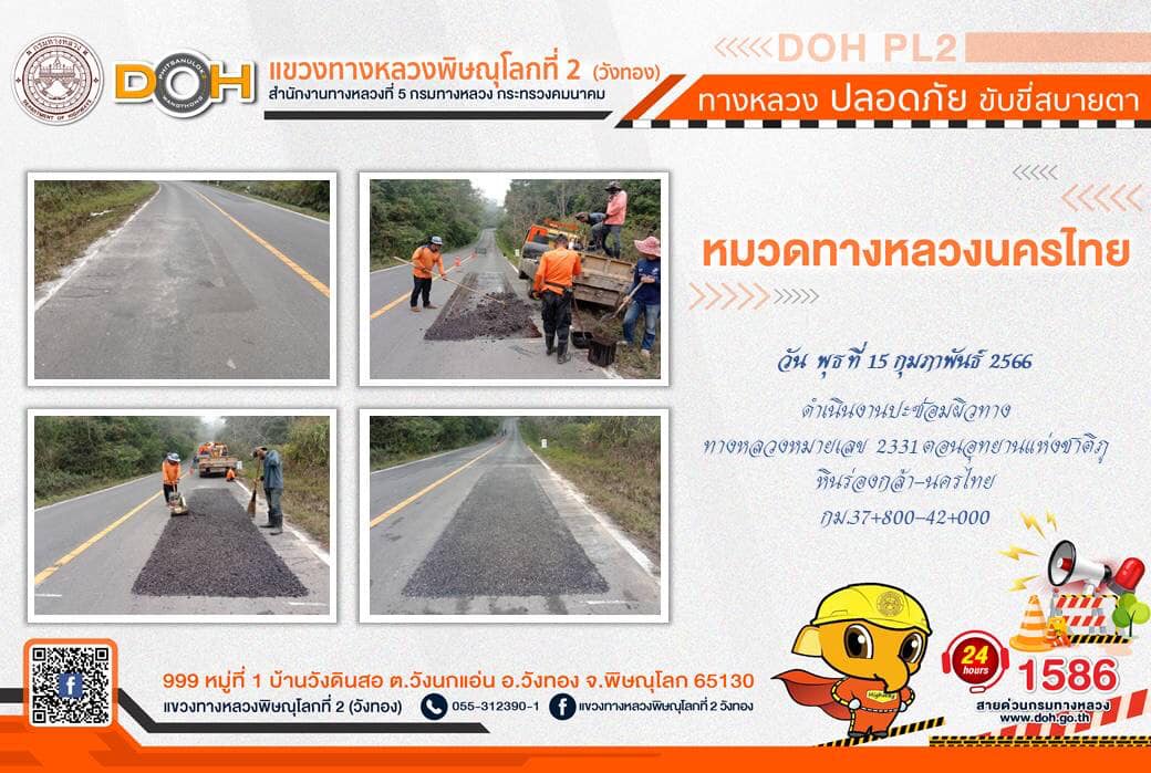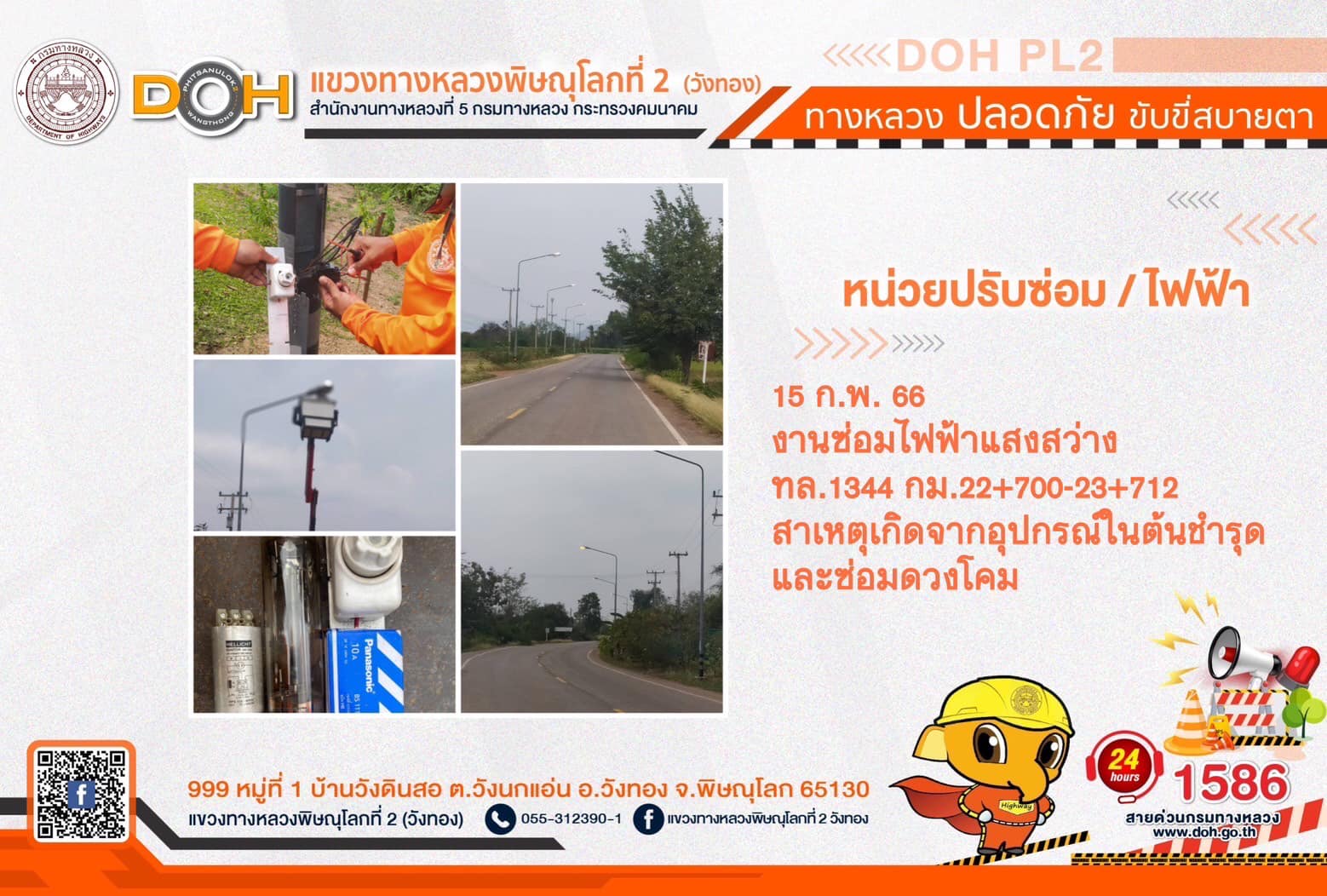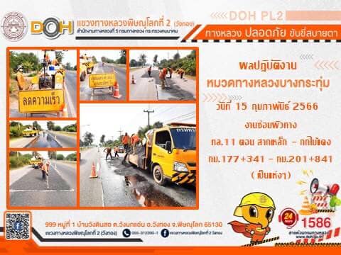 การปฏิบัติงานของ หมวดทางหลวง และ หน่วยงานในสังกัด เพื่ออำนวยความสะดวก และปลอดภัยให้กับประชาชนผู้ใช้เส้นทาง ประจำ วันพุธที่ 15 กุมภาพันธ์ 2566