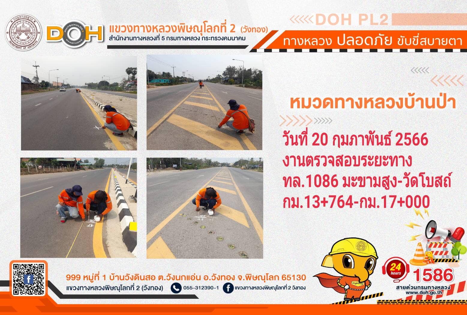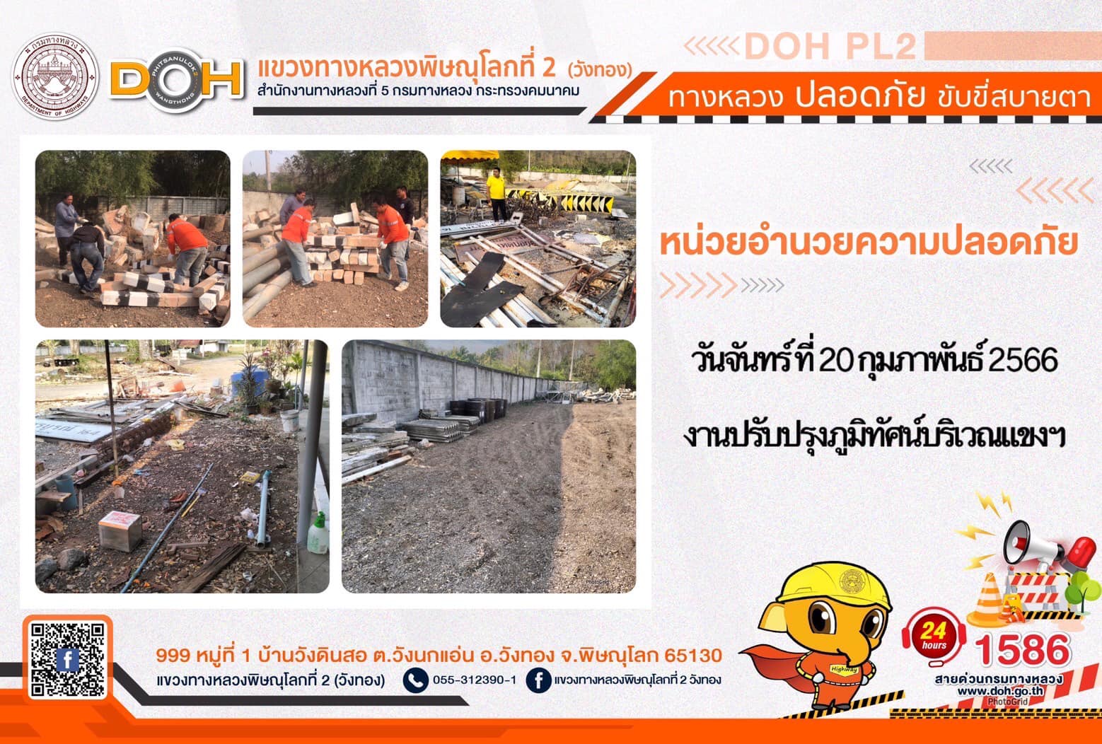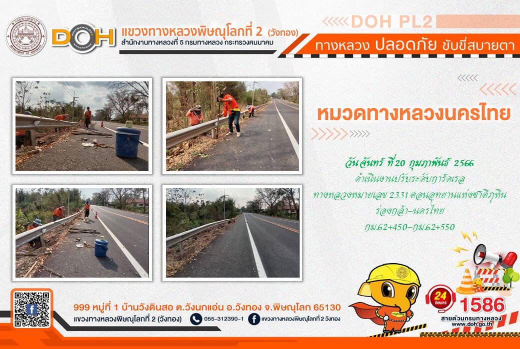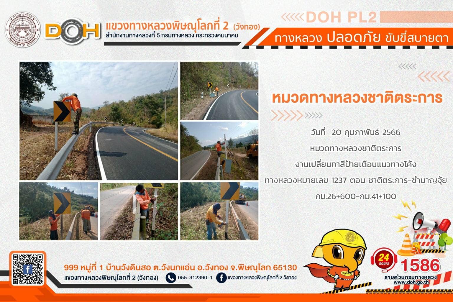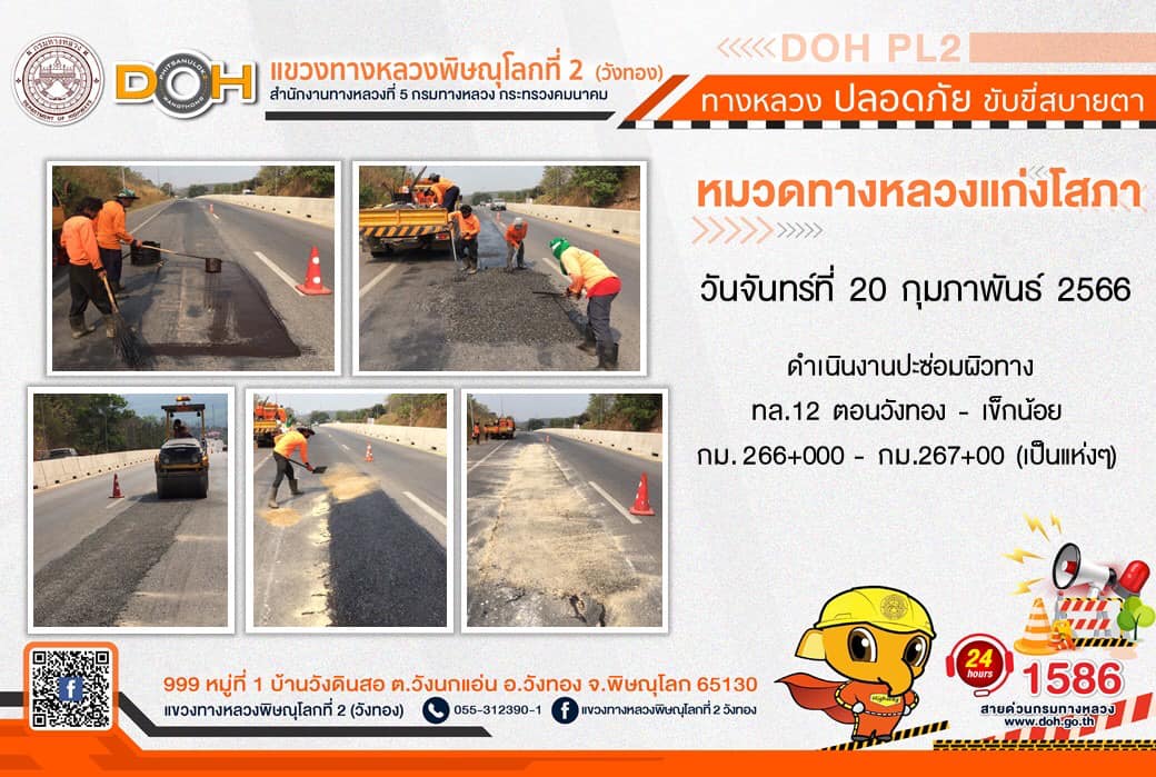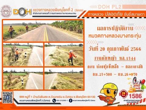 การปฏิบัติงานของ หมวดทางหลวง และ หน่วยงานในสังกัด เพื่ออำนวยความสะดวก และปลอดภัยให้กับประชาชนผู้ใช้เส้นทาง ประจำ วันจันทร์ที่ 20 กุมภาพันธ์ 2566