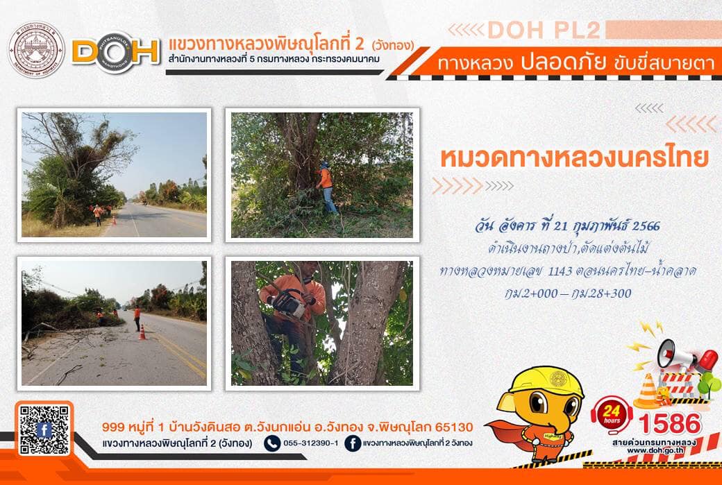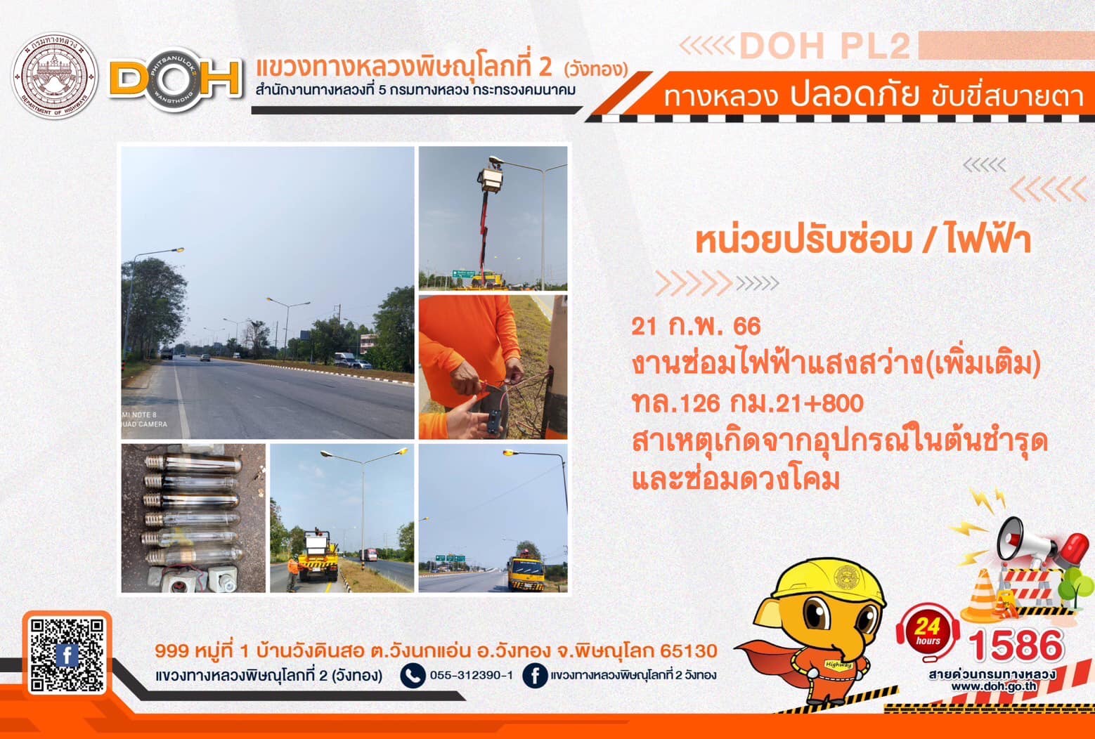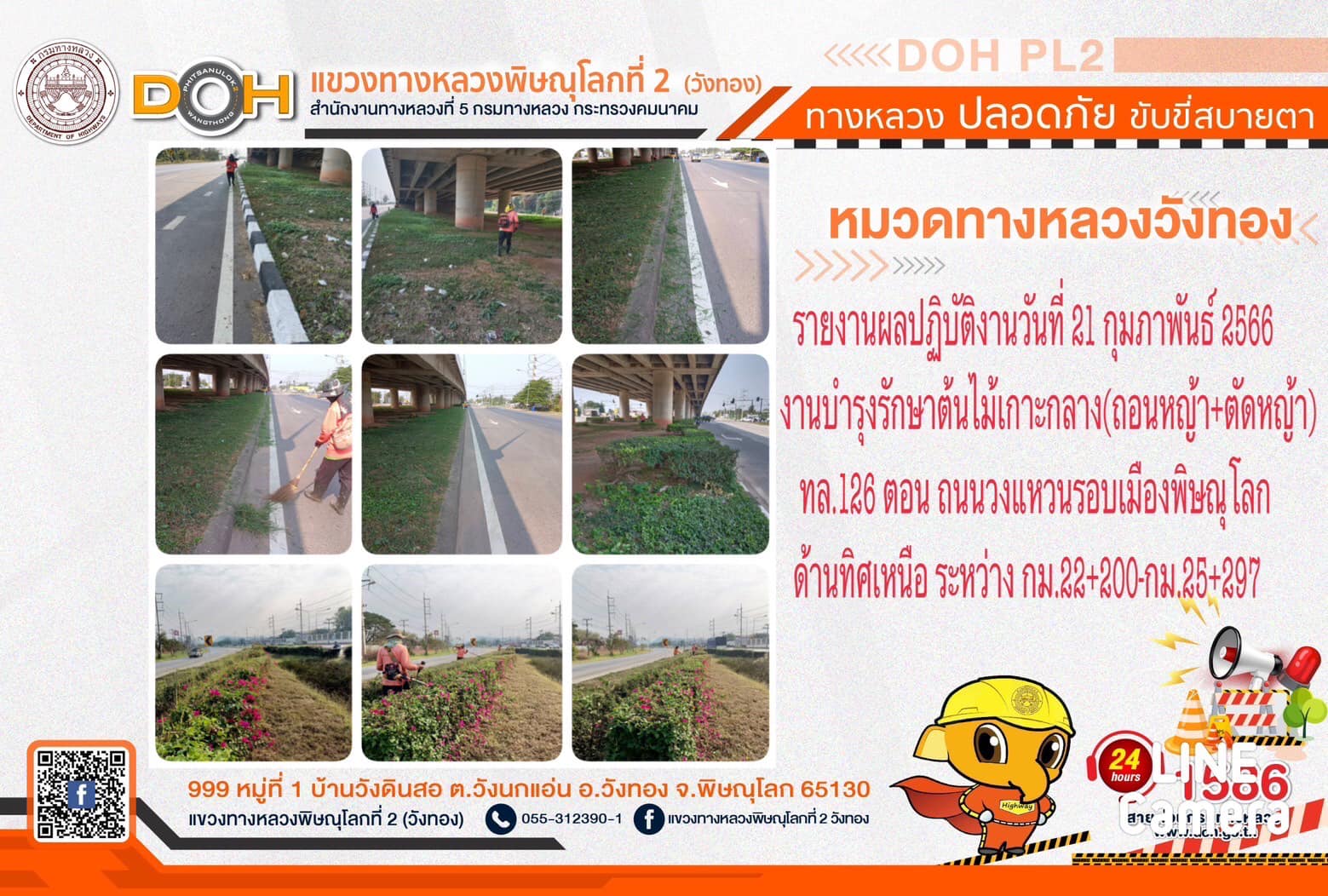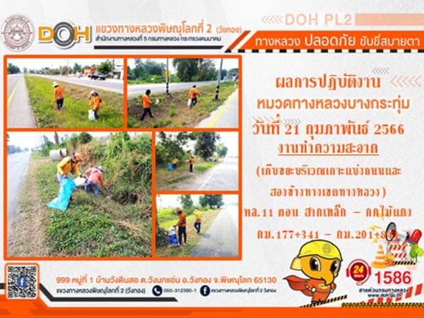 การปฏิบัติงานของ หมวดทางหลวง และ หน่วยงานในสังกัด เพื่ออำนวยความสะดวก และปลอดภัยให้กับประชาชนผู้ใช้เส้นทาง ประจำ วันอังคารที่ 21 กุมภาพันธ์ 2566