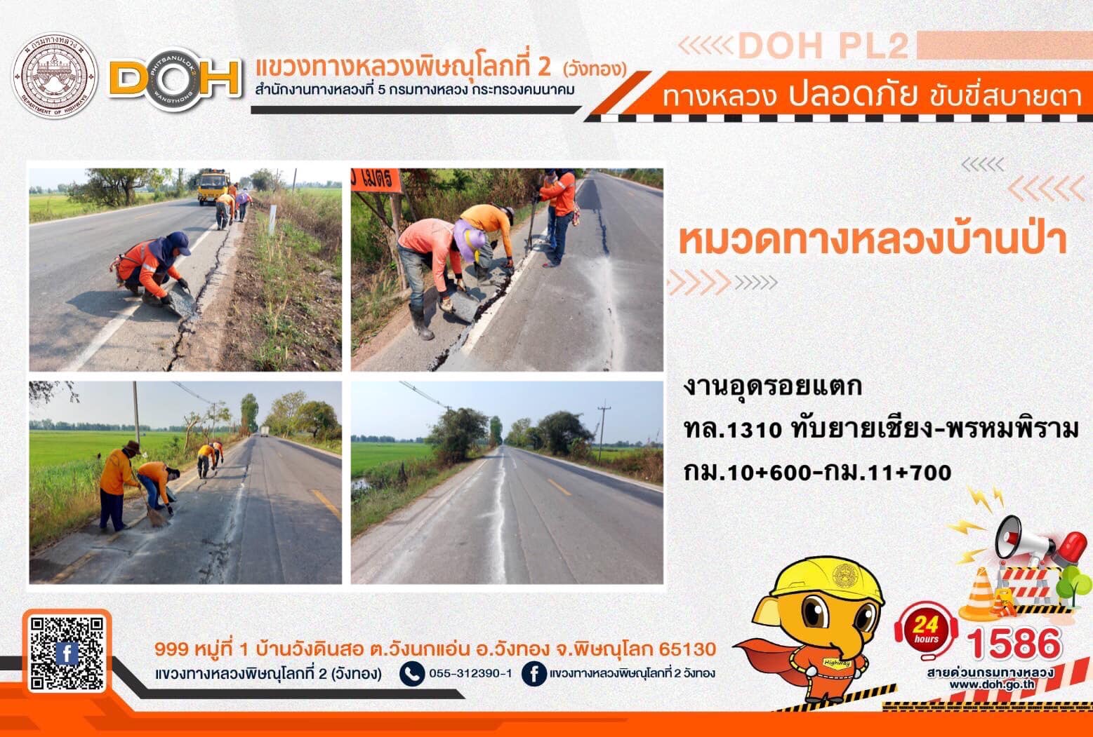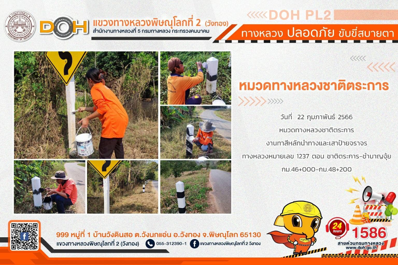 การปฏิบัติงานของ หมวดทางหลวง และ หน่วยงานในสังกัด เพื่ออำนวยความสะดวก และปลอดภัยให้กับประชาชนผู้ใช้เส้นทาง ประจำ วันพุธที่ 22 กุมภาพันธ์ 2566