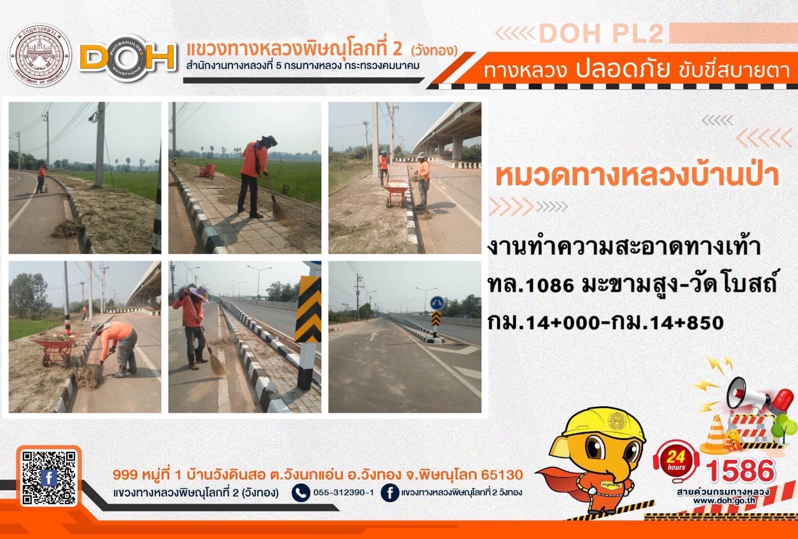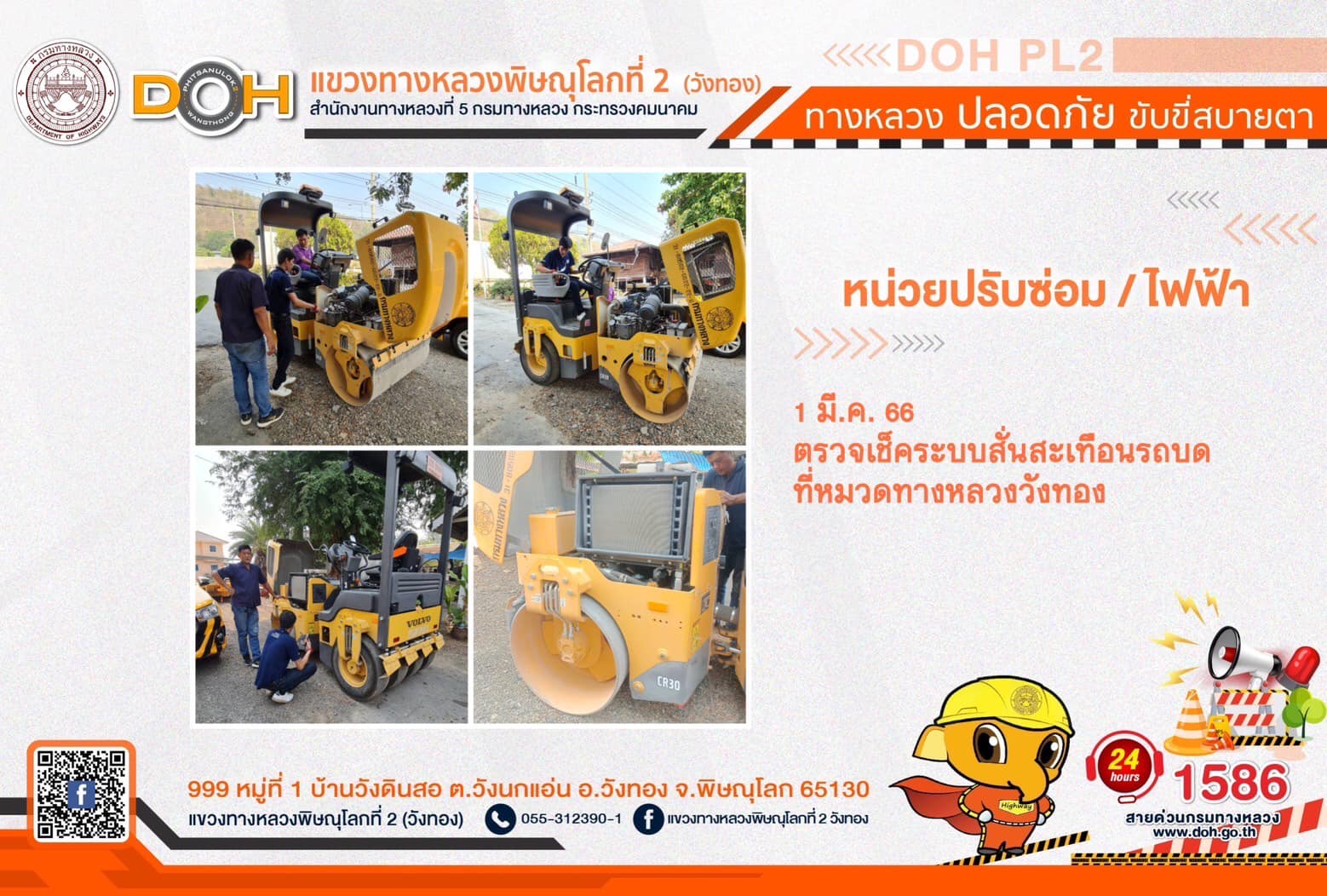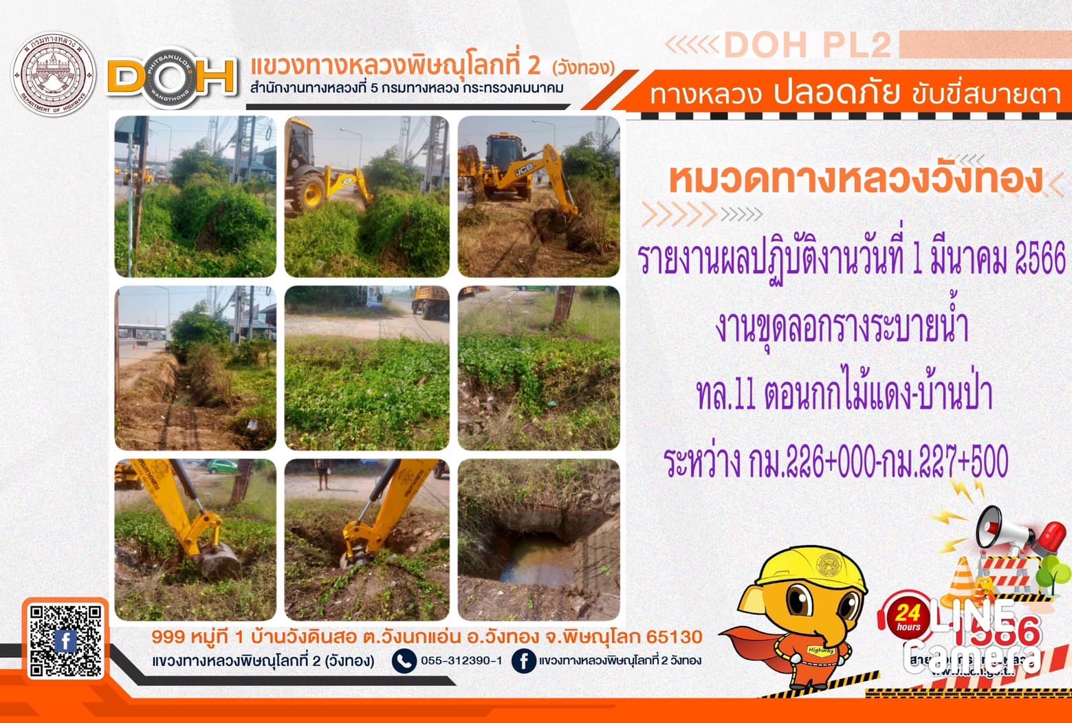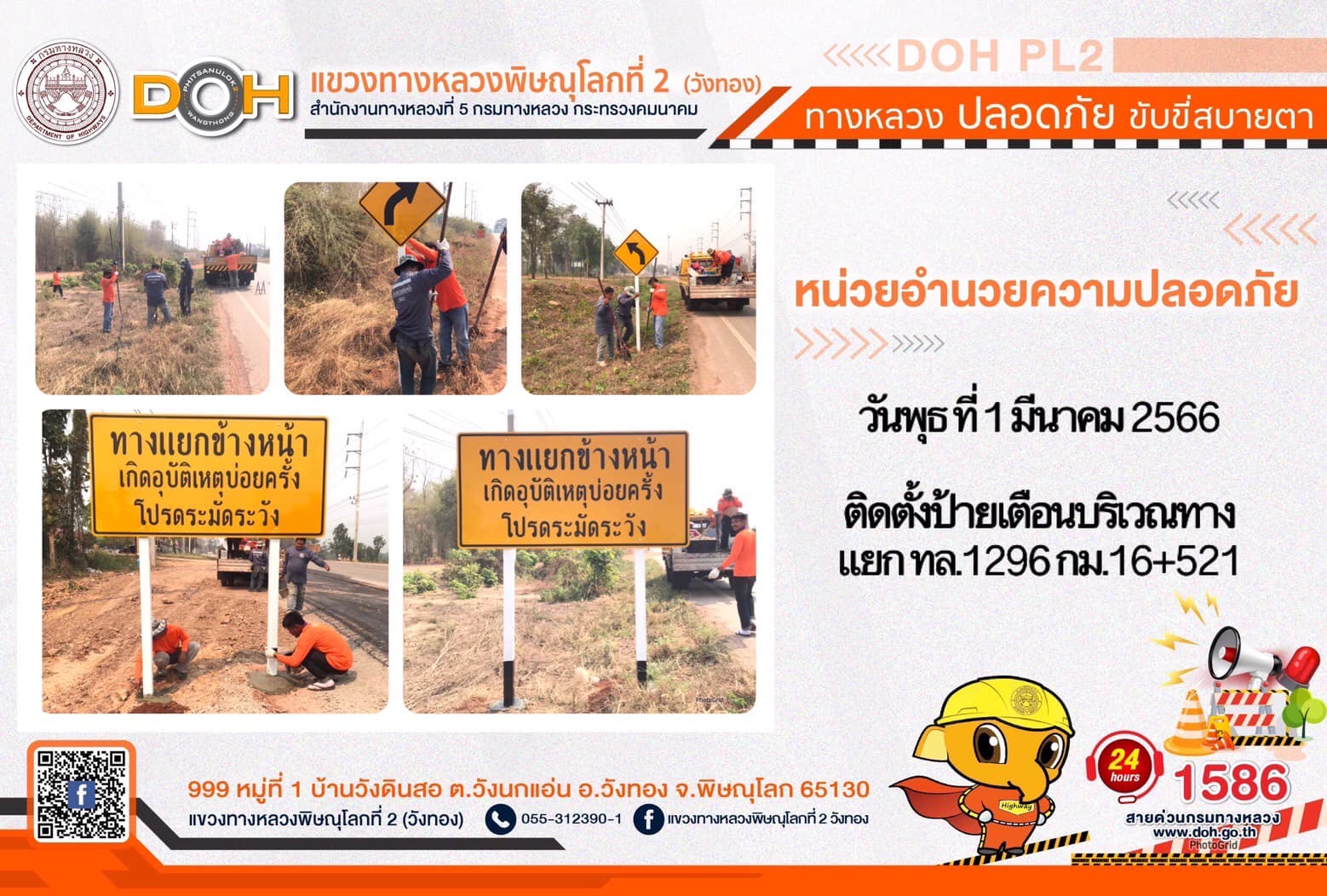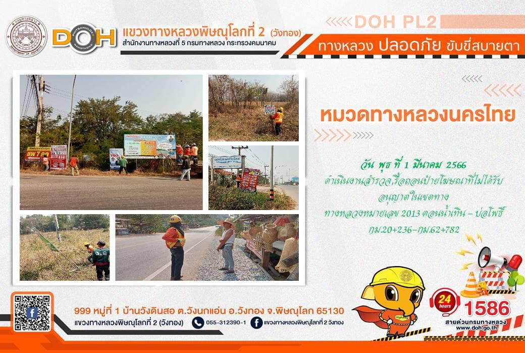 การปฏิบัติงานของ หมวดทางหลวง และ หน่วยงานในสังกัด เพื่ออำนวยความสะดวก และปลอดภัยให้กับประชาชนผู้ใช้เส้นทาง ประจำ วันพุธที่ 1 มีนาคม 2566