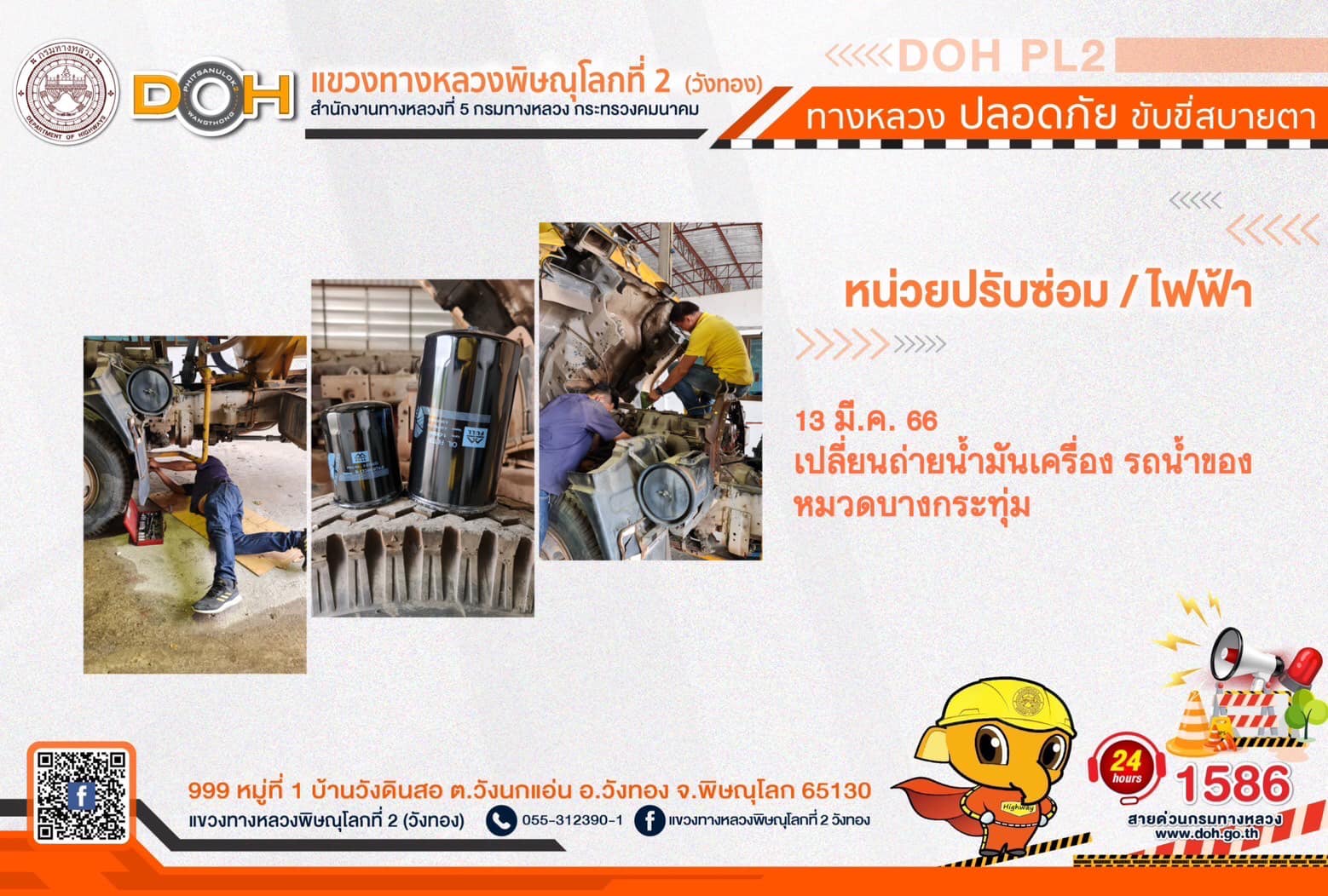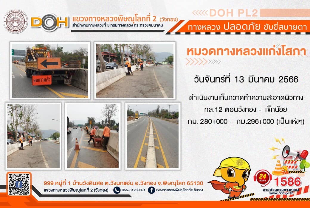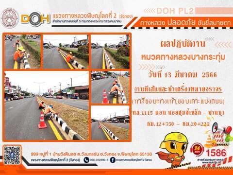 การปฏิบัติงานของ หมวดทางหลวง และ หน่วยงานในสังกัด เพื่ออำนวยความสะดวก และปลอดภัยให้กับประชาชนผู้ใช้เส้นทาง ประจำ วันจันทร์ที่ 13 มีนาคม 2566