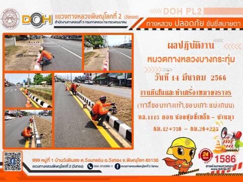 การปฏิบัติงานของ หมวดทางหลวง และ หน่วยงานในสังกัด เพื่ออำนวยความสะดวก และปลอดภัยให้กับประชาชนผู้ใช้เส้นทาง ประจำ วันอังคารที่ 14 มีนาคม 2566