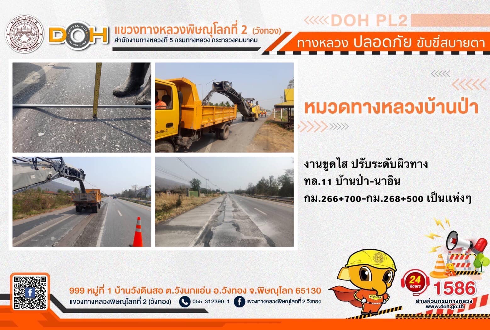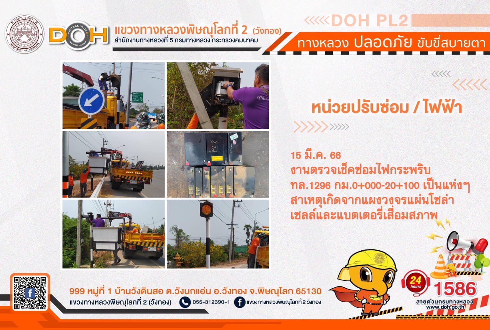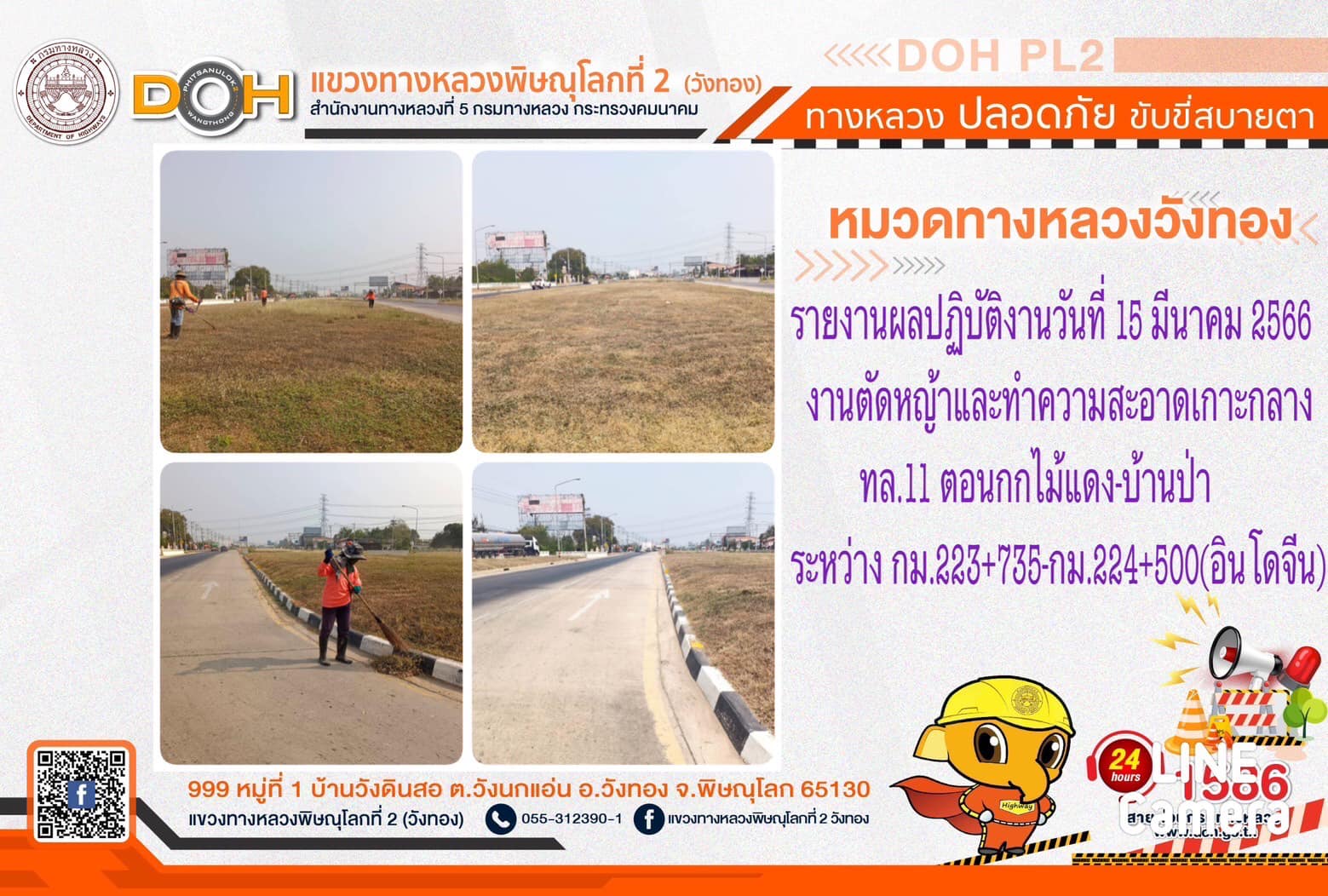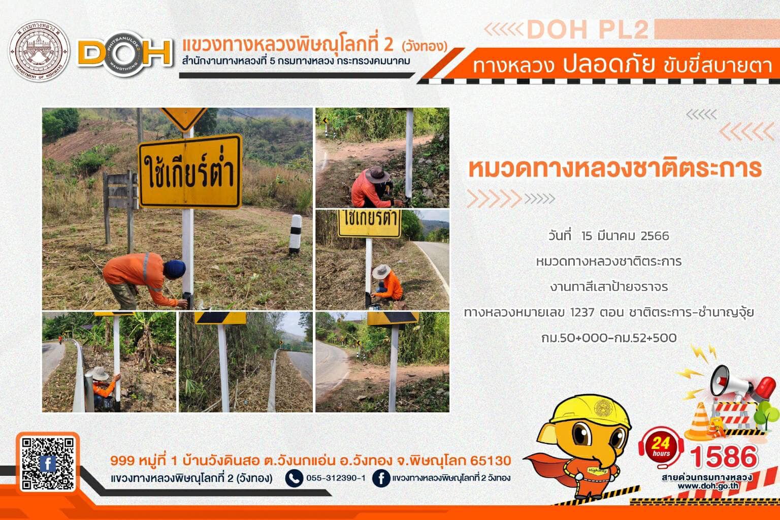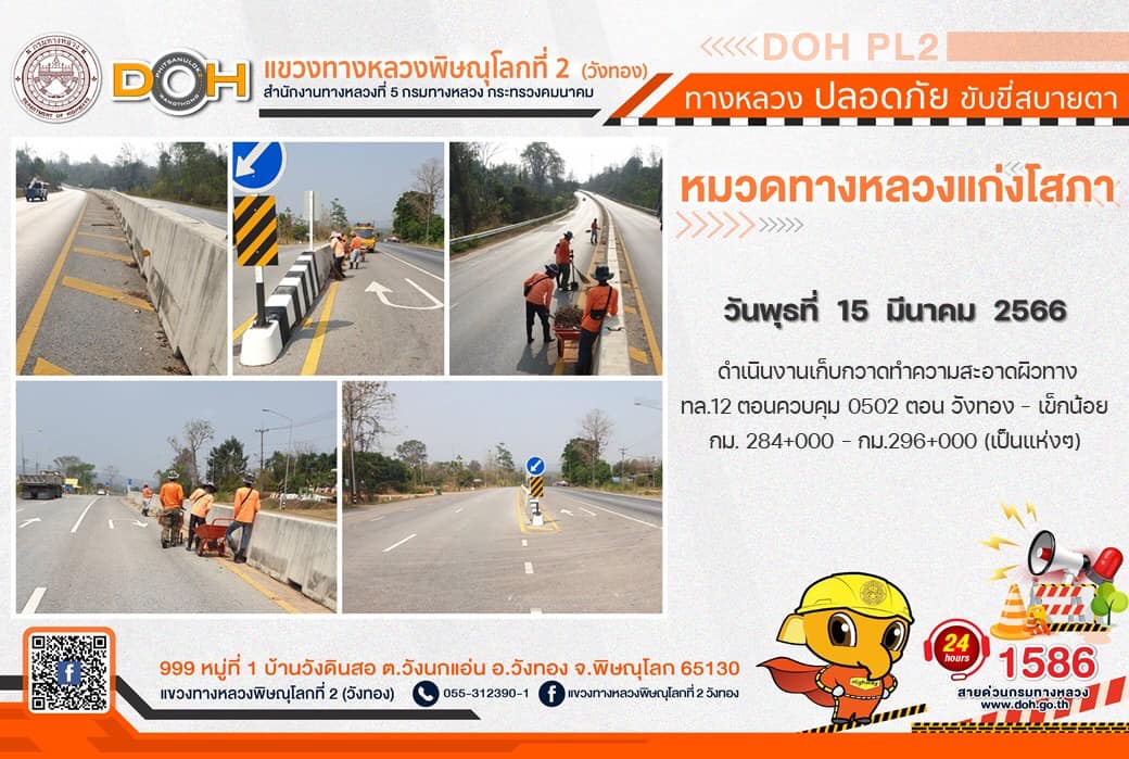การปฏิบัติงานของ หมวดทางหลวง และ หน่วยงานในสังกัด เพื่ออำนวยความสะดวก และปลอดภัยให้กับประชาชนผู้ใช้เส้นทาง ประจำ วันพุธที่ 15 มีนาคม 2566