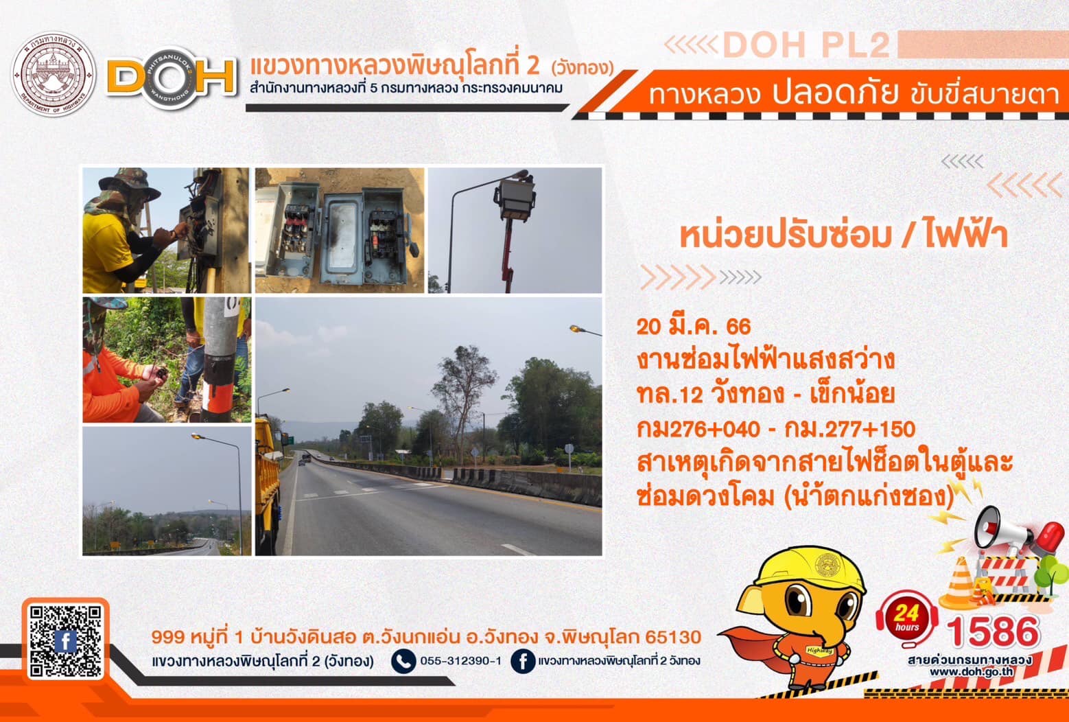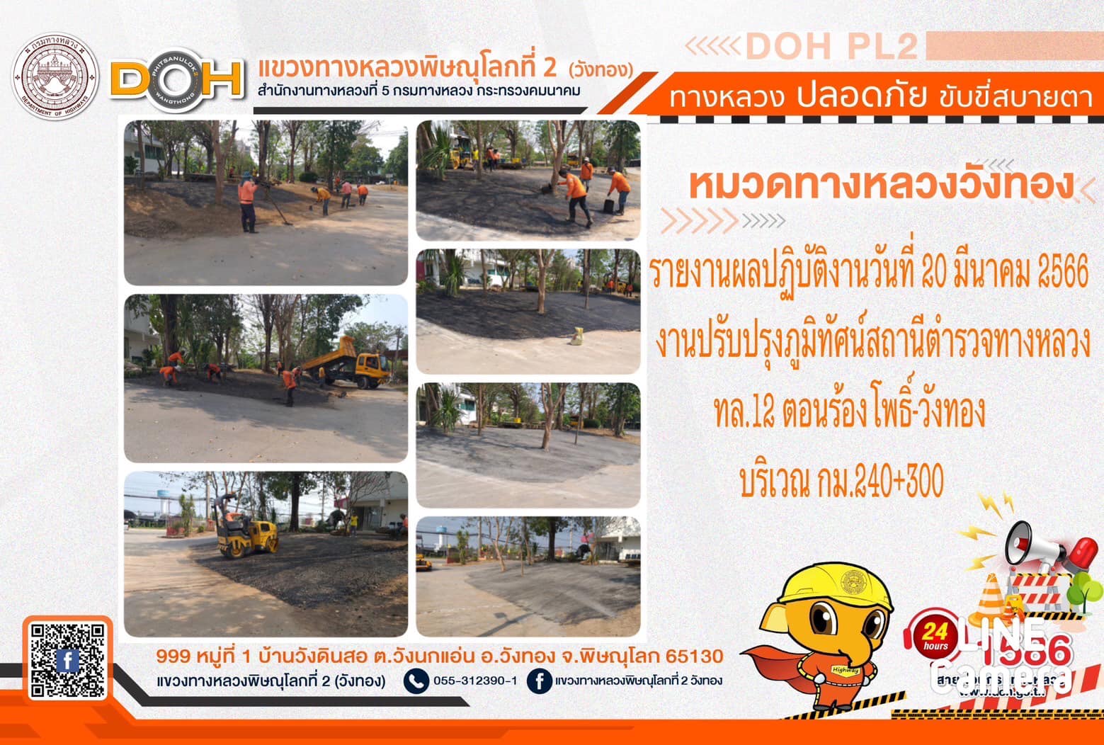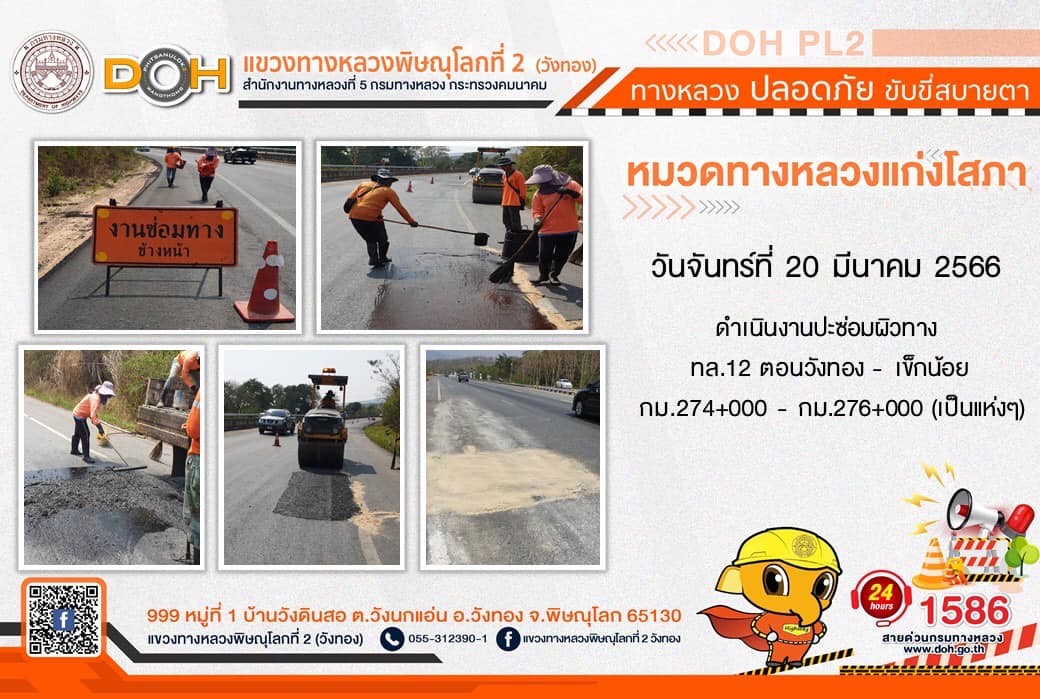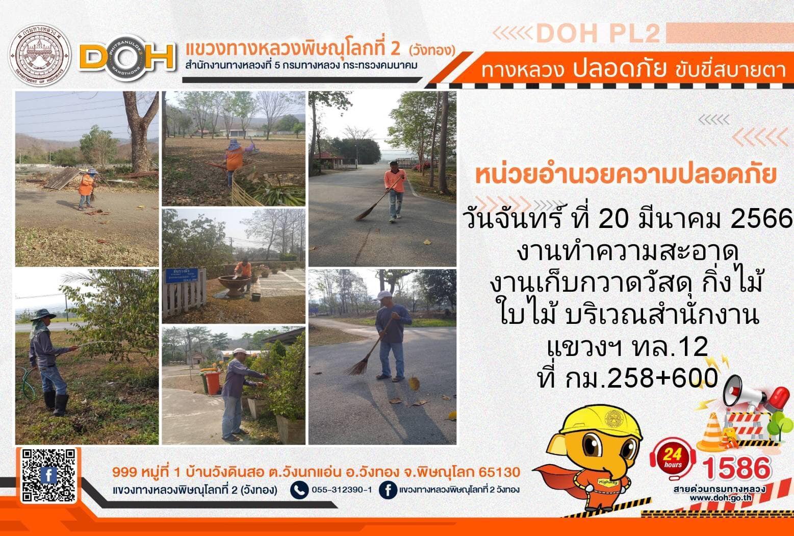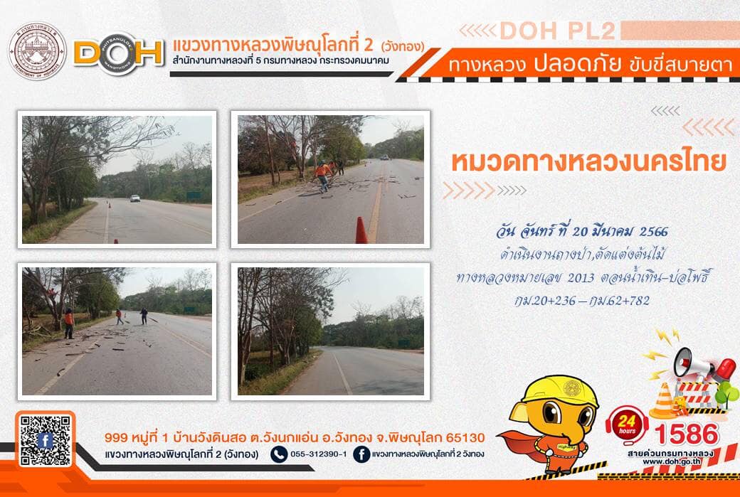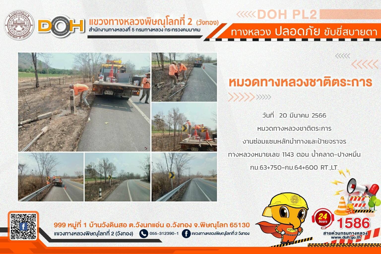 การปฏิบัติงานของ หมวดทางหลวง และ หน่วยงานในสังกัด เพื่ออำนวยความสะดวก และปลอดภัยให้กับประชาชนผู้ใช้เส้นทาง ประจำ วันจันทร์ที่ 20 มีนาคม 2566