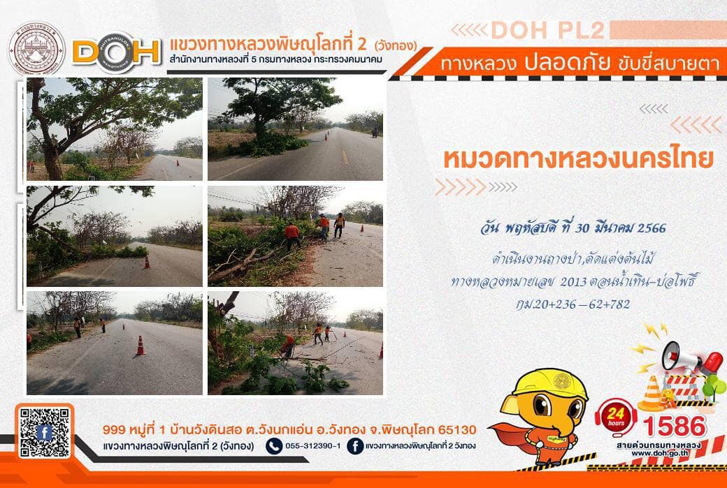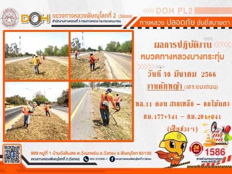 การปฏิบัติงานของ หมวดทางหลวง และ หน่วยงานในสังกัด เพื่ออำนวยความสะดวก และปลอดภัยให้กับประชาชนผู้ใช้เส้นทาง ประจำ วันพฤหัสบดีที่ 30 มีนาคม 2566