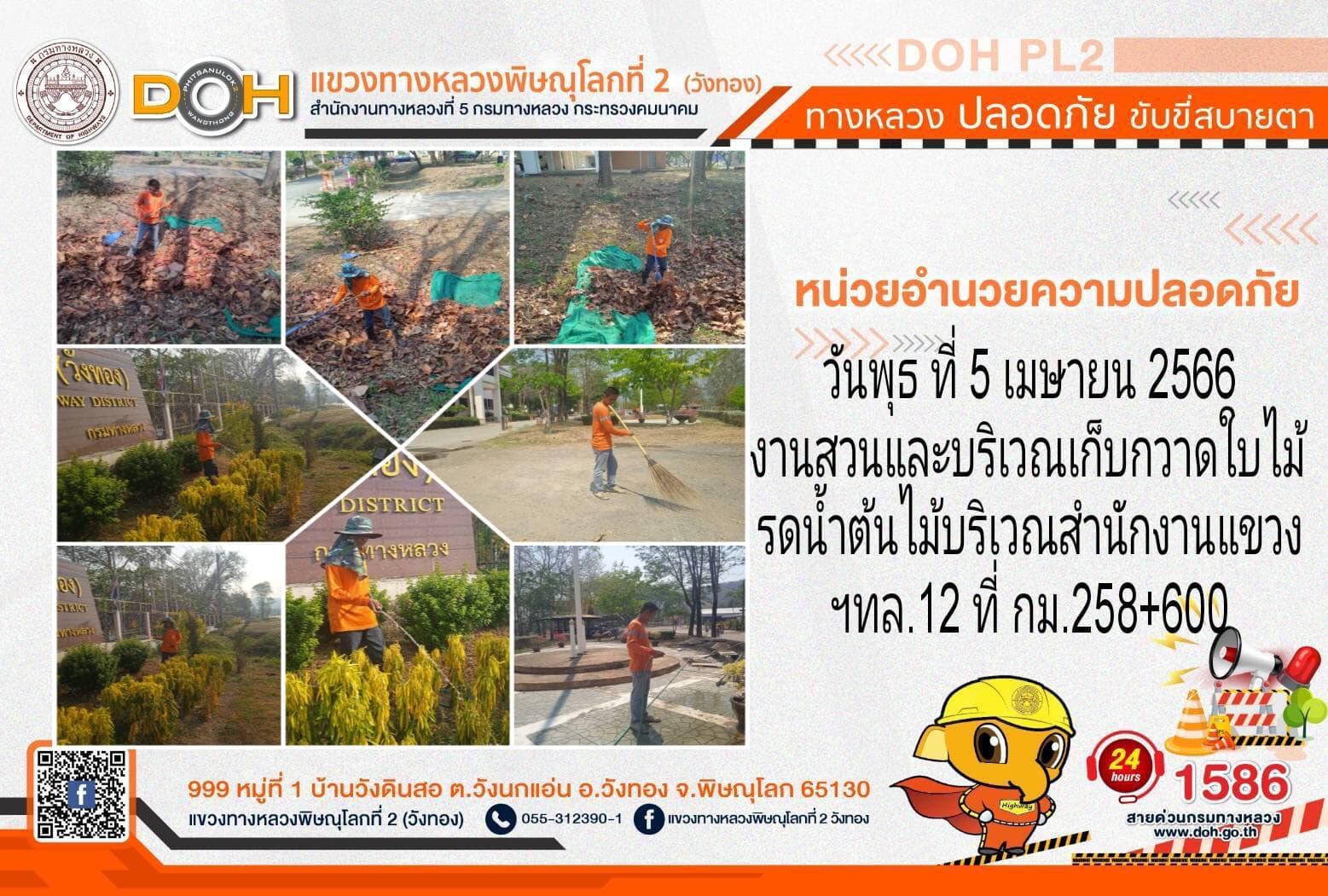 การปฏิบัติงานของ หมวดทางหลวง และ หน่วยงานในสังกัด เพื่ออำนวยความสะดวก และปลอดภัยให้กับประชาชนผู้ใช้เส้นทาง ประจำ วันพุธที่ 5 เมษายน 2566