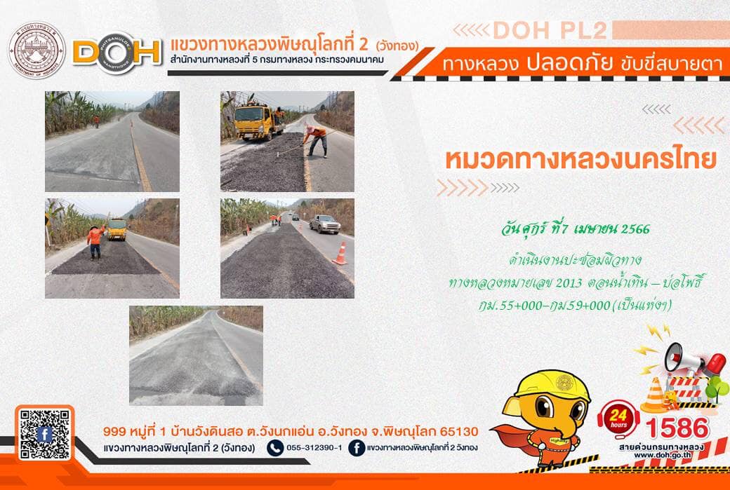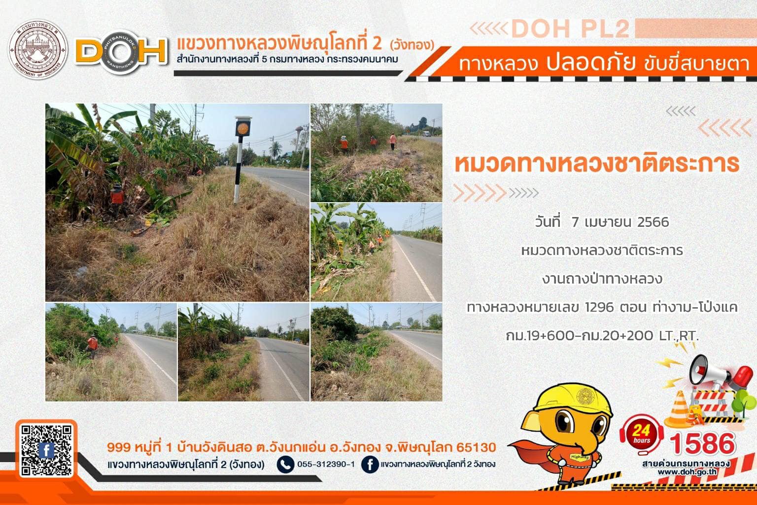 การปฏิบัติงานของ หมวดทางหลวง และ หน่วยงานในสังกัด เพื่ออำนวยความสะดวก และปลอดภัยให้กับประชาชนผู้ใช้เส้นทาง ประจำ วันศุกร์ที่ 7 เมษายน 2566