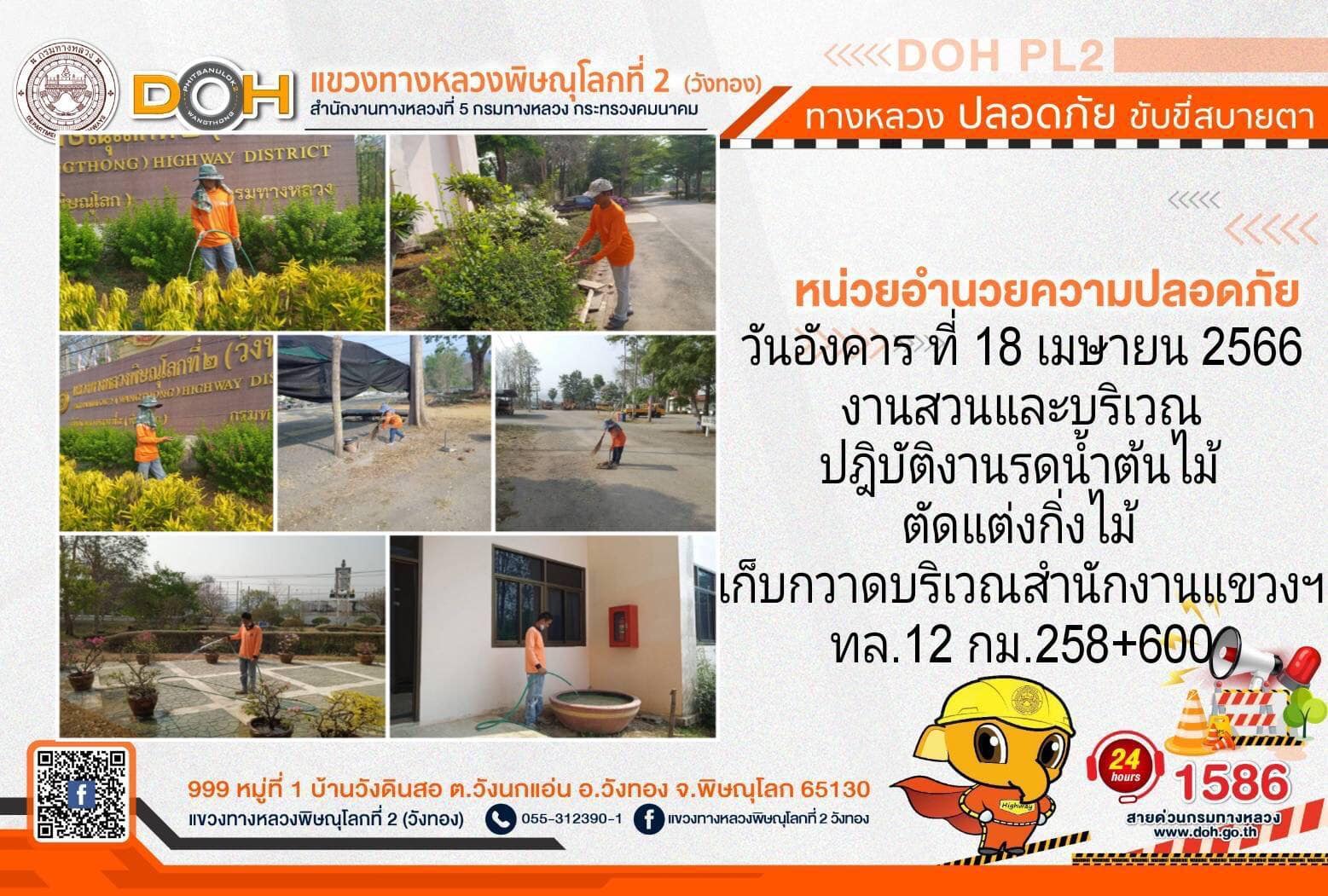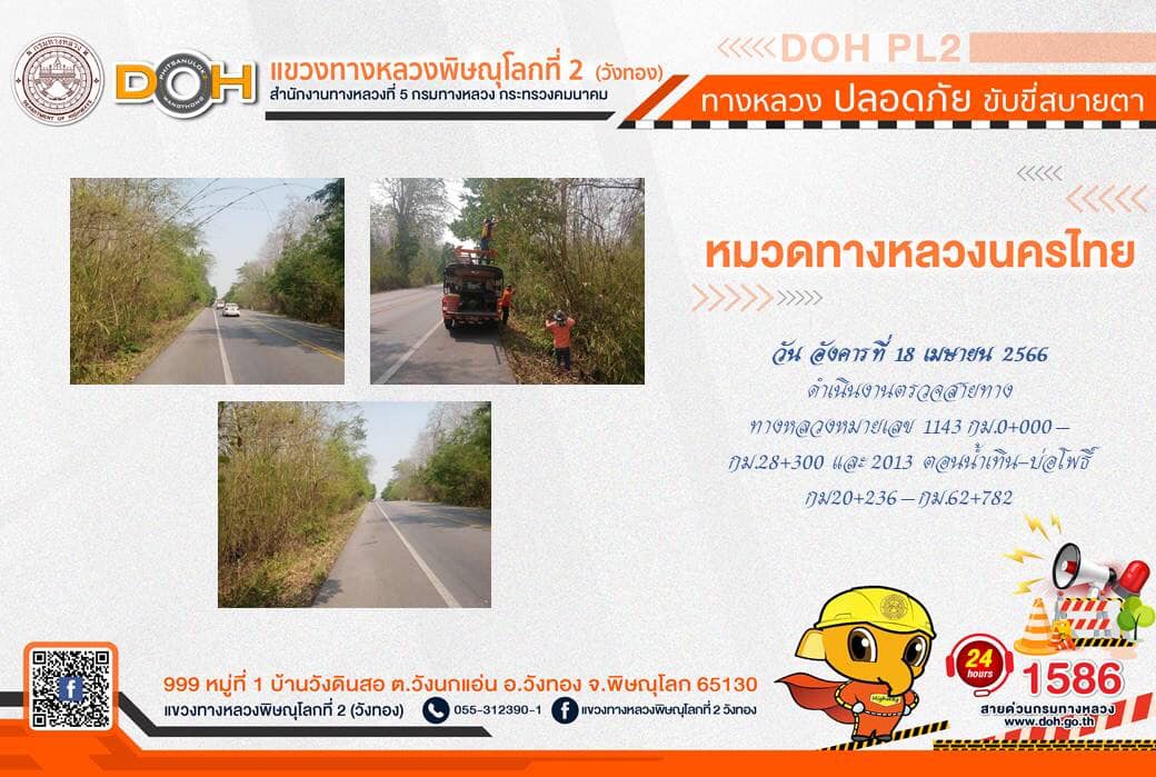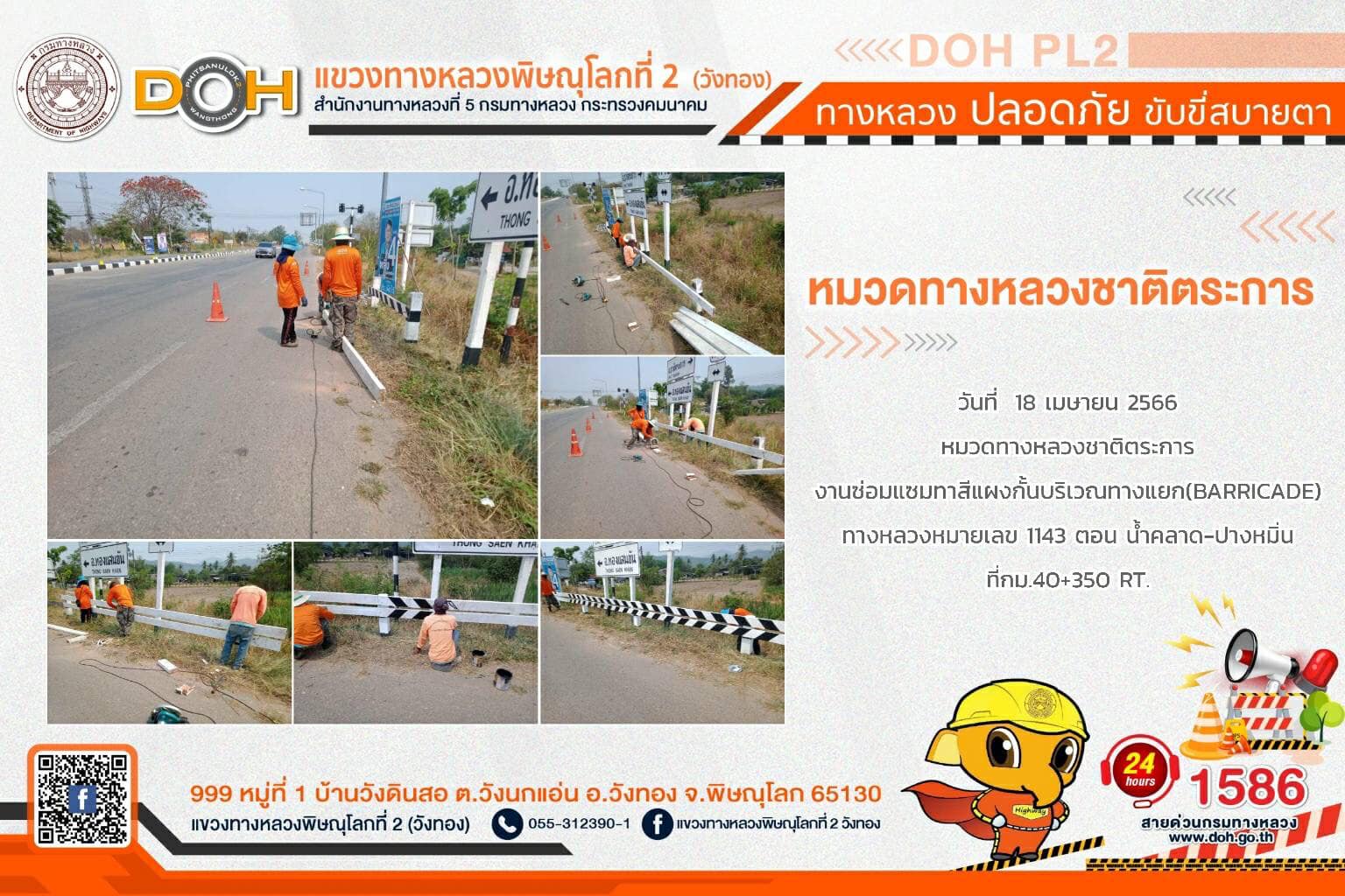 การปฏิบัติงานของ หมวดทางหลวง และ หน่วยงานในสังกัด เพื่ออำนวยความสะดวก และปลอดภัยให้กับประชาชนผู้ใช้เส้นทาง ประจำ วันอังคารที่ 18 เมษายน 2566