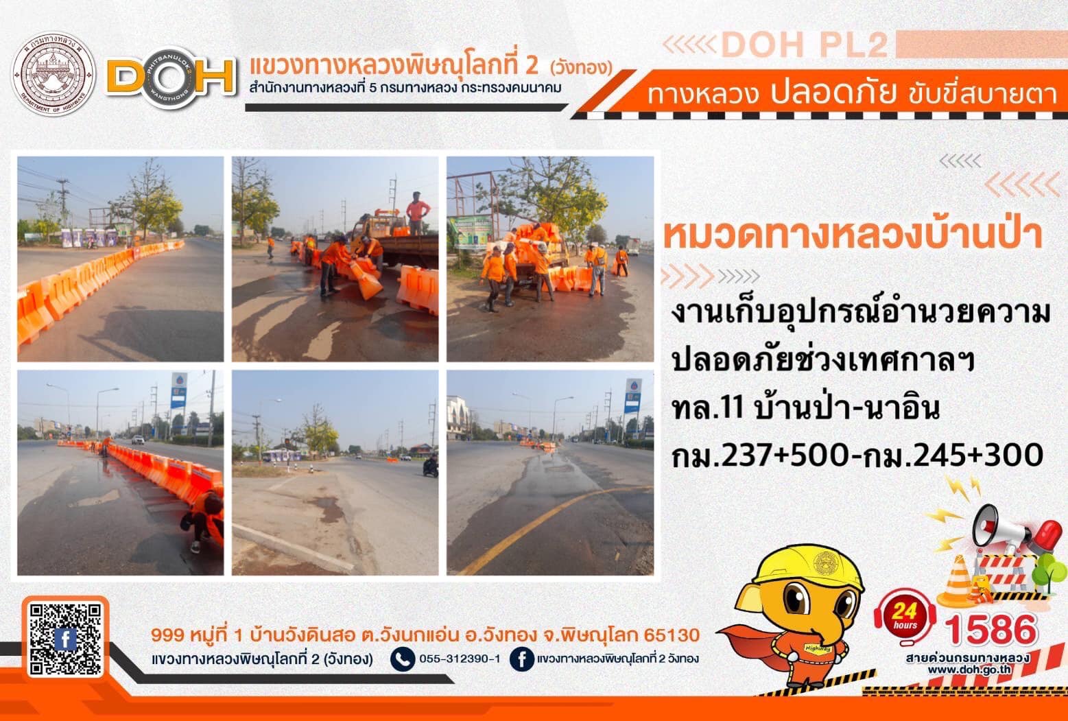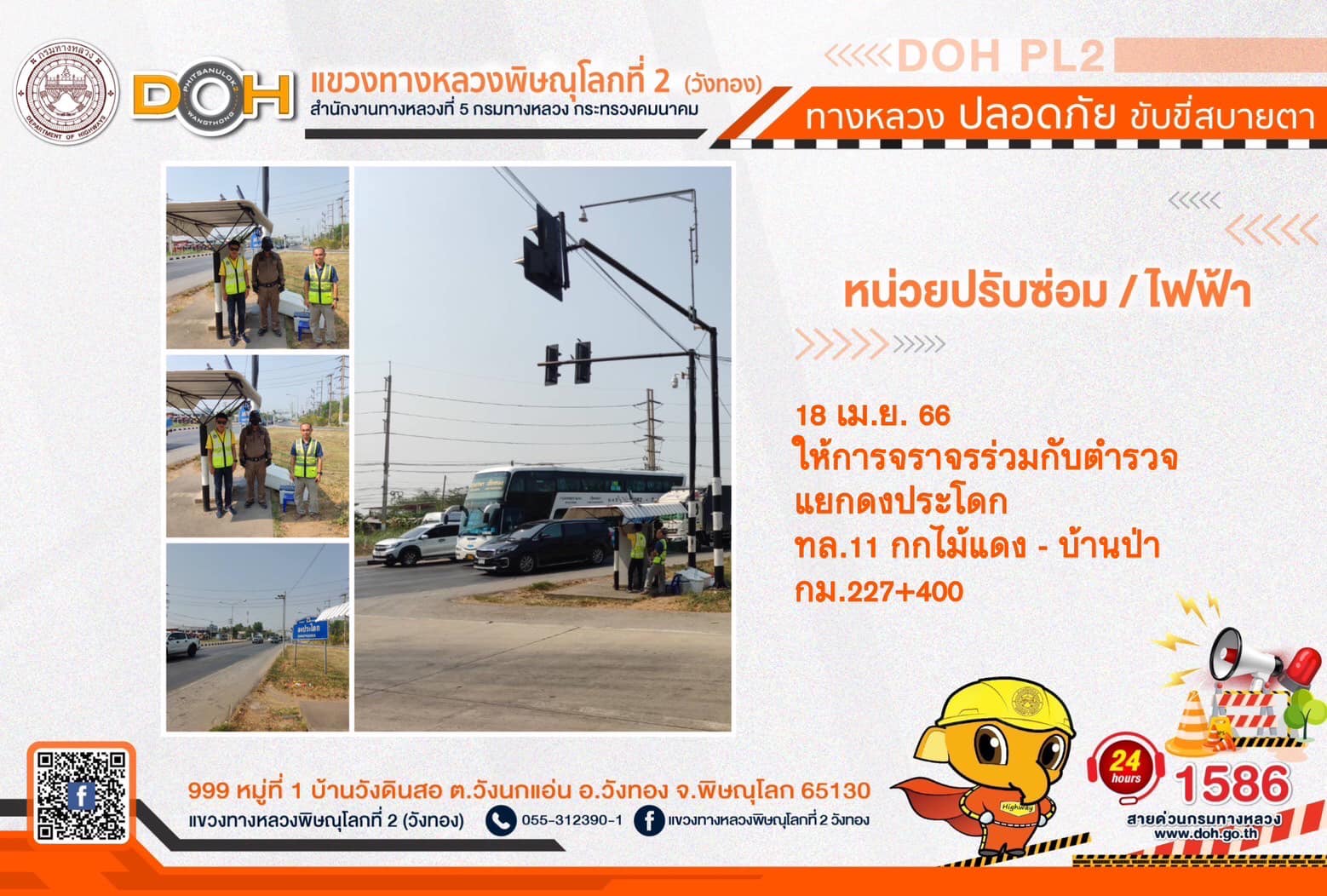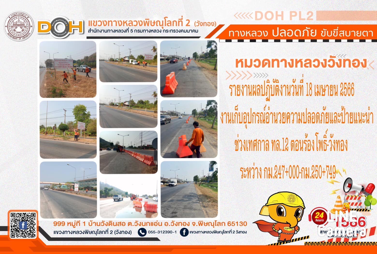 การปฏิบัติงานของ หมวดทางหลวง และ หน่วยงานในสังกัด เพื่ออำนวยความสะดวก และปลอดภัยให้กับประชาชนผู้ใช้เส้นทาง ประจำ วันอังคารที่ 18 เมษายน 2566