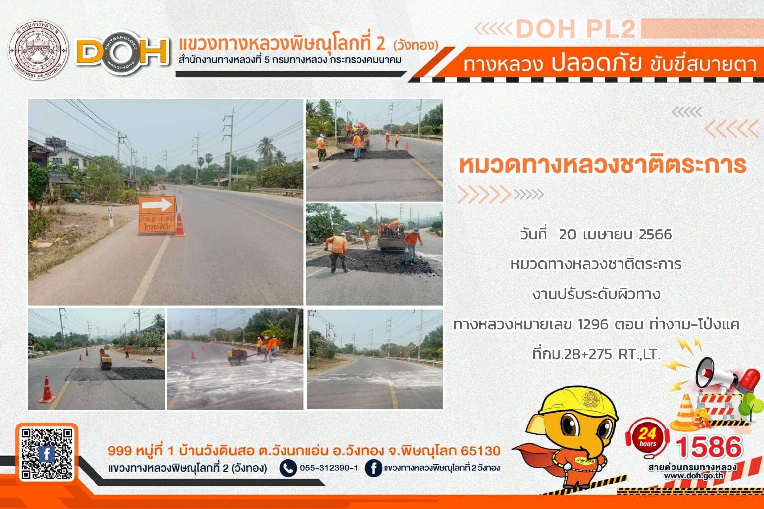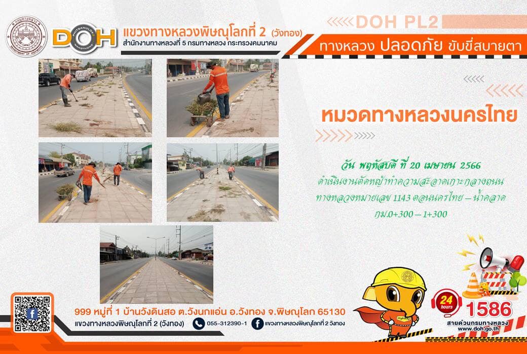 การปฏิบัติงานของ หมวดทางหลวง และ หน่วยงานในสังกัด เพื่ออำนวยความสะดวก และปลอดภัยให้กับประชาชนผู้ใช้เส้นทาง ประจำ วันพฤหัสบดีที่ 20 เมษายน 2566