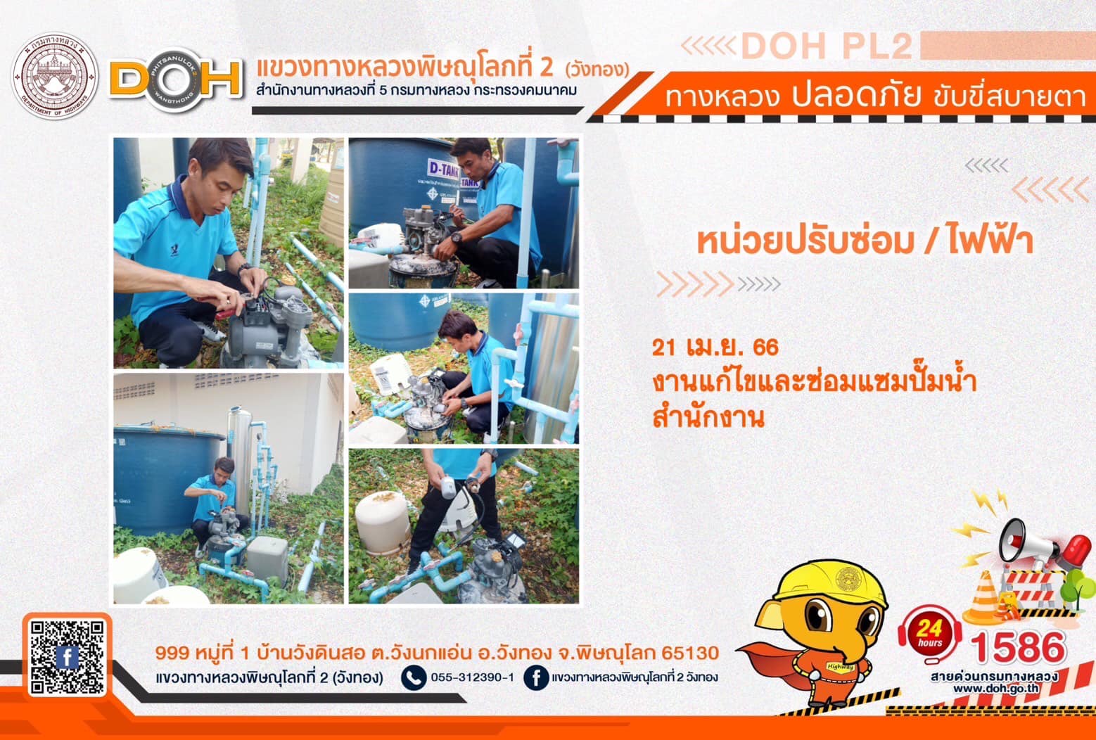 การปฏิบัติงานของ หมวดทางหลวง และ หน่วยงานในสังกัด เพื่ออำนวยความสะดวก และปลอดภัยให้กับประชาชนผู้ใช้เส้นทาง ประจำ วันศุกร์ที่ 21 เมษายน 2566