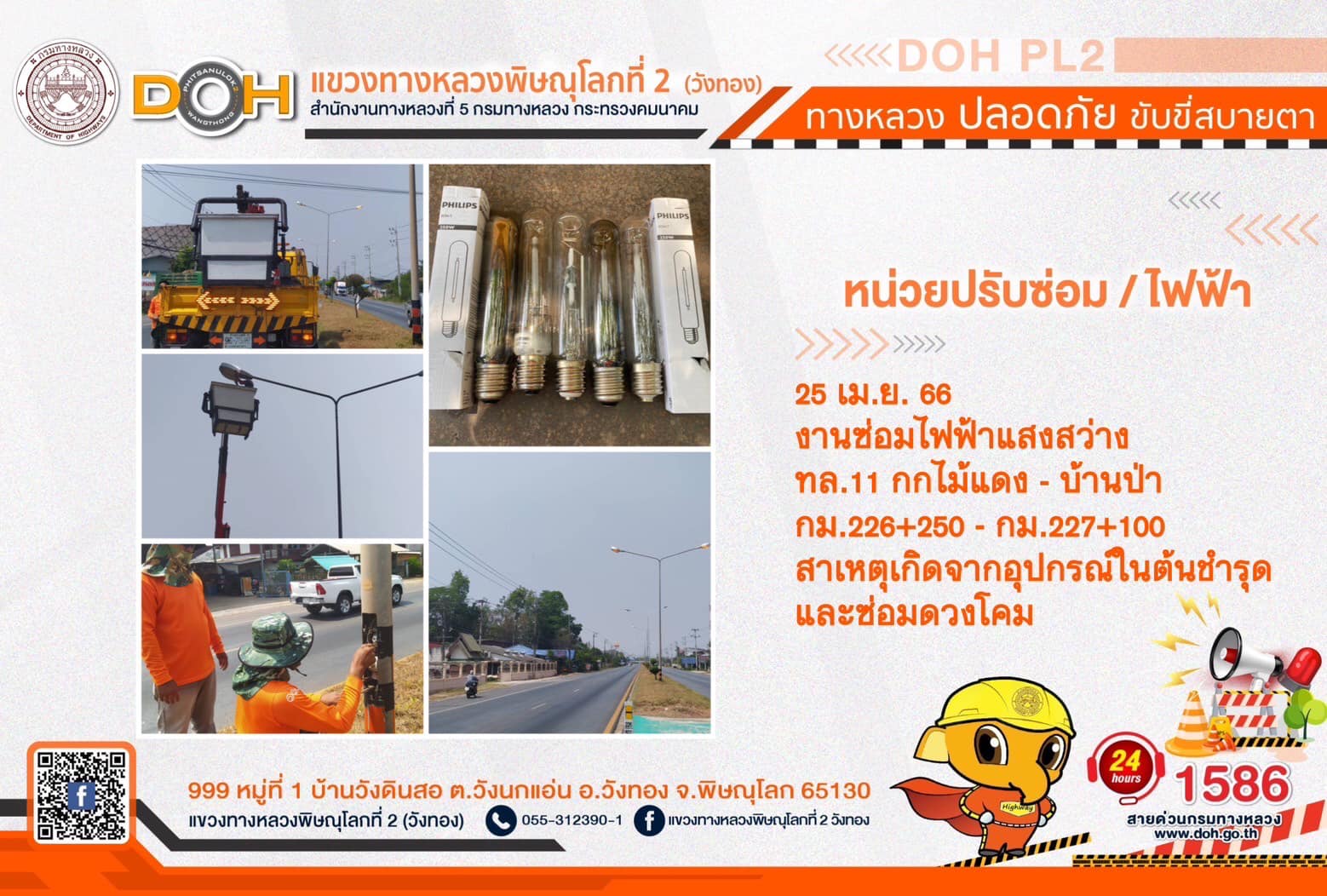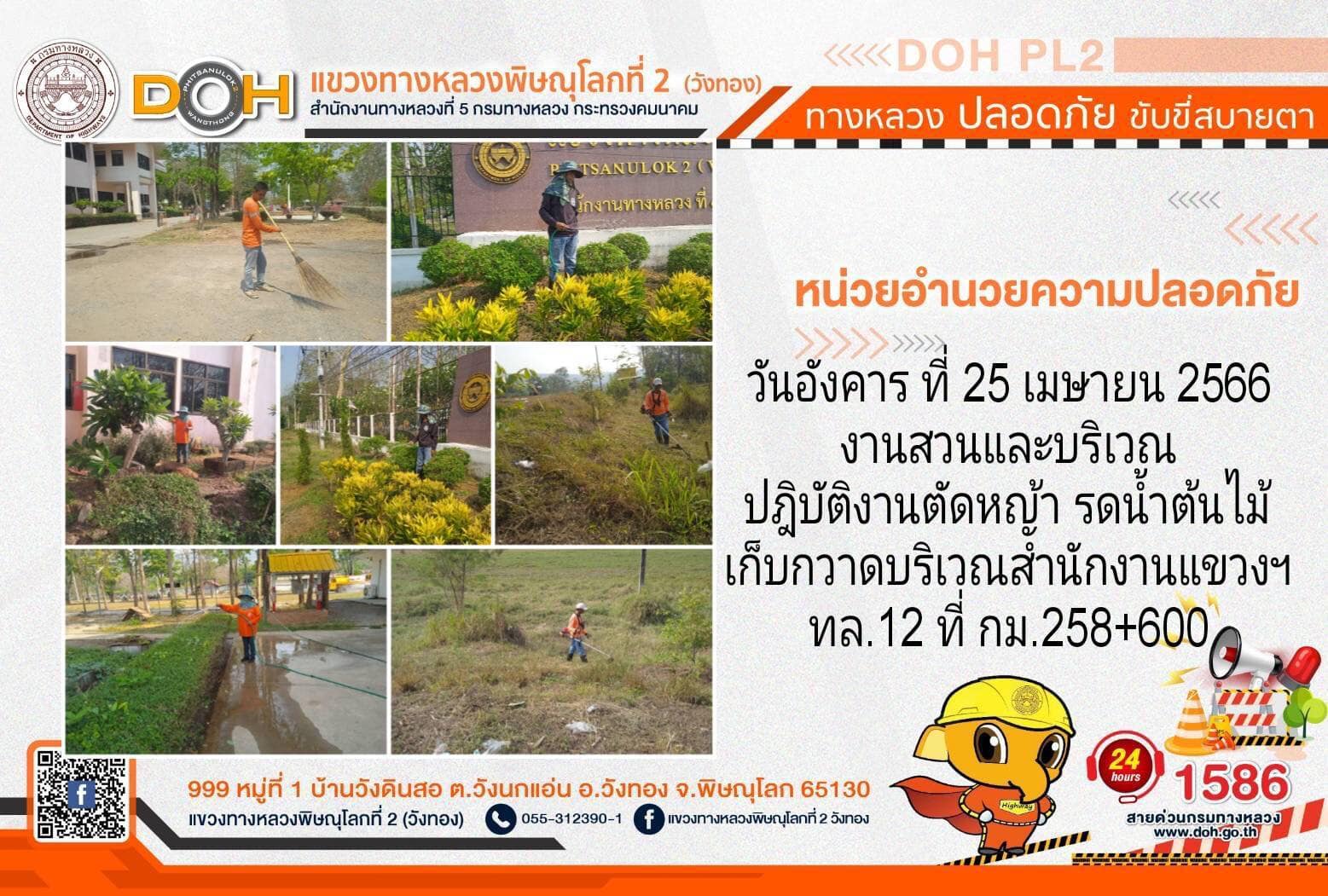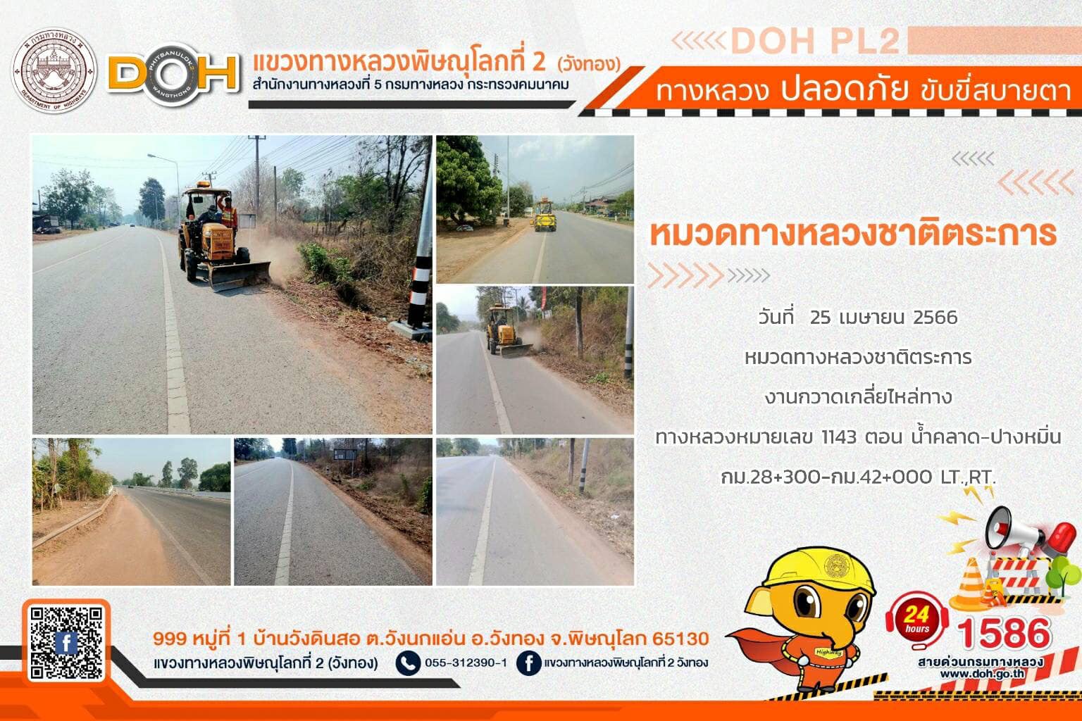 การปฏิบัติงานของ หมวดทางหลวง และ หน่วยงานในสังกัด เพื่ออำนวยความสะดวก และปลอดภัยให้กับประชาชนผู้ใช้เส้นทาง ประจำ วันอังคารที่ 25 เมษายน 2566