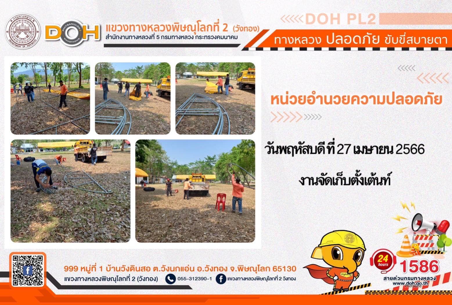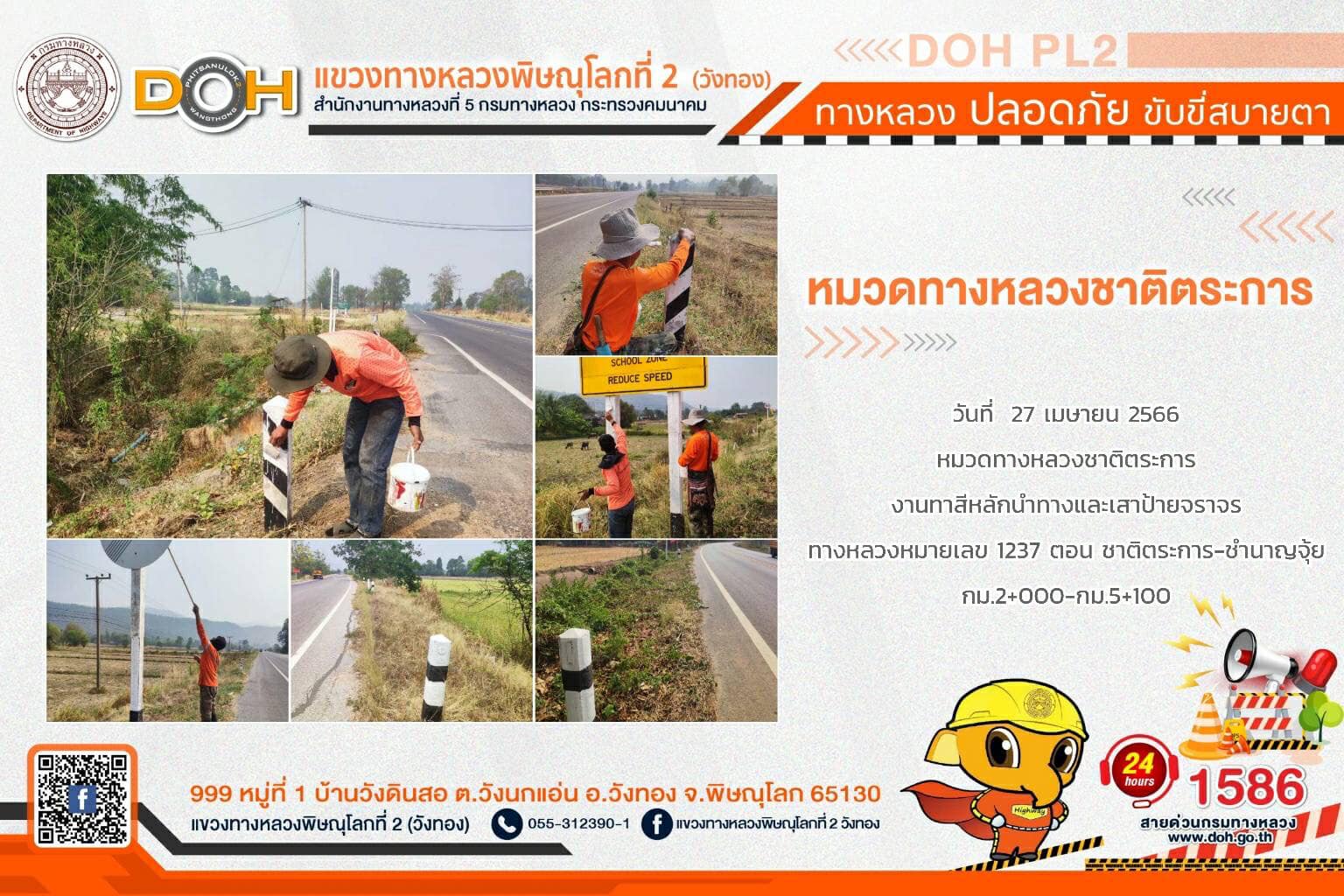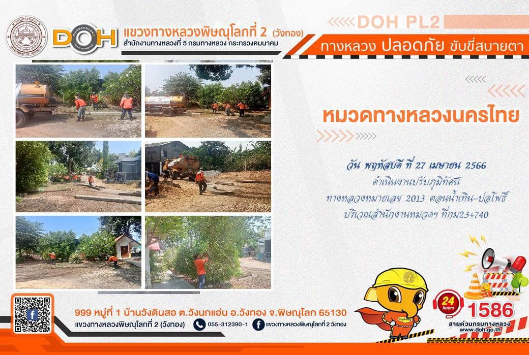 การปฏิบัติงานของ หมวดทางหลวง และ หน่วยงานในสังกัด เพื่ออำนวยความสะดวก และปลอดภัยให้กับประชาชนผู้ใช้เส้นทาง ประจำ วันพฤหัสบดี 27 เมษายน 2566