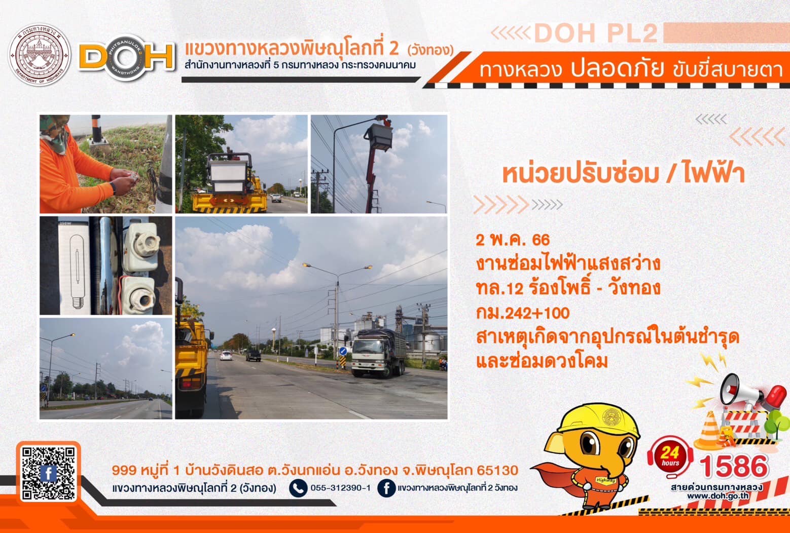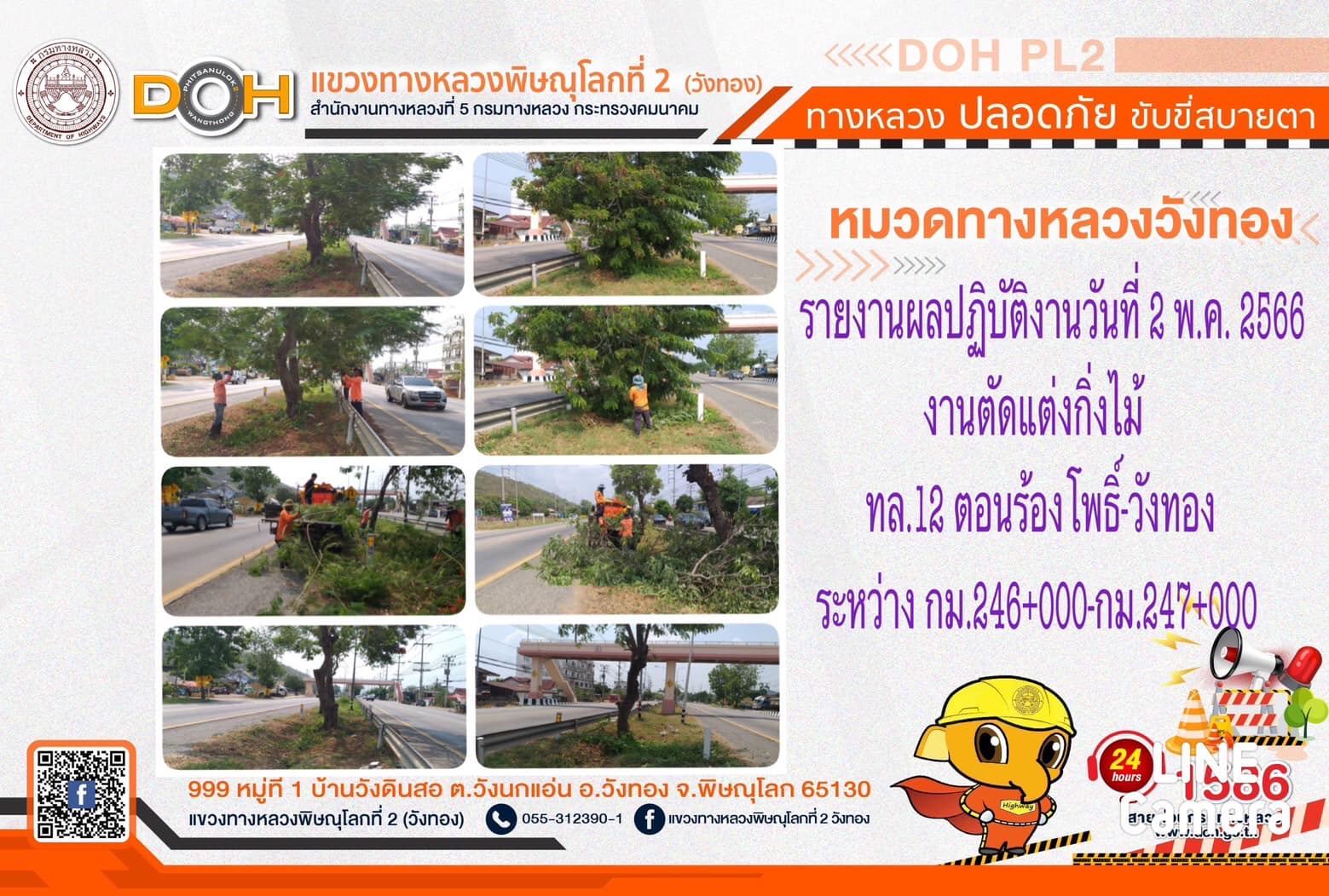 การปฏิบัติงานของ หมวดทางหลวง และ หน่วยงานในสังกัด เพื่ออำนวยความสะดวก และปลอดภัยให้กับประชาชนผู้ใช้เส้นทาง ประจำ วันอังคารที่ 2 พฤษภาคม 2566