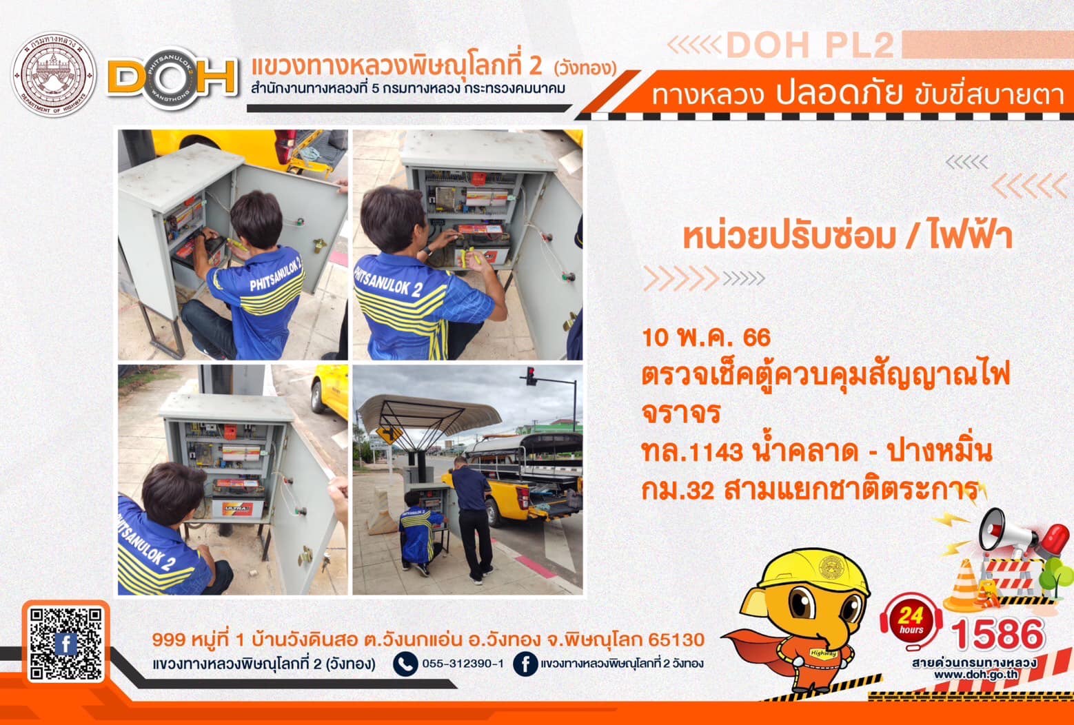 การปฏิบัติงานของ หมวดทางหลวง และ หน่วยงานในสังกัด เพื่ออำนวยความสะดวก และปลอดภัยให้กับประชาชนผู้ใช้เส้นทาง ประจำ วันพุธที่ 10 พฤษภาคม 2566
