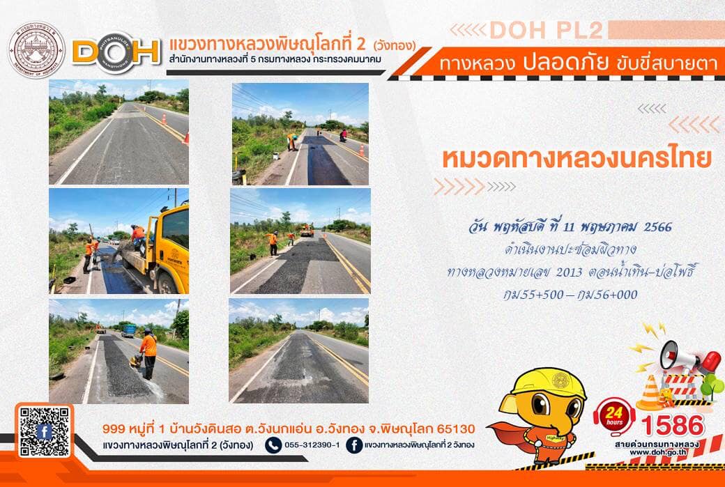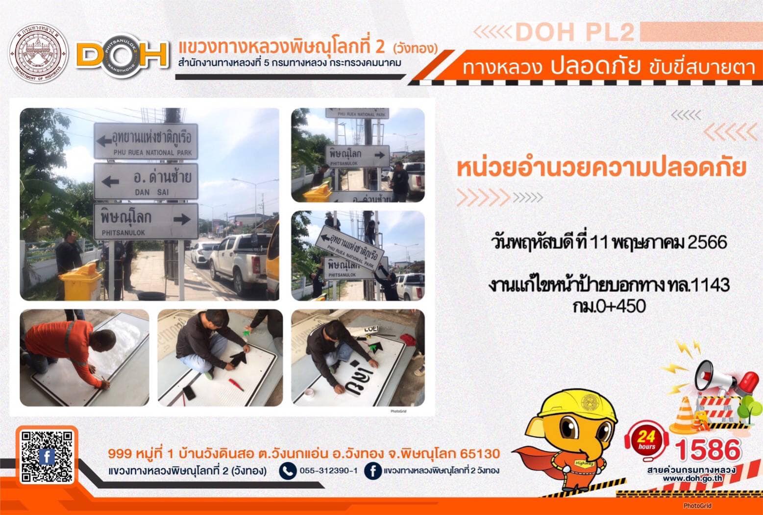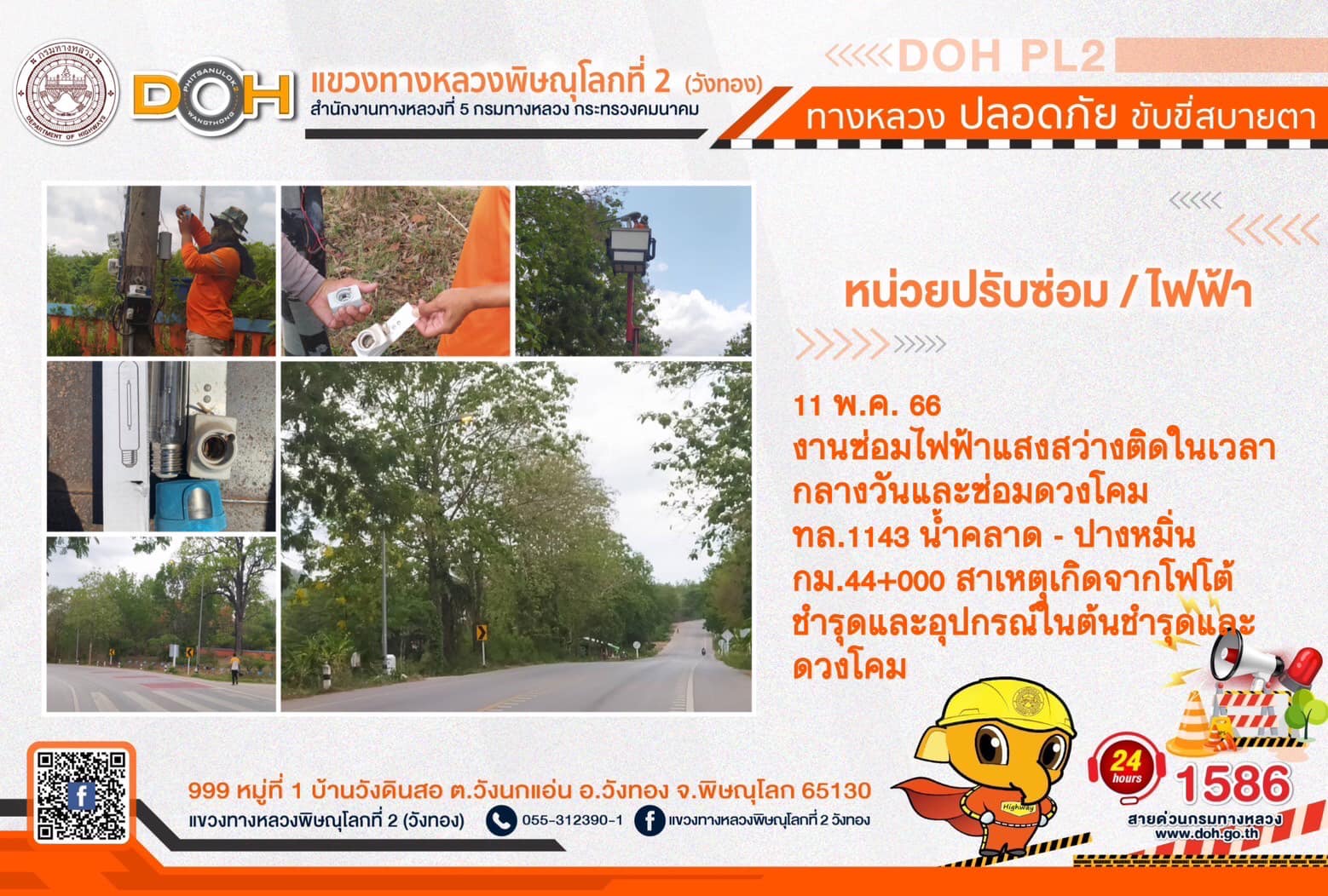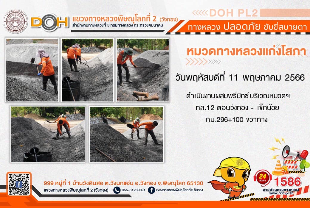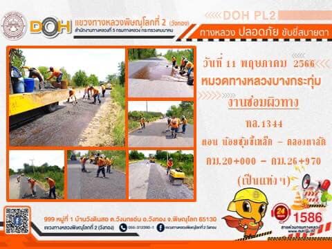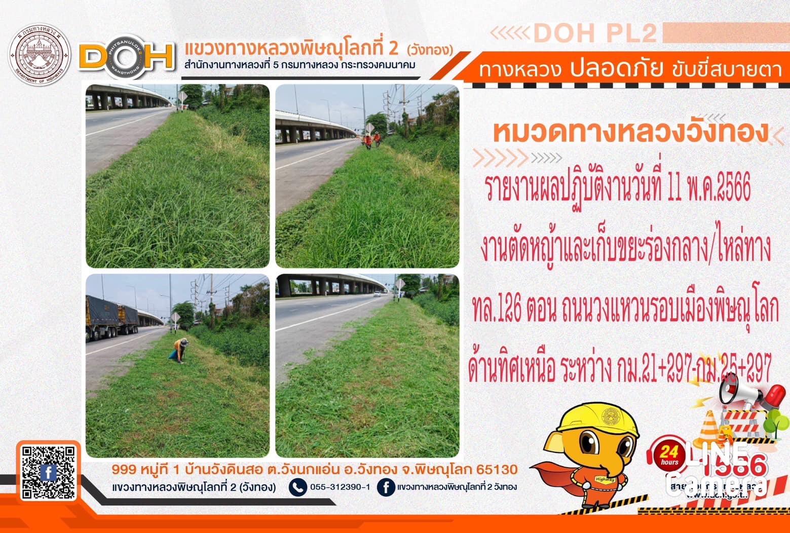 การปฏิบัติงานของ หมวดทางหลวง และ หน่วยงานในสังกัด เพื่ออำนวยความสะดวก และปลอดภัยให้กับประชาชนผู้ใช้เส้นทาง ประจำ วันพฤหัสบดีที่ 11 พฤษภาคม 2566