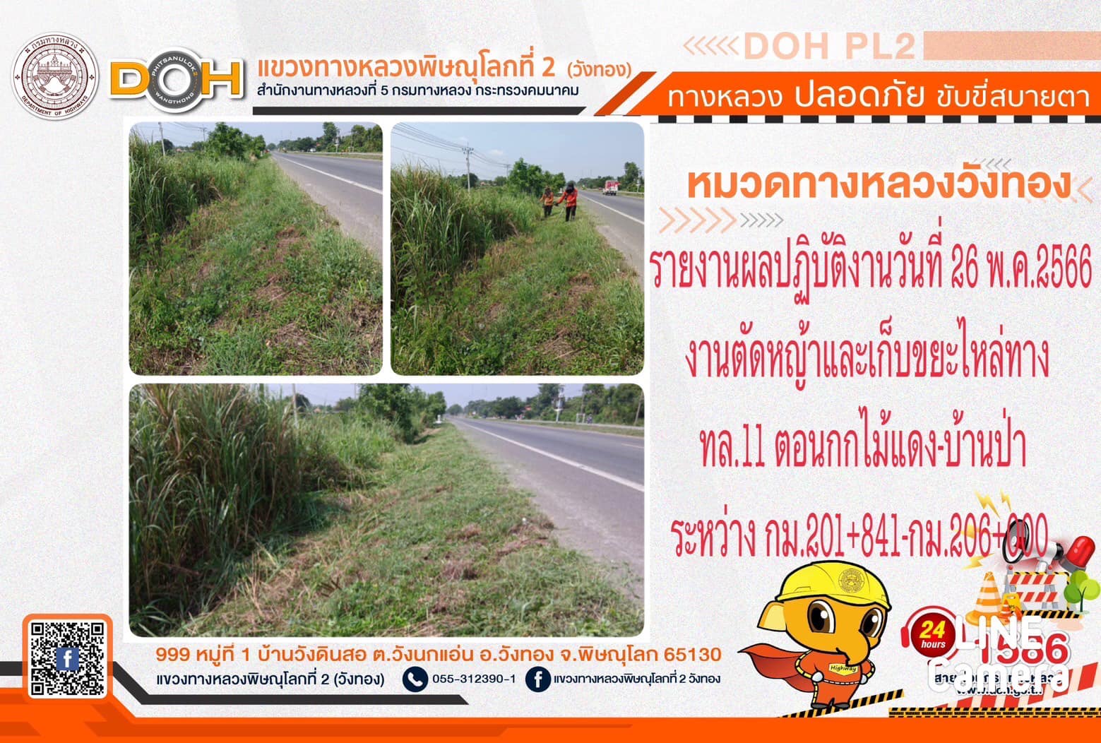 การปฏิบัติงานของ หมวดทางหลวง และ หน่วยงานในสังกัด เพื่ออำนวยความสะดวก และปลอดภัยให้กับประชาชนผู้ใช้เส้นทาง ประจำ วันศุกร์ที่ 26 พฤษภาคม 2566