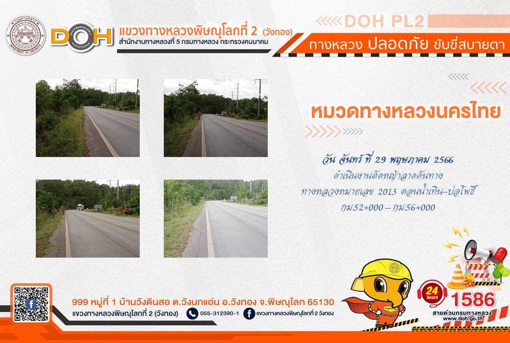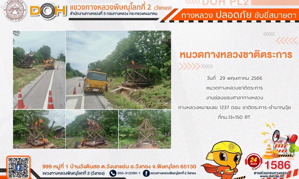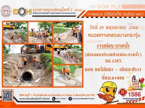 การปฏิบัติงานของ หมวดทางหลวง และ หน่วยงานในสังกัด เพื่ออำนวยความสะดวก และปลอดภัยให้กับประชาชนผู้ใช้เส้นทาง ประจำ วันจันทร์ที่ 29 พฤษภาคม 2566