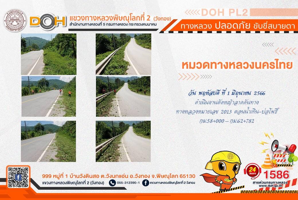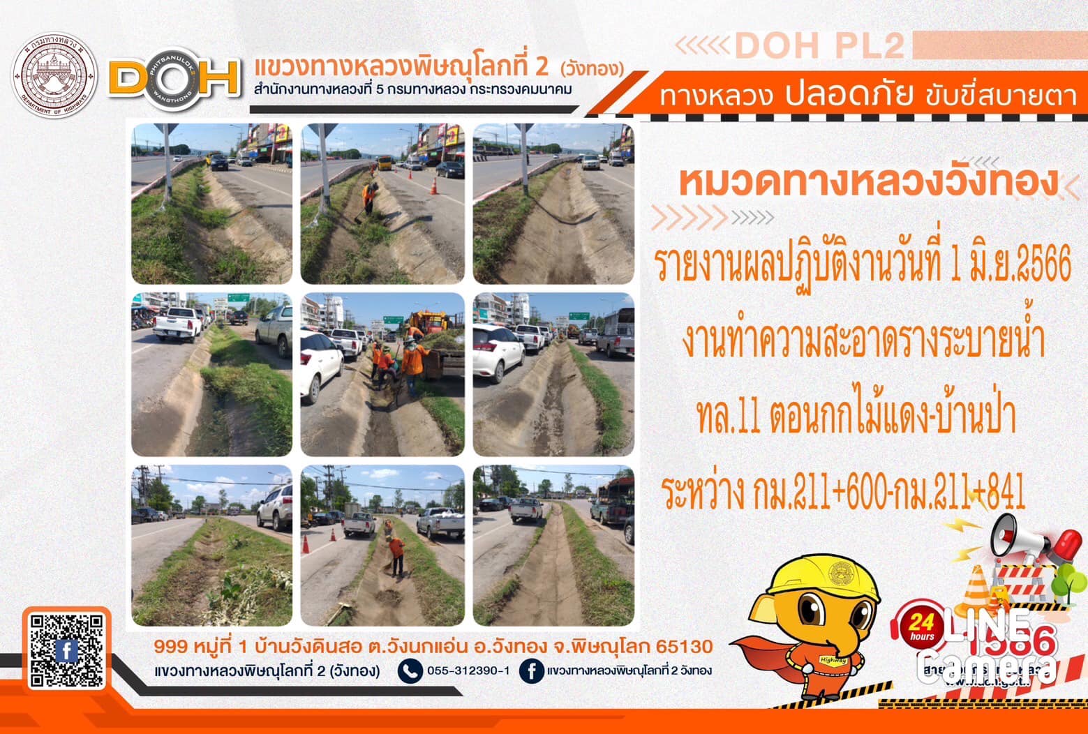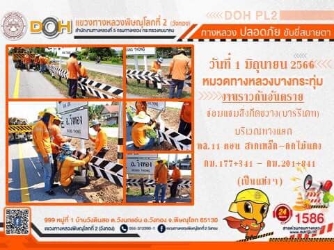 การปฏิบัติงานของ หมวดทางหลวง และ หน่วยงานในสังกัด เพื่ออำนวยความสะดวก และปลอดภัยให้กับประชาชนผู้ใช้เส้นทาง ประจำ วันพฤหัสบดีที่ 1 มิถุนายน 2566