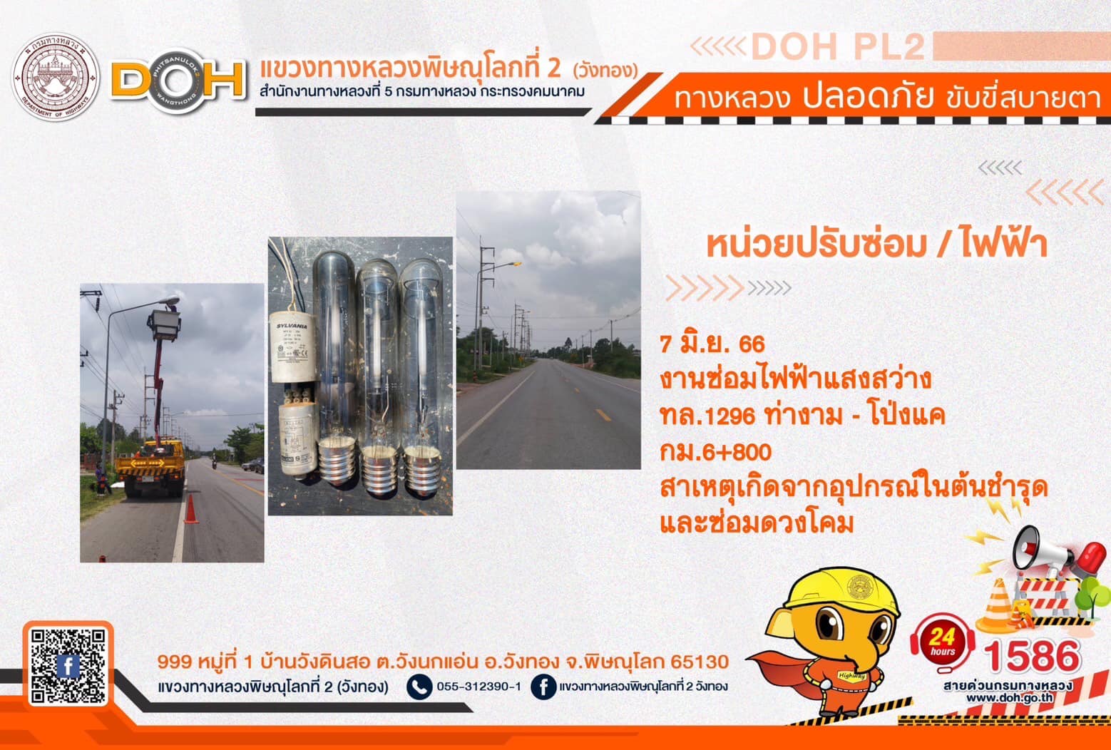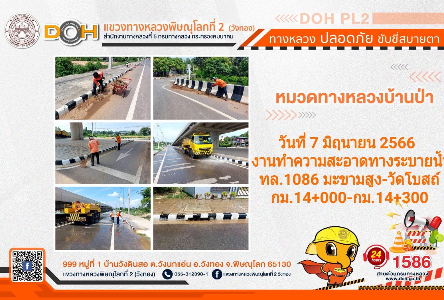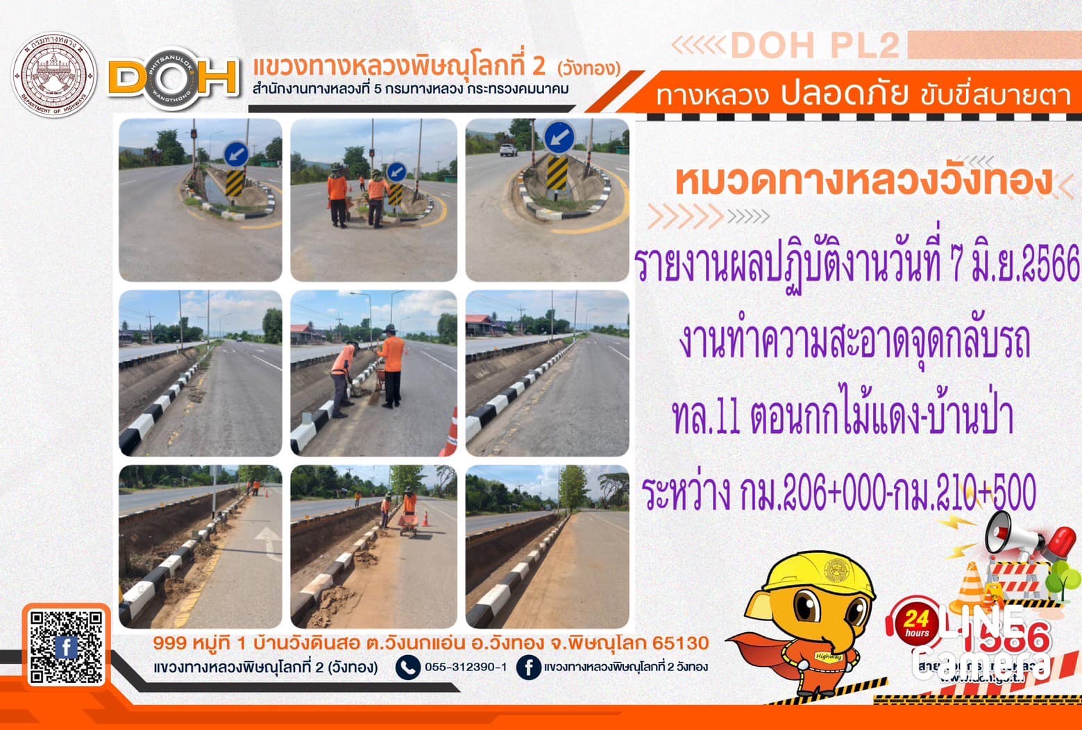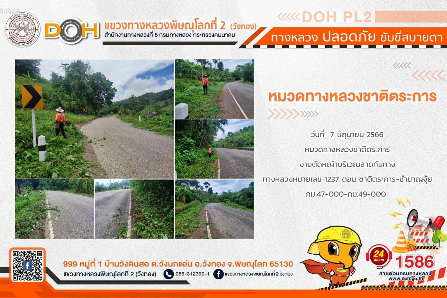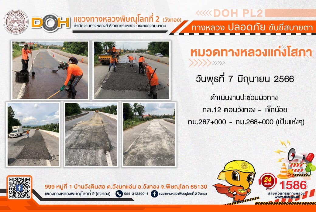 การปฏิบัติงานของ หมวดทางหลวง และ หน่วยงานในสังกัด เพื่ออำนวยความสะดวก และปลอดภัยให้กับประชาชนผู้ใช้เส้นทาง ประจำ วันพุธที่ 7 มิถุนายน 2566