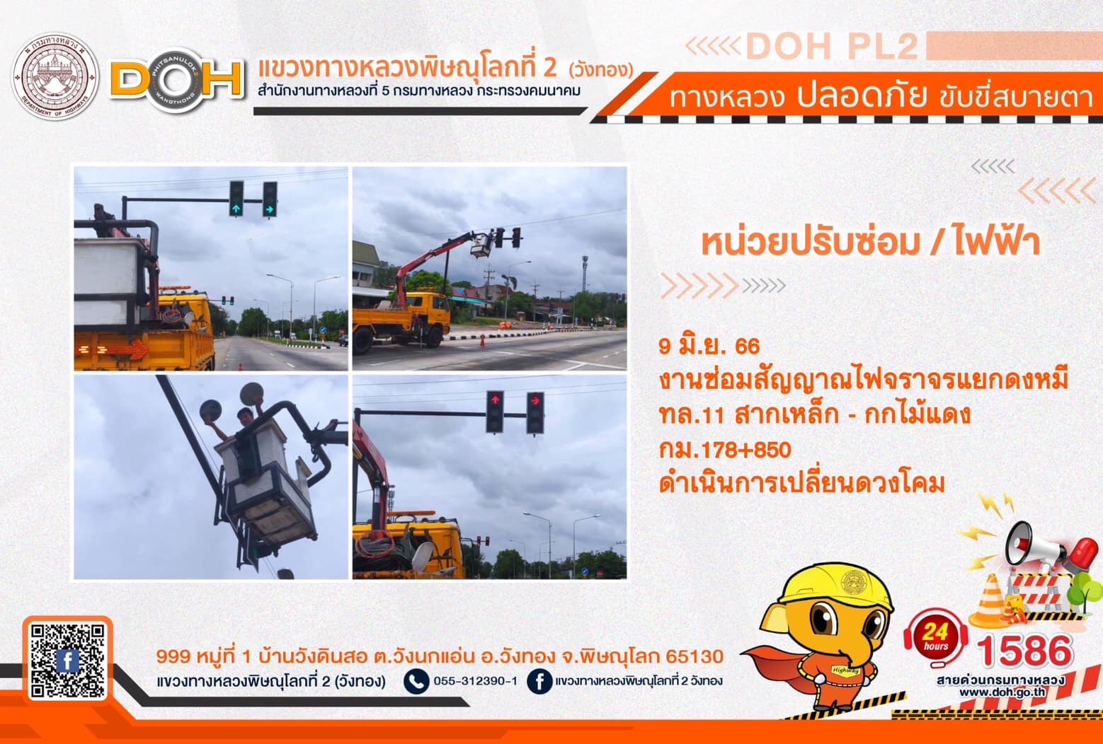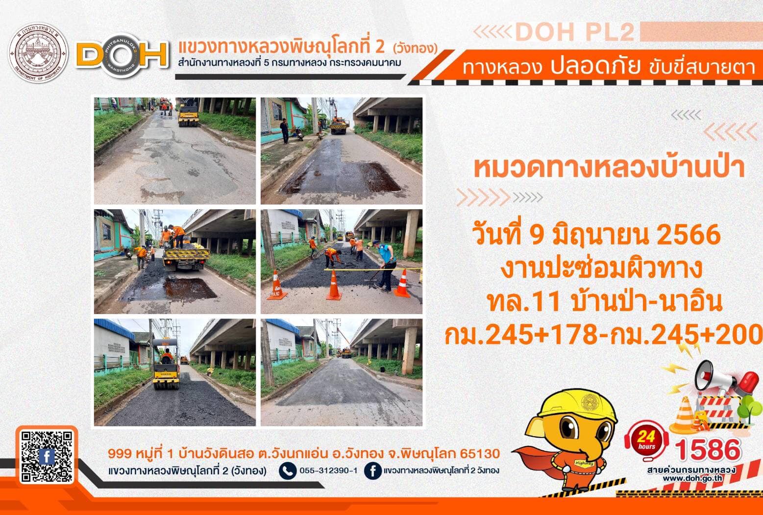 การปฏิบัติงานของ หมวดทางหลวง และ หน่วยงานในสังกัด เพื่ออำนวยความสะดวก และปลอดภัยให้กับประชาชนผู้ใช้เส้นทาง ประจำ วันศุกร์ที่ 9 มิถุนายน 2566
