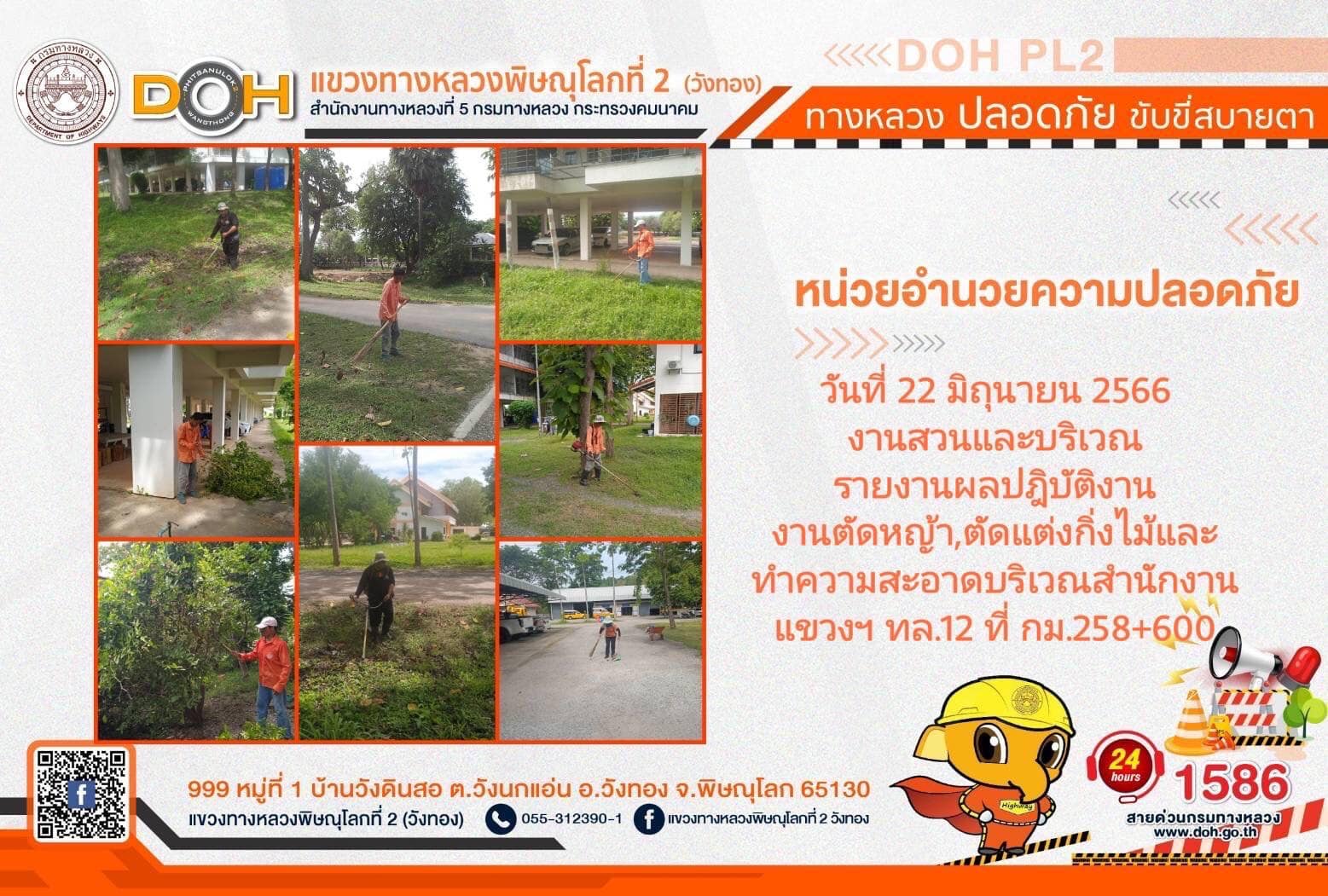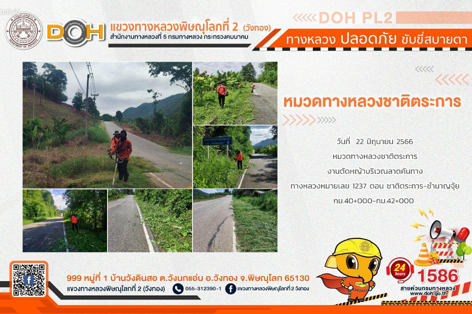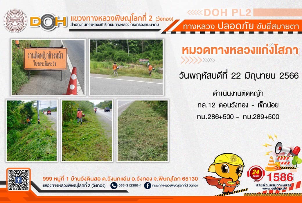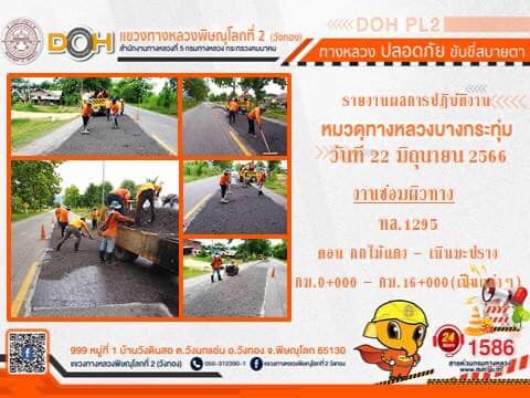 การปฏิบัติงานของ หมวดทางหลวง และ หน่วยงานในสังกัด เพื่ออำนวยความสะดวก และปลอดภัยให้กับประชาชนผู้ใช้เส้นทาง ประจำ วันพฤหัสบดีที่ 22 มิถุนายน 2566