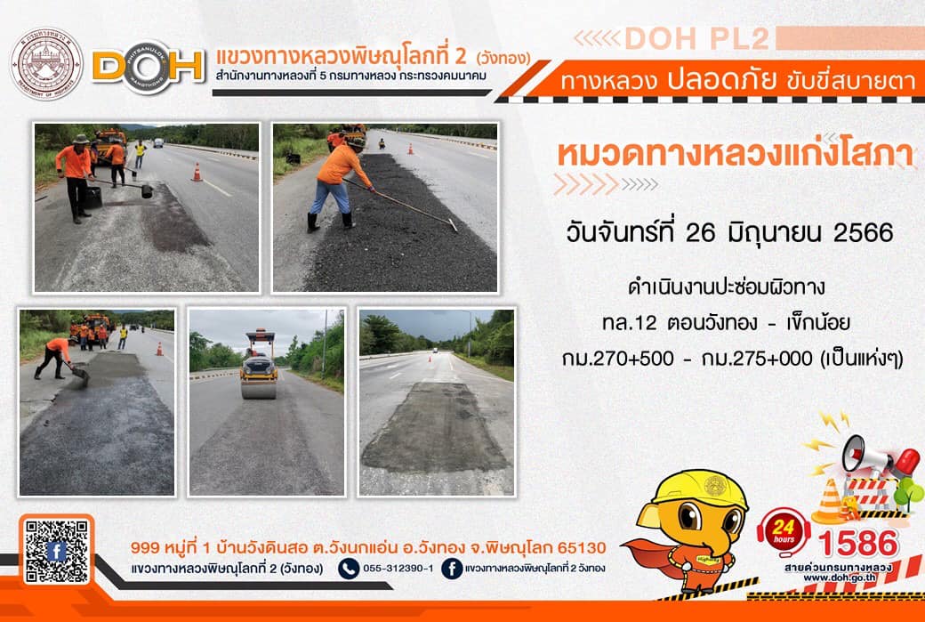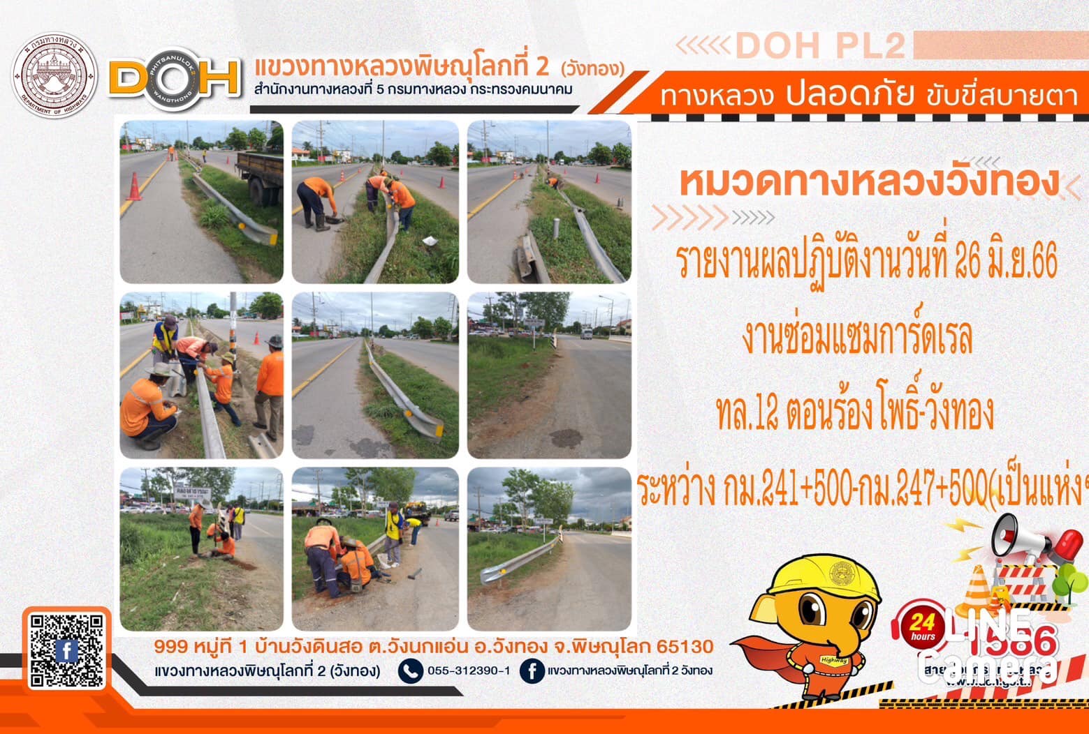 การปฏิบัติงานของ หมวดทางหลวง และ หน่วยงานในสังกัด เพื่ออำนวยความสะดวก และปลอดภัยให้กับประชาชนผู้ใช้เส้นทาง ประจำ วันจันทร์ที่ 26 มิถุนายน 2566
