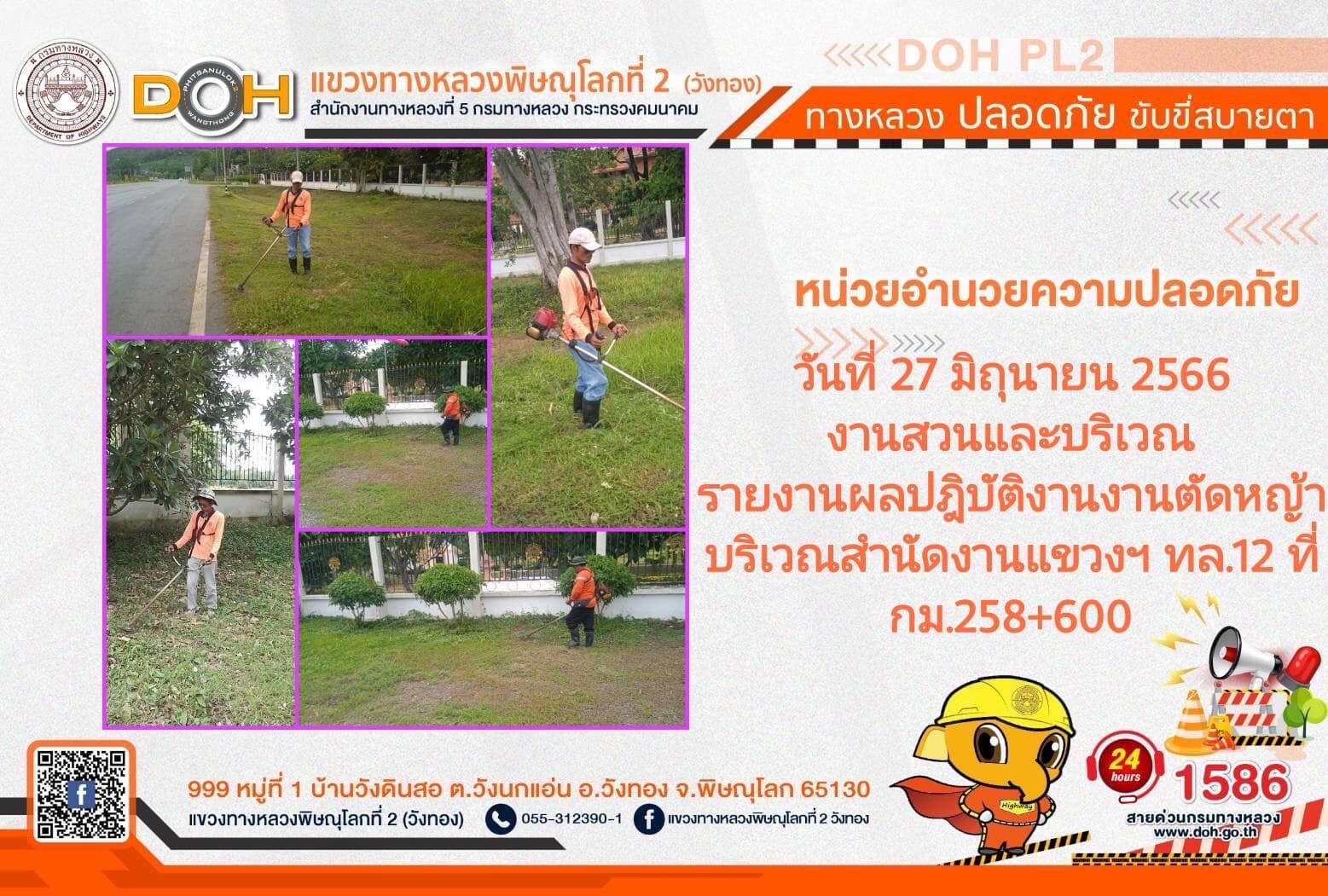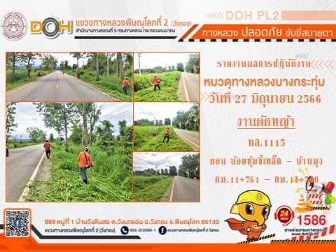 การปฏิบัติงานของ หมวดทางหลวง และ หน่วยงานในสังกัด เพื่ออำนวยความสะดวก และปลอดภัยให้กับประชาชนผู้ใช้เส้นทาง ประจำ วันอังคารที่ 27 มิถุนายน 2566