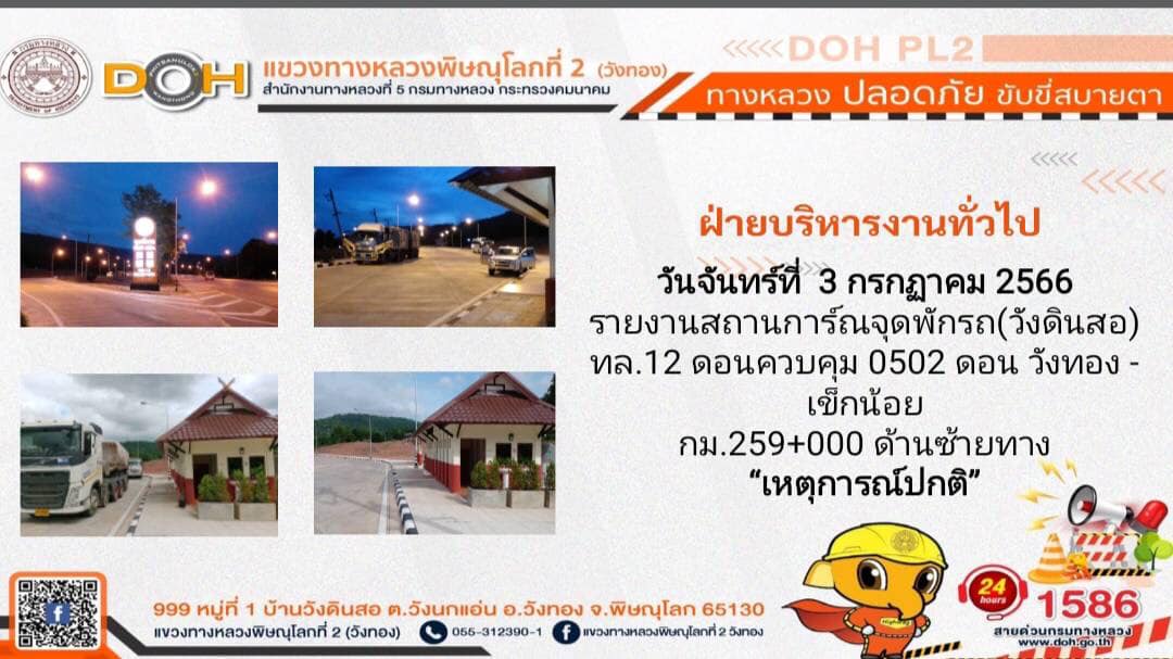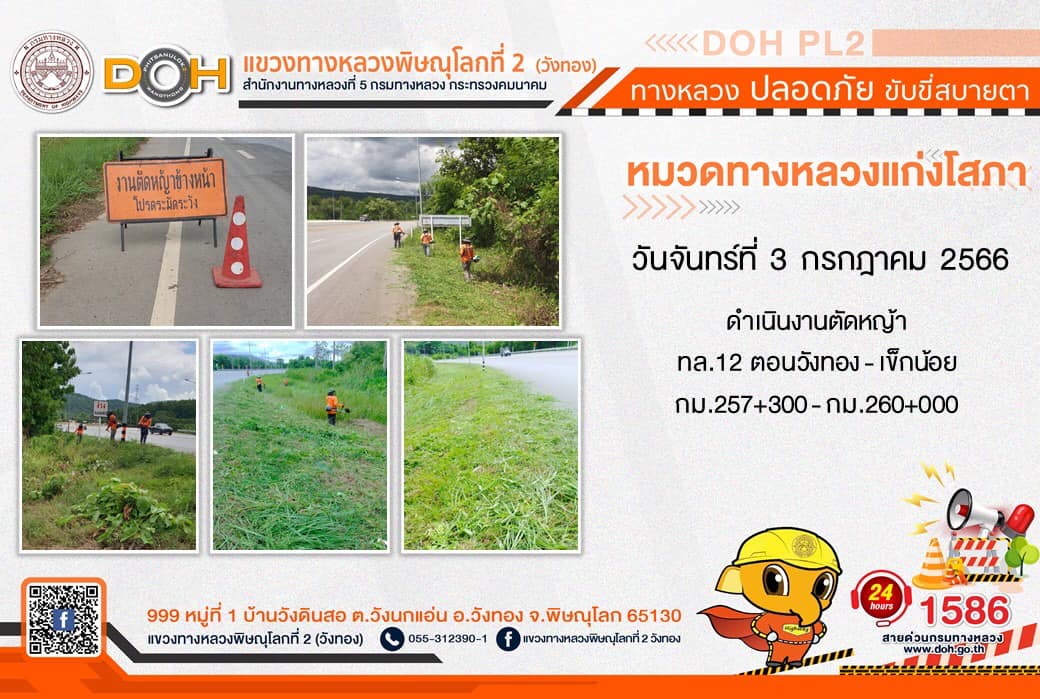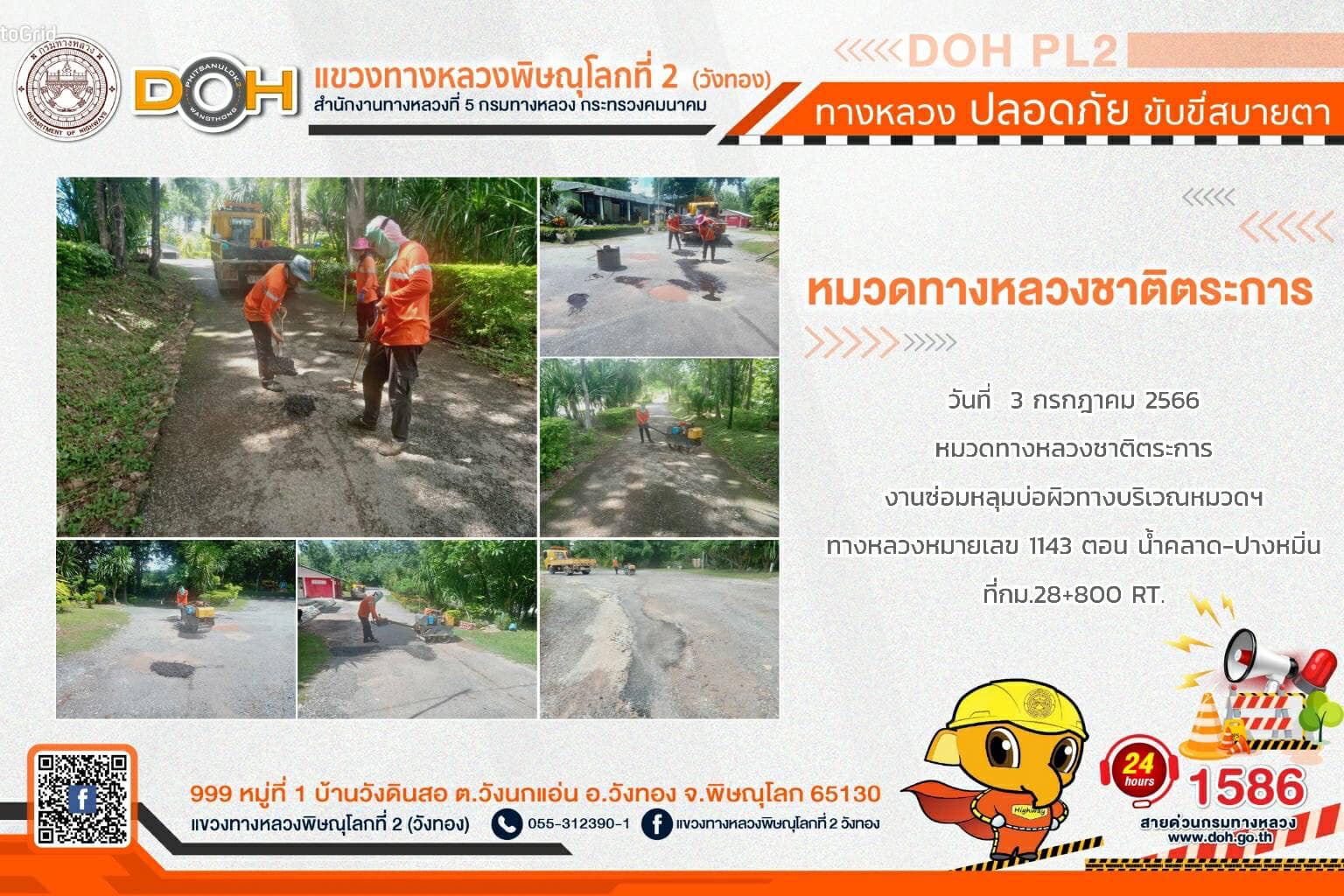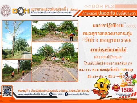 การปฏิบัติงานของ หมวดทางหลวง และ หน่วยงานในสังกัด เพื่ออำนวยความสะดวก และปลอดภัยให้กับประชาชนผู้ใช้เส้นทาง ประจำ วันจันทร์ที่ 3 กรกฎาคม 2566