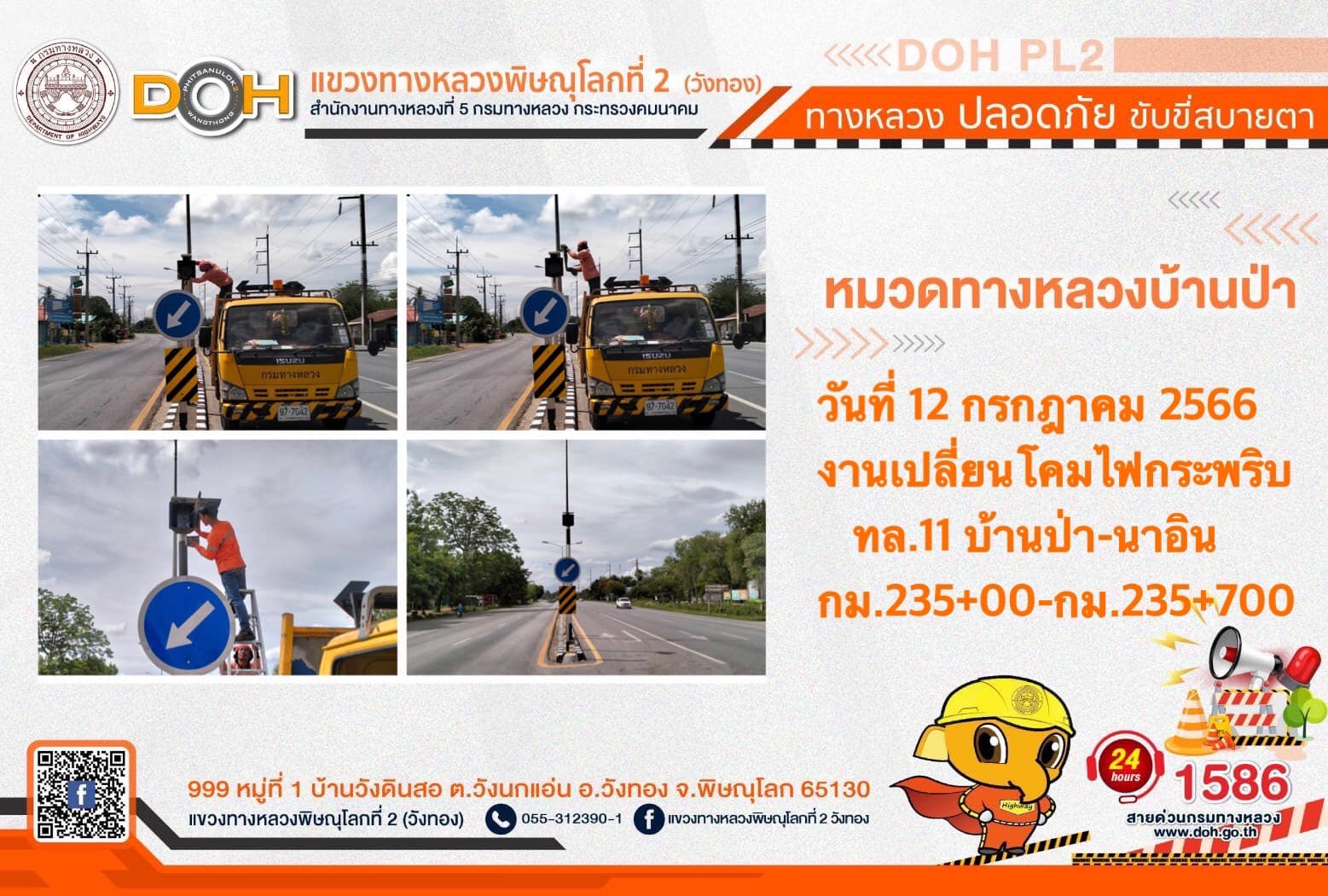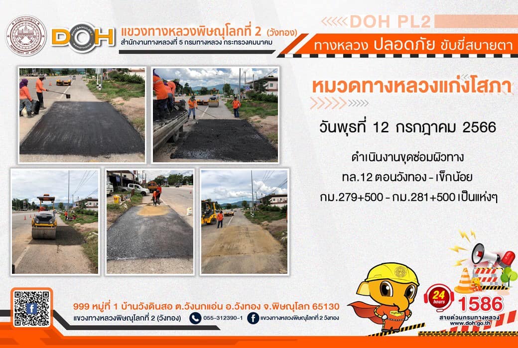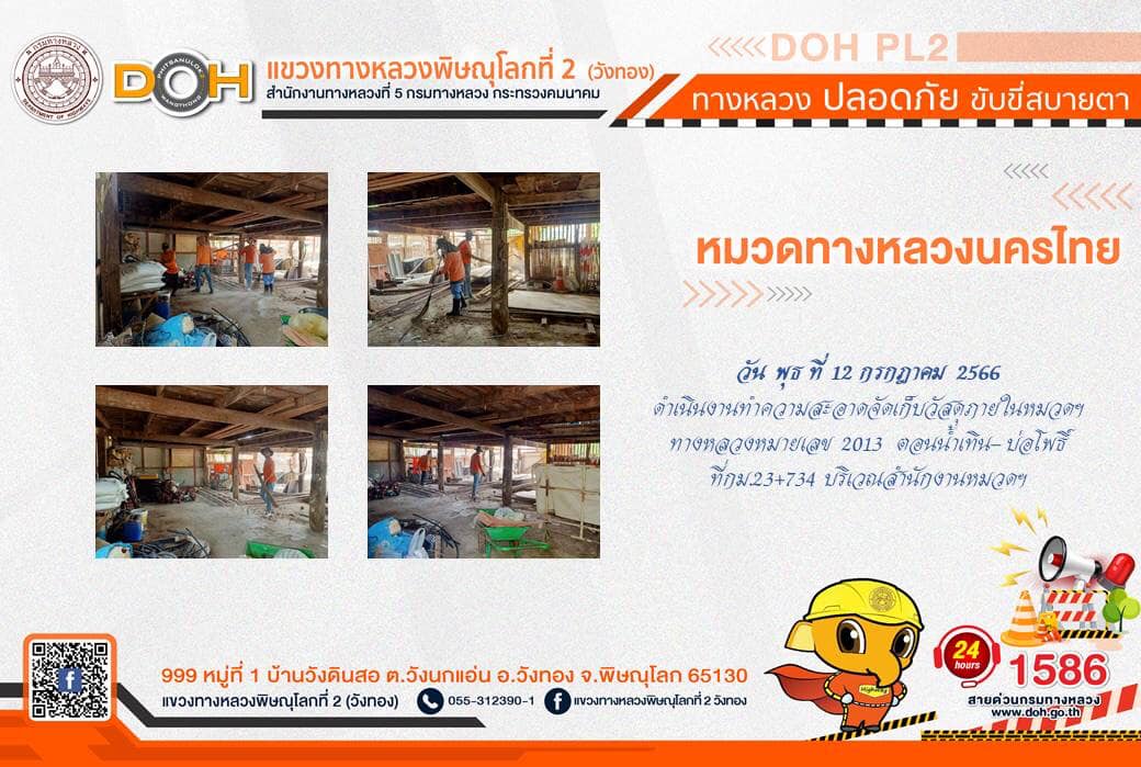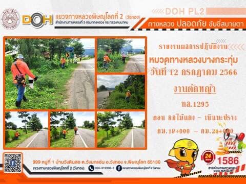 การปฏิบัติงานของ หมวดทางหลวง และ หน่วยงานในสังกัด เพื่ออำนวยความสะดวก และปลอดภัยให้กับประชาชนผู้ใช้เส้นทาง ประจำ วันพุธที่ 12 กรกฎาคม 2566