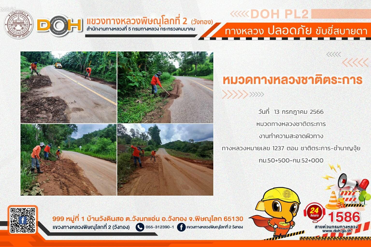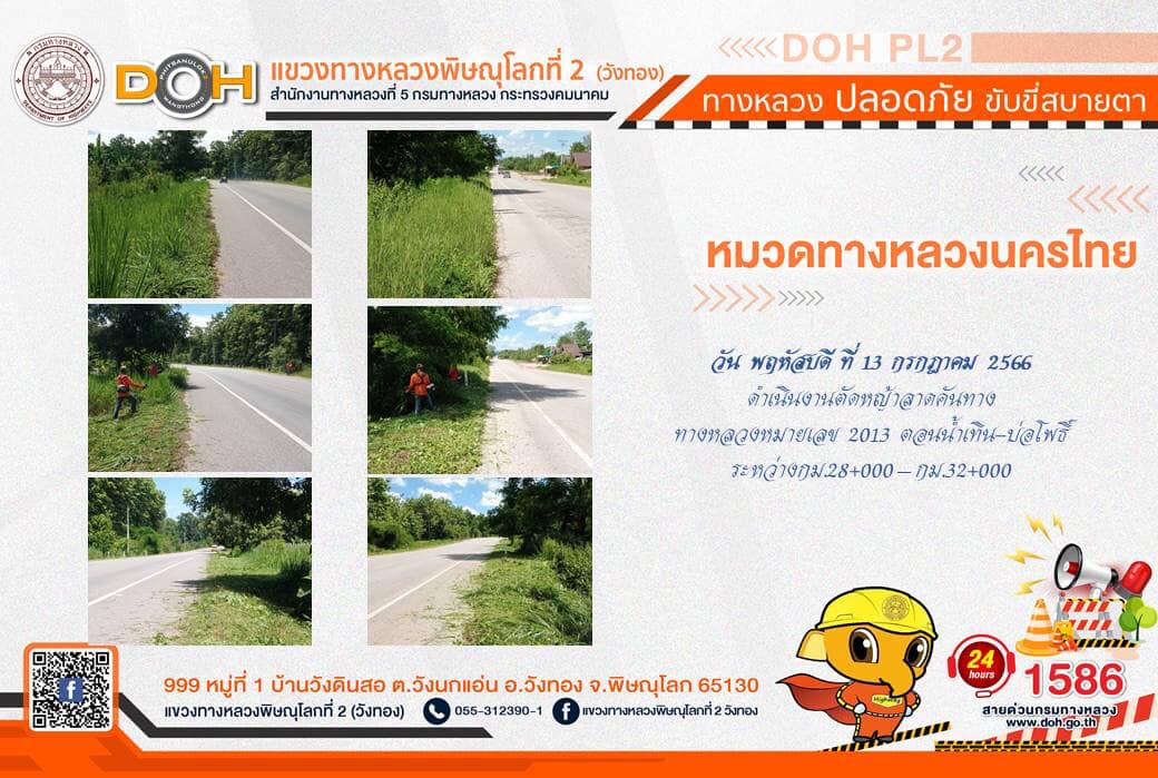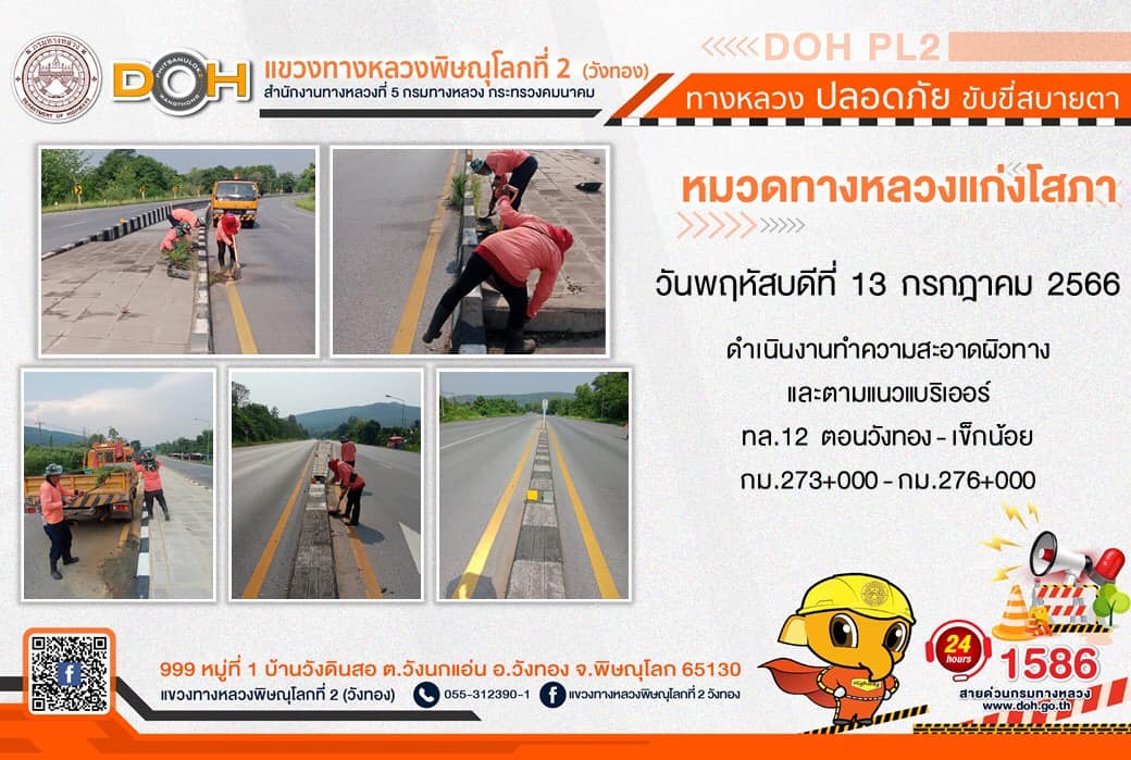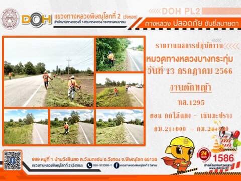 การปฏิบัติงานของ หมวดทางหลวง และ หน่วยงานในสังกัด เพื่ออำนวยความสะดวก และปลอดภัยให้กับประชาชนผู้ใช้เส้นทาง ประจำ วันพฤหัสบดีที่ 13 กรกฎาคม 2566