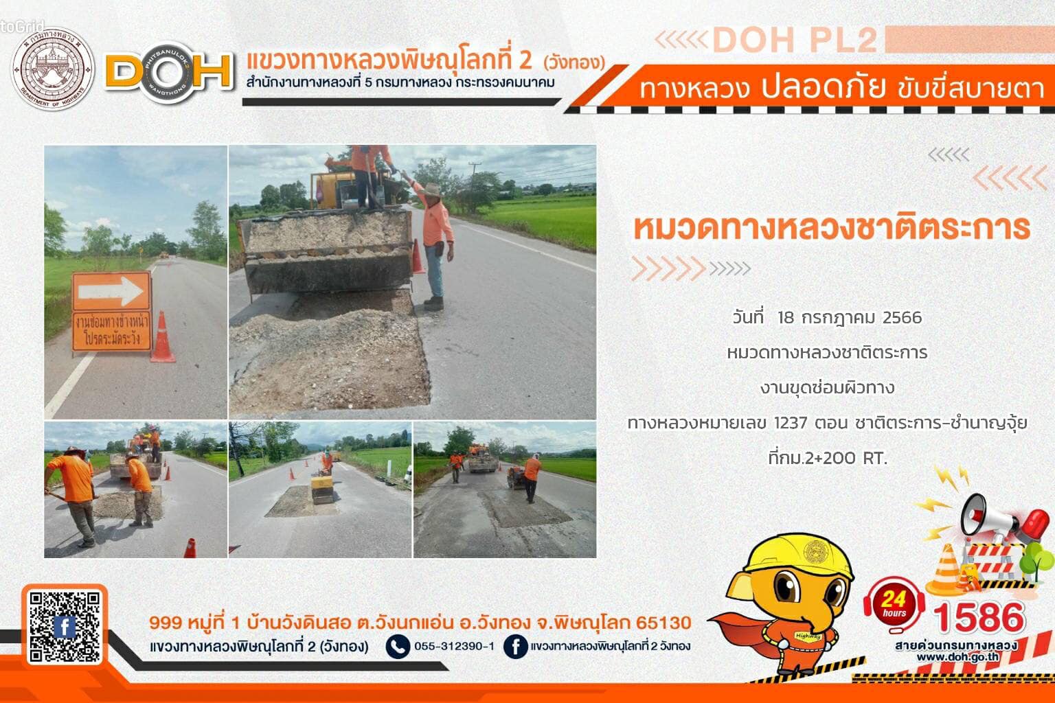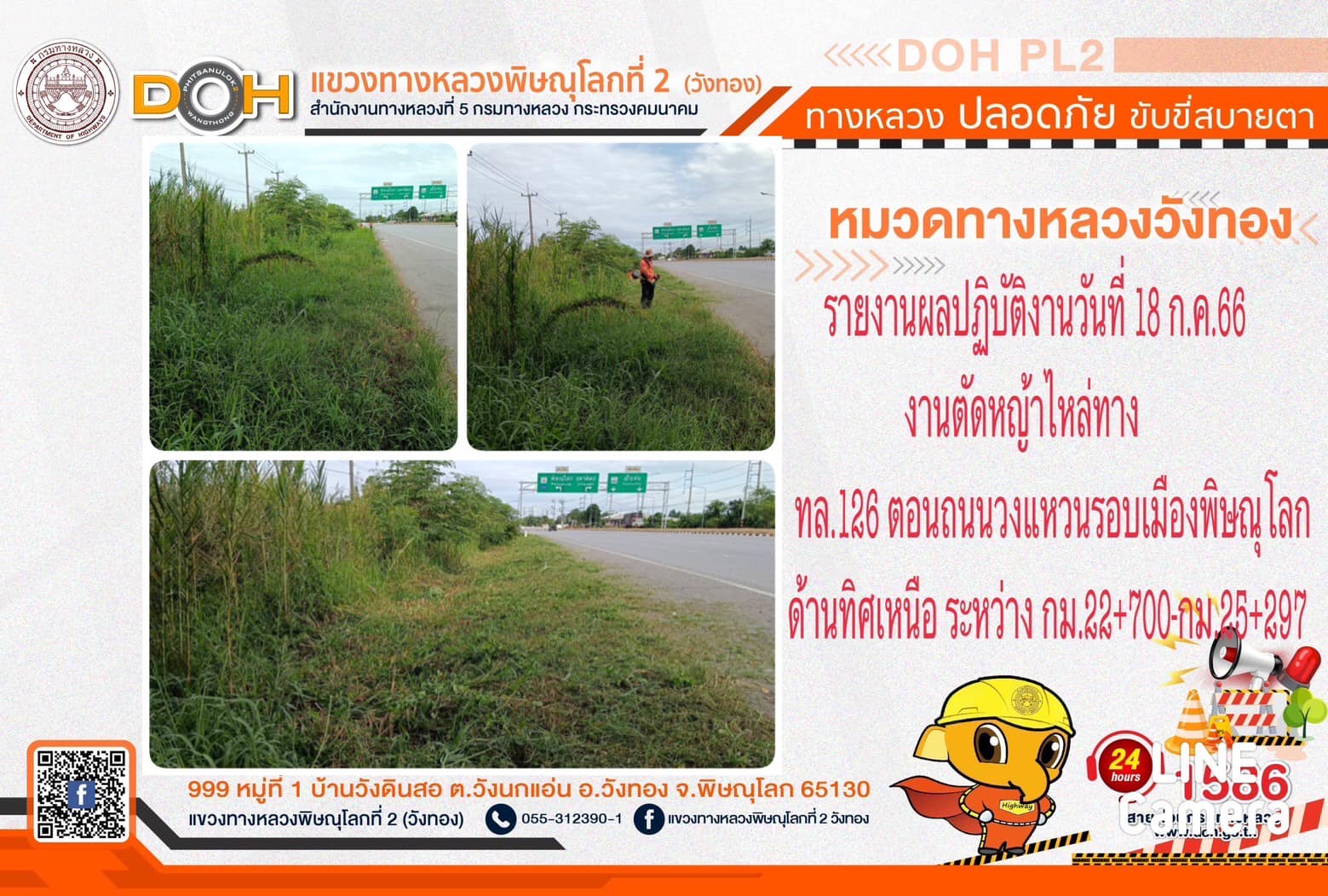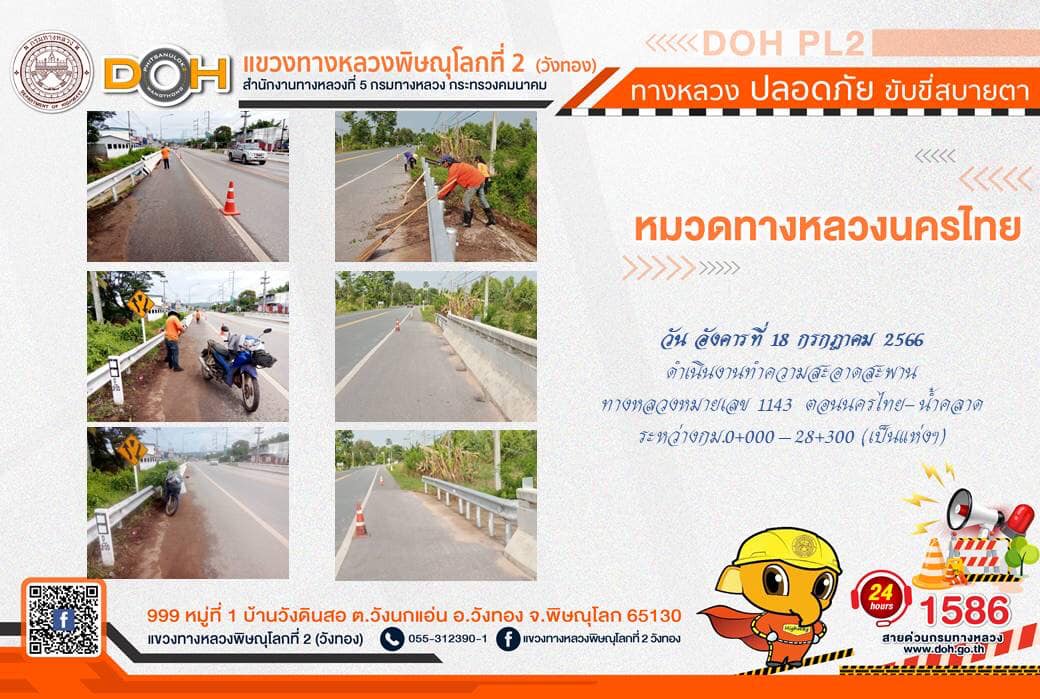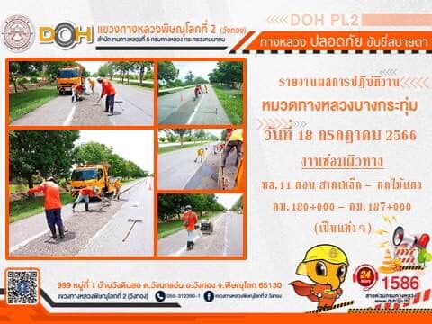 การปฏิบัติงานของ หมวดทางหลวง และ หน่วยงานในสังกัด เพื่ออำนวยความสะดวก และปลอดภัยให้กับประชาชนผู้ใช้เส้นทาง ประจำ วันอังคารที่ 18 กรกฎาคม 2566