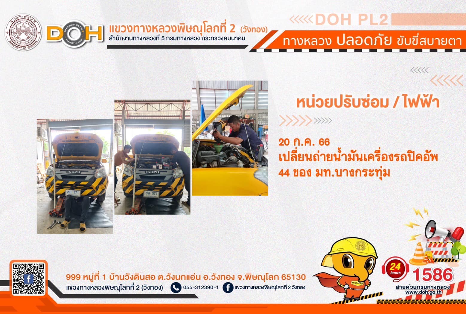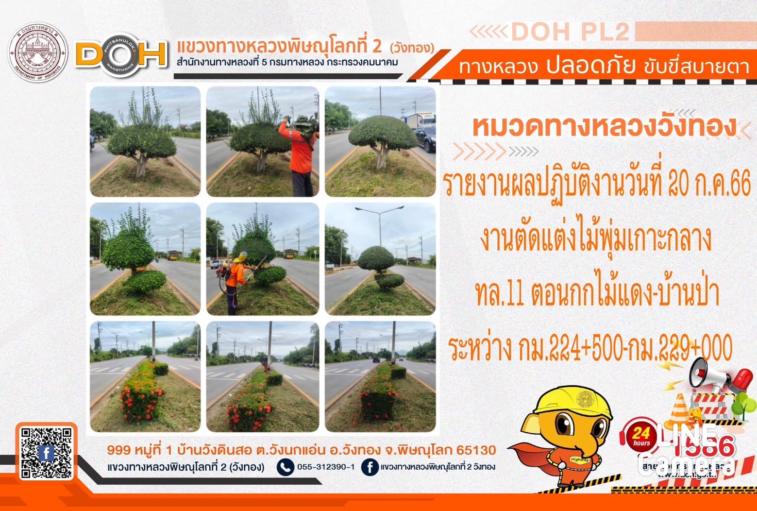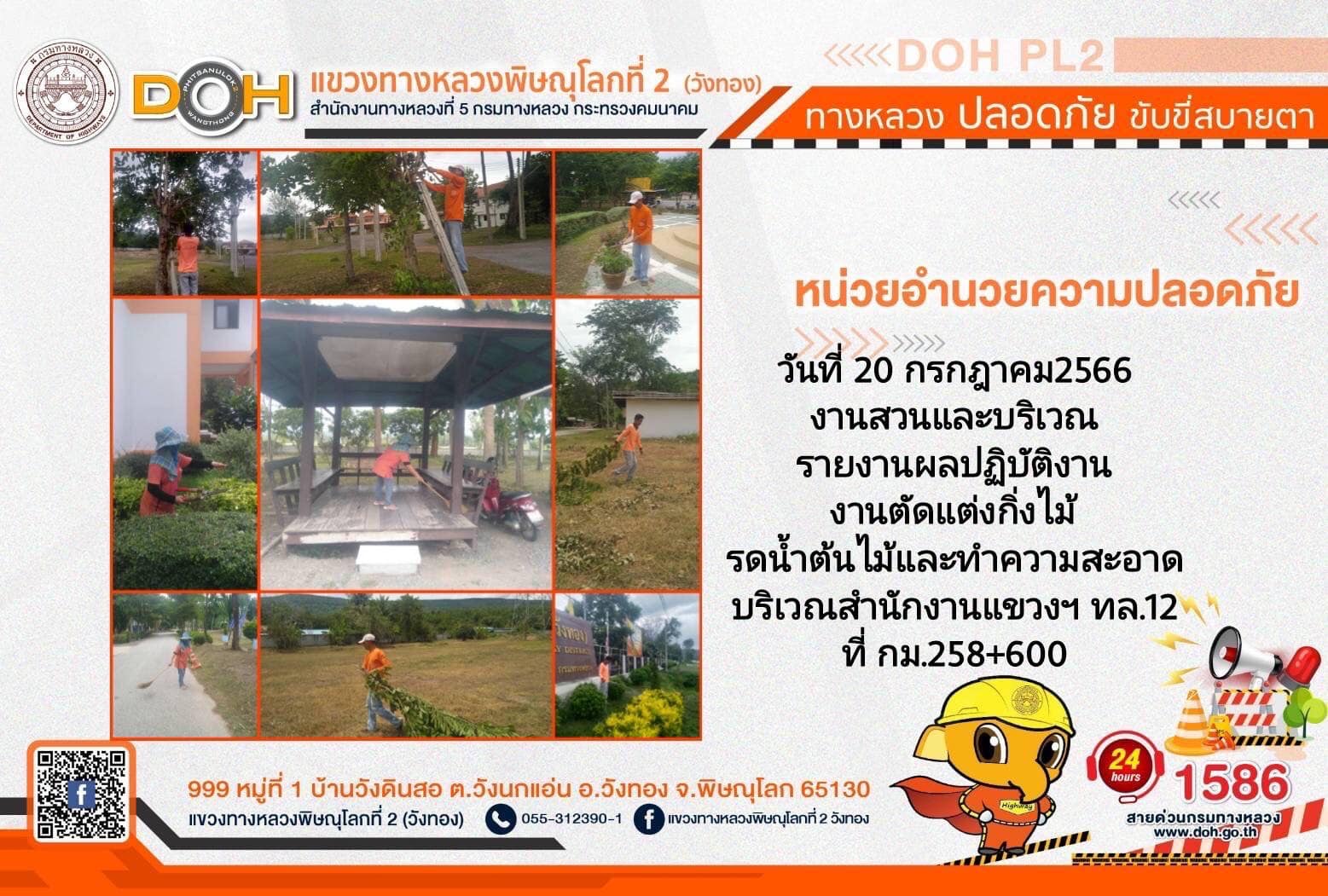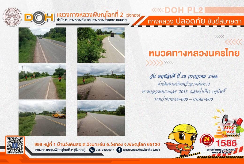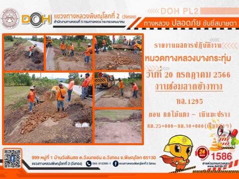 การปฏิบัติงานของ หมวดทางหลวง และ หน่วยงานในสังกัด เพื่ออำนวยความสะดวก และปลอดภัยให้กับประชาชนผู้ใช้เส้นทาง ประจำ วันพฤหัสบดีที่ 20 กรกฎาคม 2566