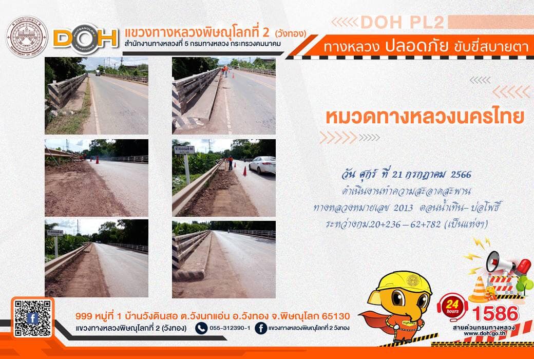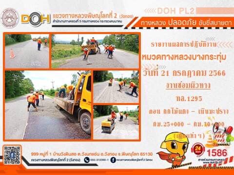 การปฏิบัติงานของ หมวดทางหลวง และ หน่วยงานในสังกัด เพื่ออำนวยความสะดวก และปลอดภัยให้กับประชาชนผู้ใช้เส้นทาง ประจำ วันศุกร์ที่ 21 กรกฎาคม 2566