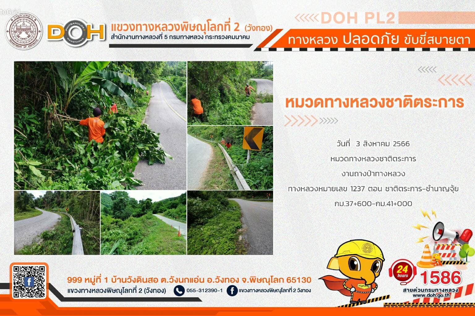 การปฏิบัติงานของ หมวดทางหลวง และ หน่วยงานในสังกัด เพื่ออำนวยความสะดวก และปลอดภัยให้กับประชาชนผู้ใช้เส้นทาง ประจำ วันพฤหัสบดีที่ 3. สิงหาคม 2566