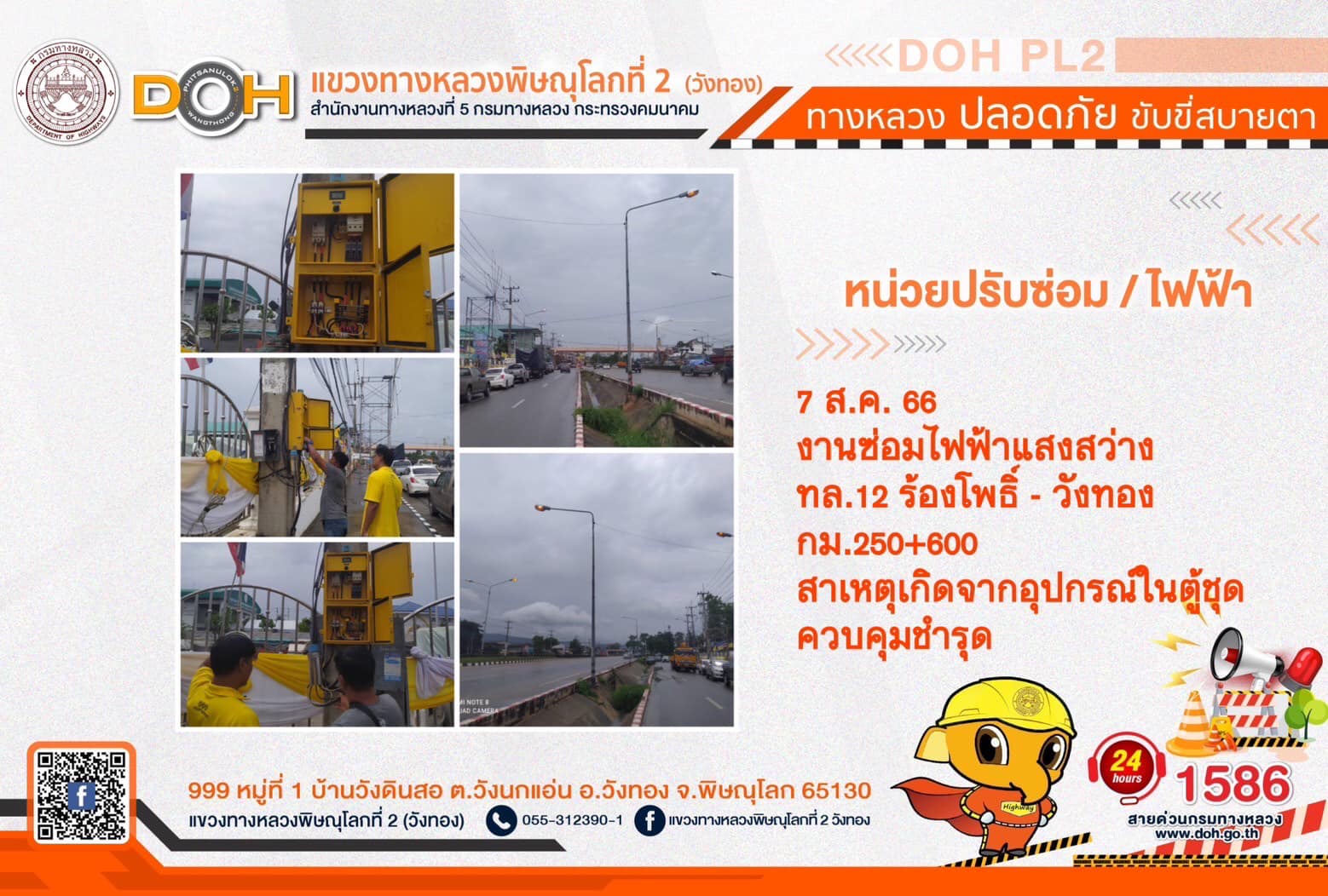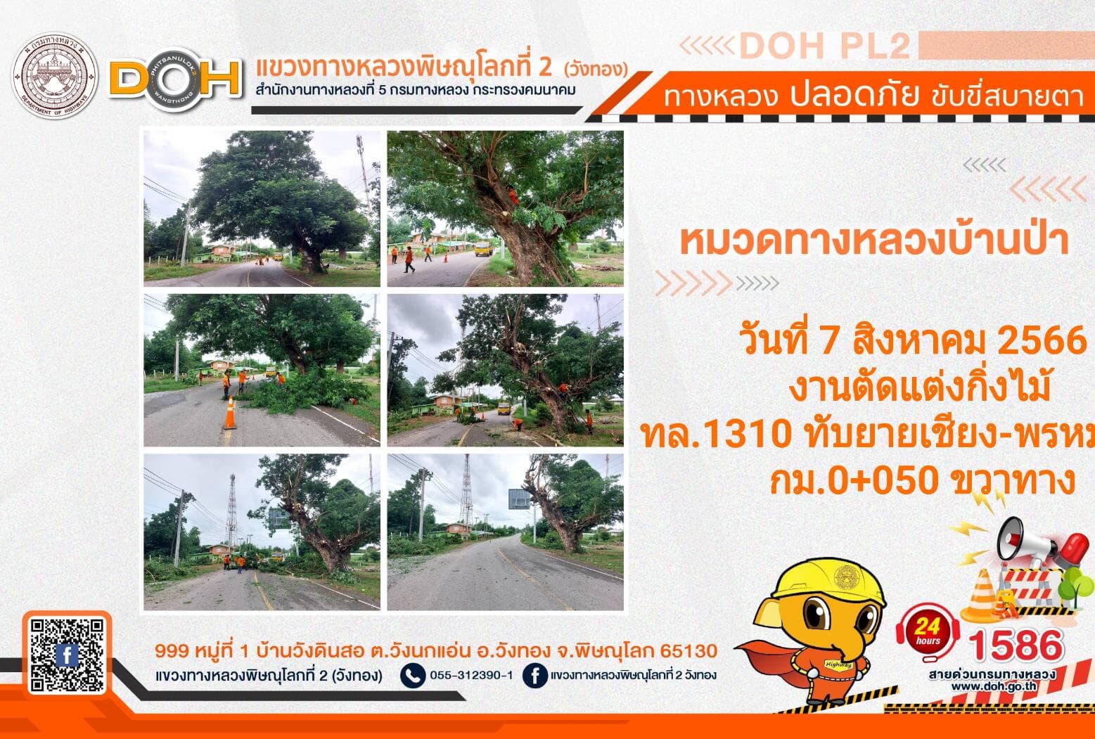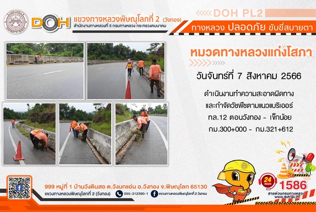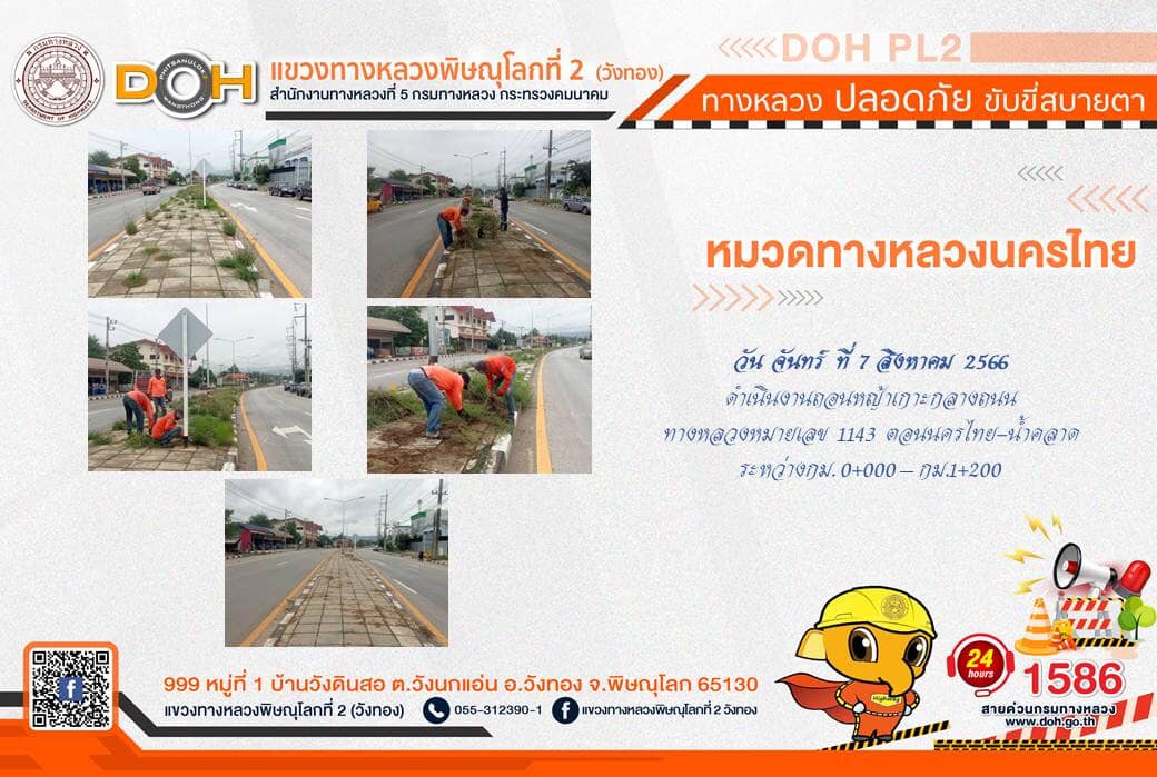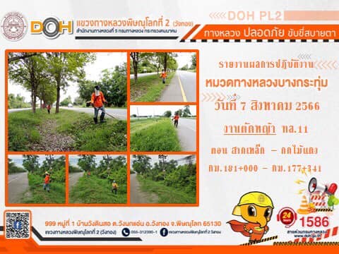 การปฏิบัติงานของ หมวดทางหลวง และ หน่วยงานในสังกัด เพื่ออำนวยความสะดวก และปลอดภัยให้กับประชาชนผู้ใช้เส้นทาง ประจำ วันจันทร์ที่ 7 สิงหาคม 2566