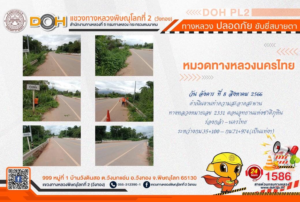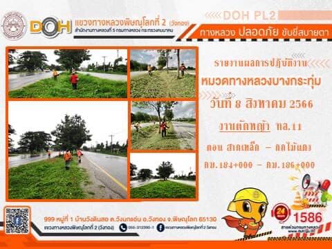 การปฏิบัติงานของ หมวดทางหลวง และ หน่วยงานในสังกัด เพื่ออำนวยความสะดวก และปลอดภัยให้กับประชาชนผู้ใช้เส้นทาง ประจำ วันอังคารที่ 8 สิงหาคม 2566
