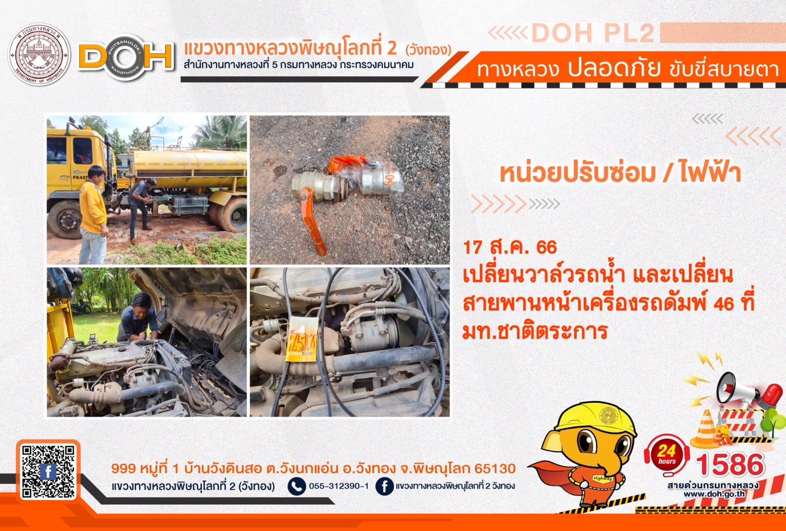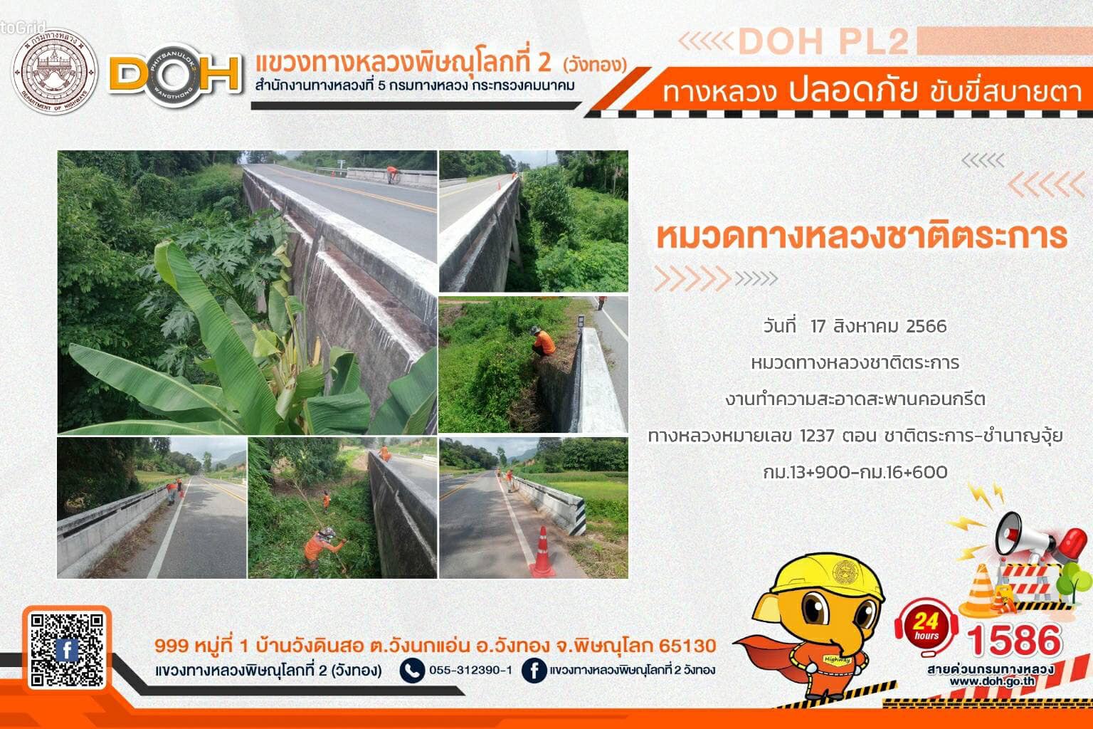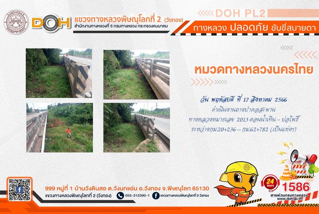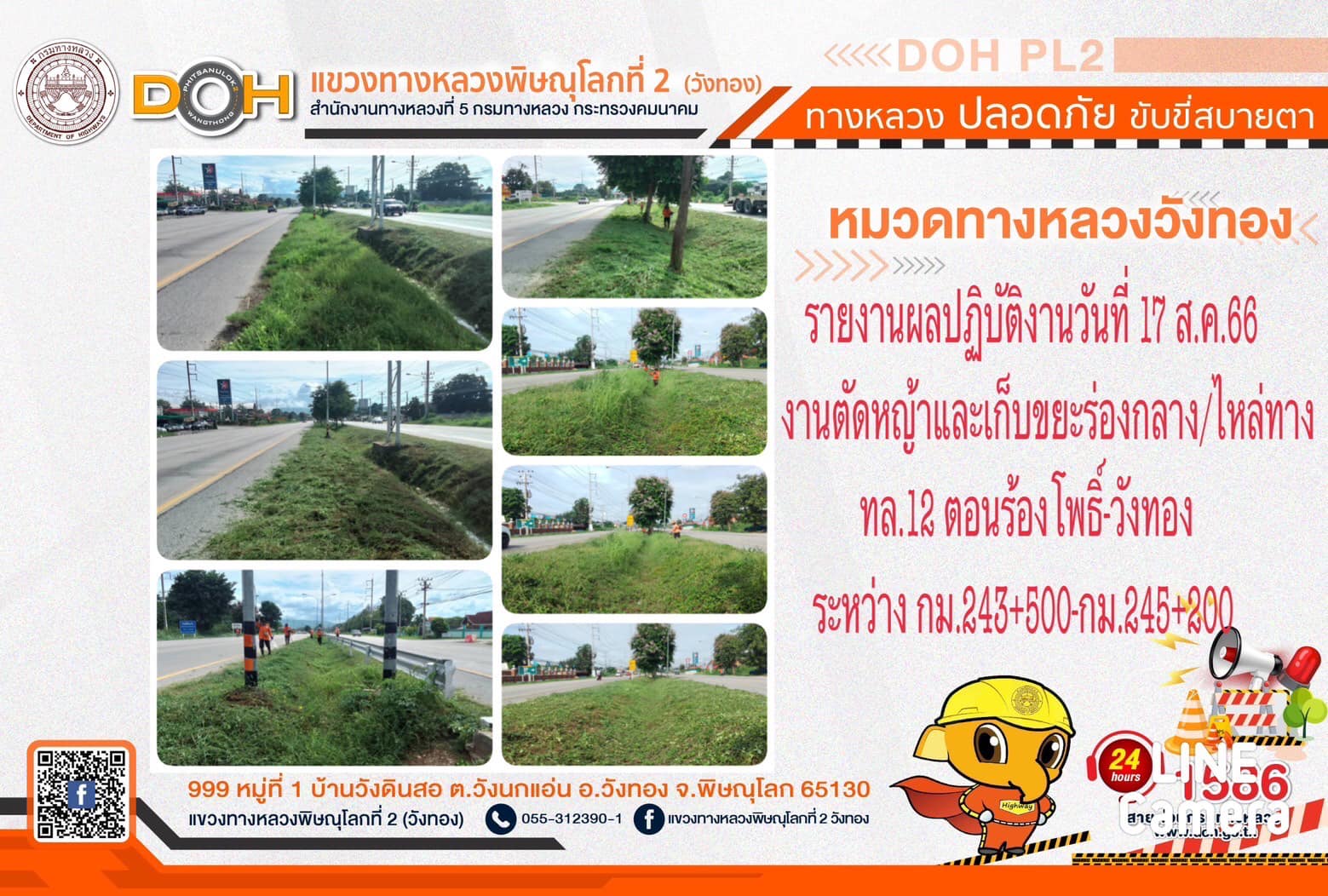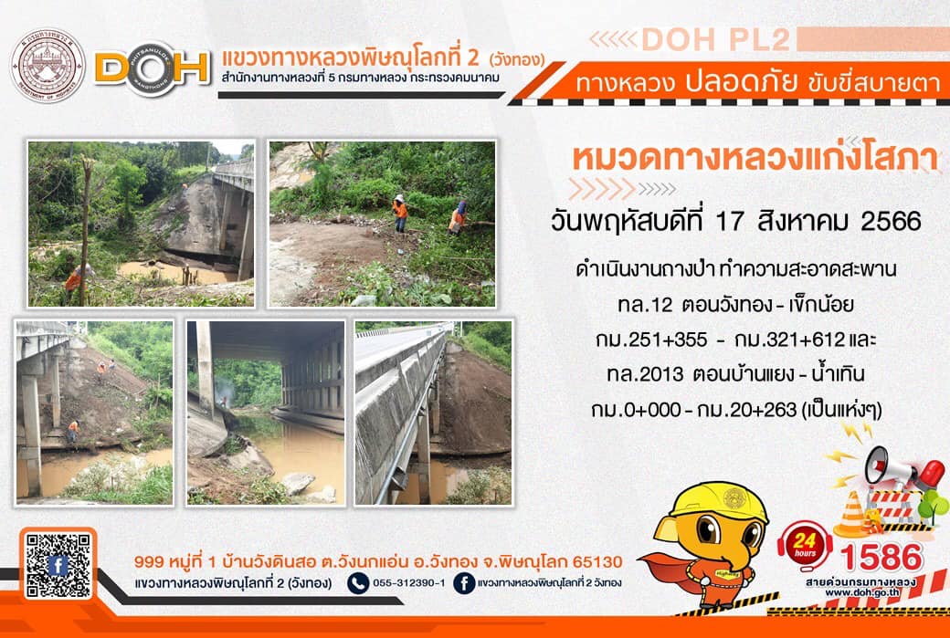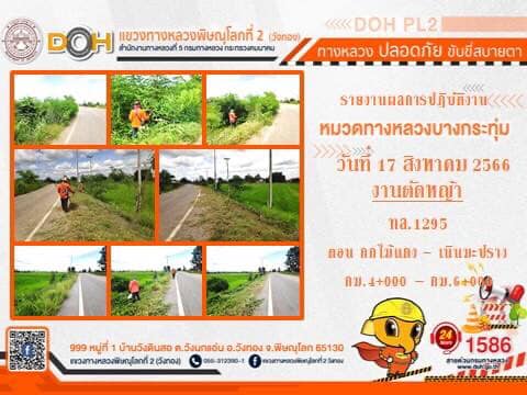 การปฏิบัติงานของ หมวดทางหลวง และ หน่วยงานในสังกัด เพื่ออำนวยความสะดวก และปลอดภัยให้กับประชาชนผู้ใช้เส้นทาง ประจำ วันพฤหัสบดีที่ 17 สิงหาคม 2566