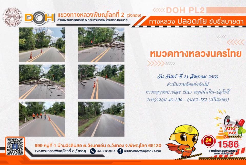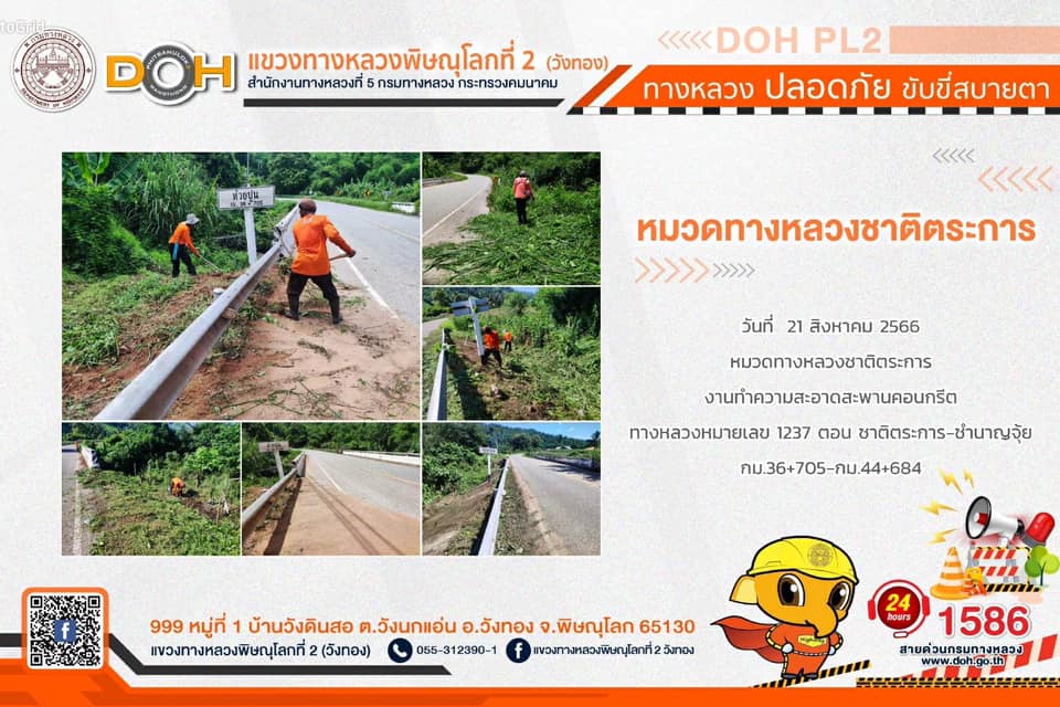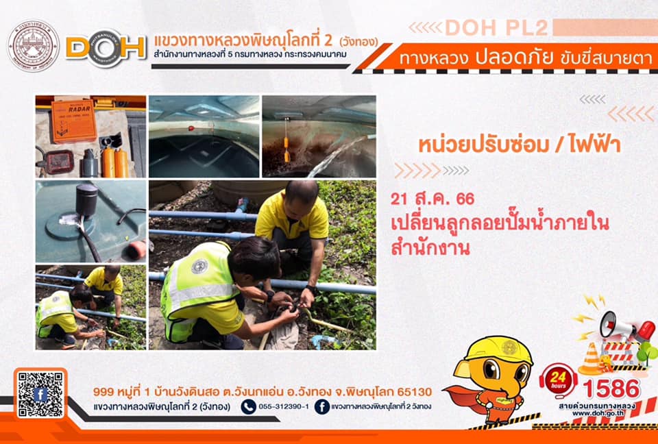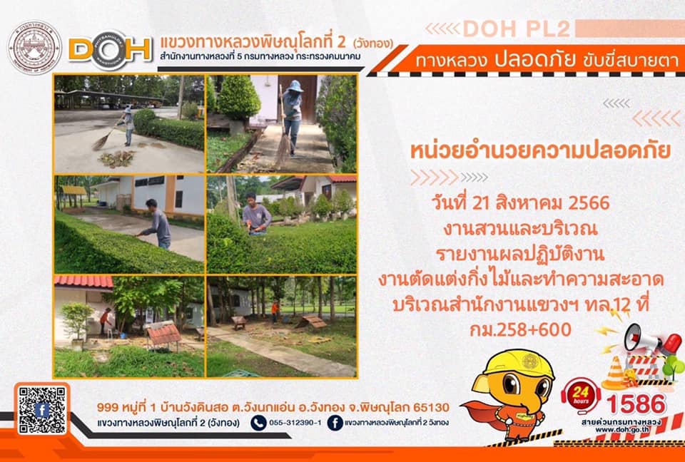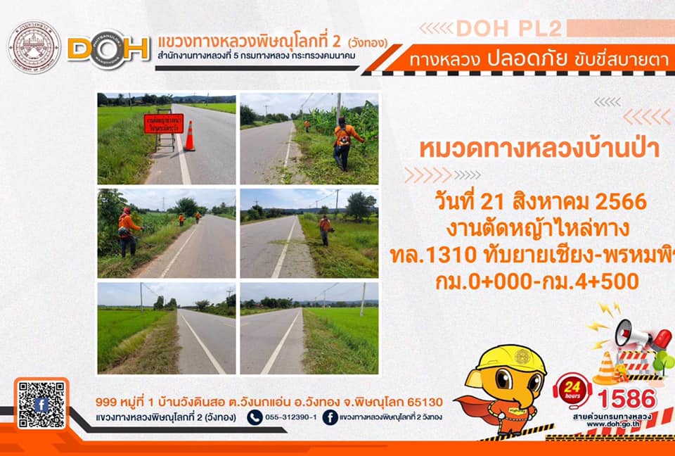 การปฏิบัติงานของ หมวดทางหลวง และ หน่วยงานในสังกัด เพื่ออำนวยความสะดวก และปลอดภัยให้กับประชาชนผู้ใช้เส้นทาง ประจำ วันจันทร์ที่ 21 สิงหาคม 2566