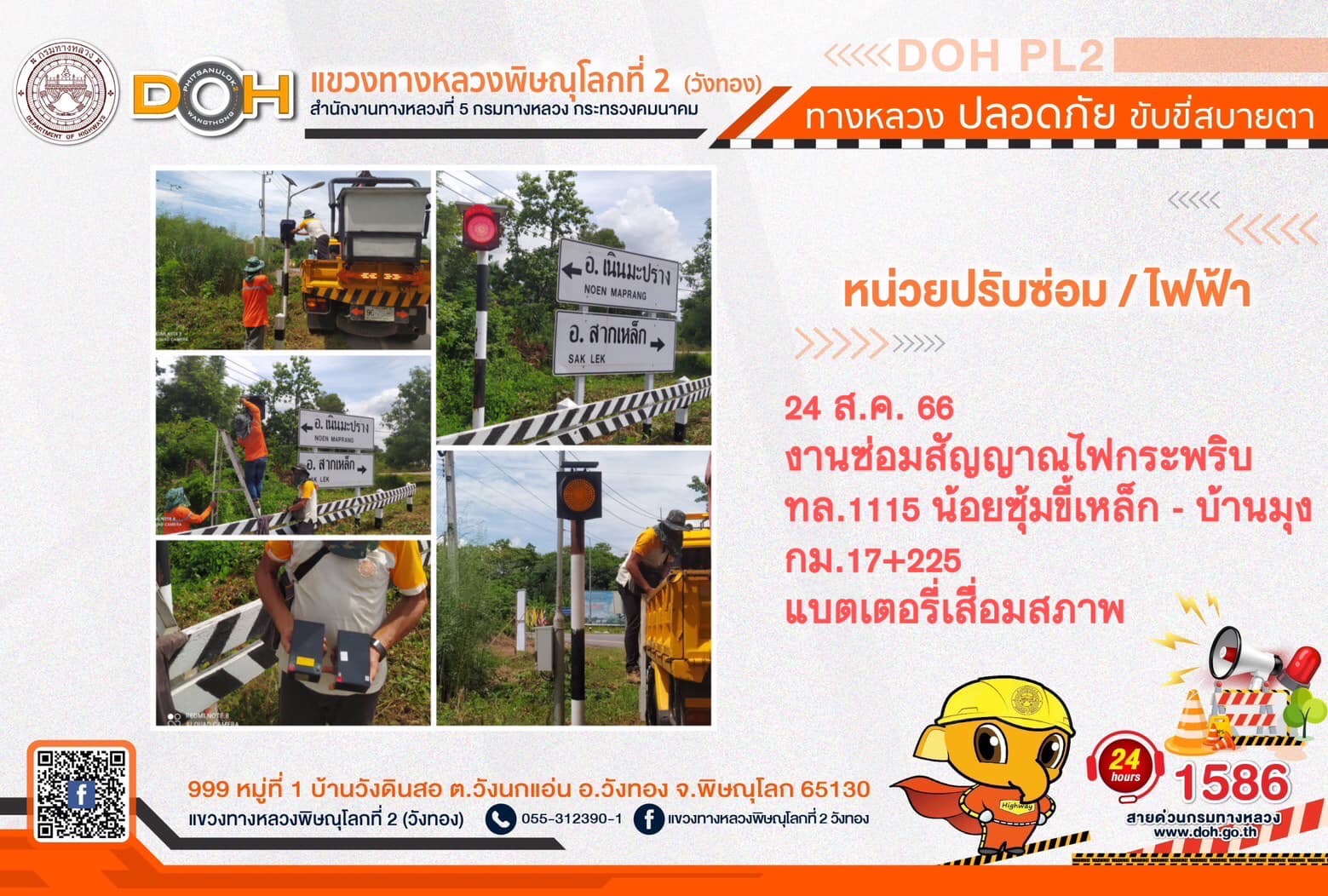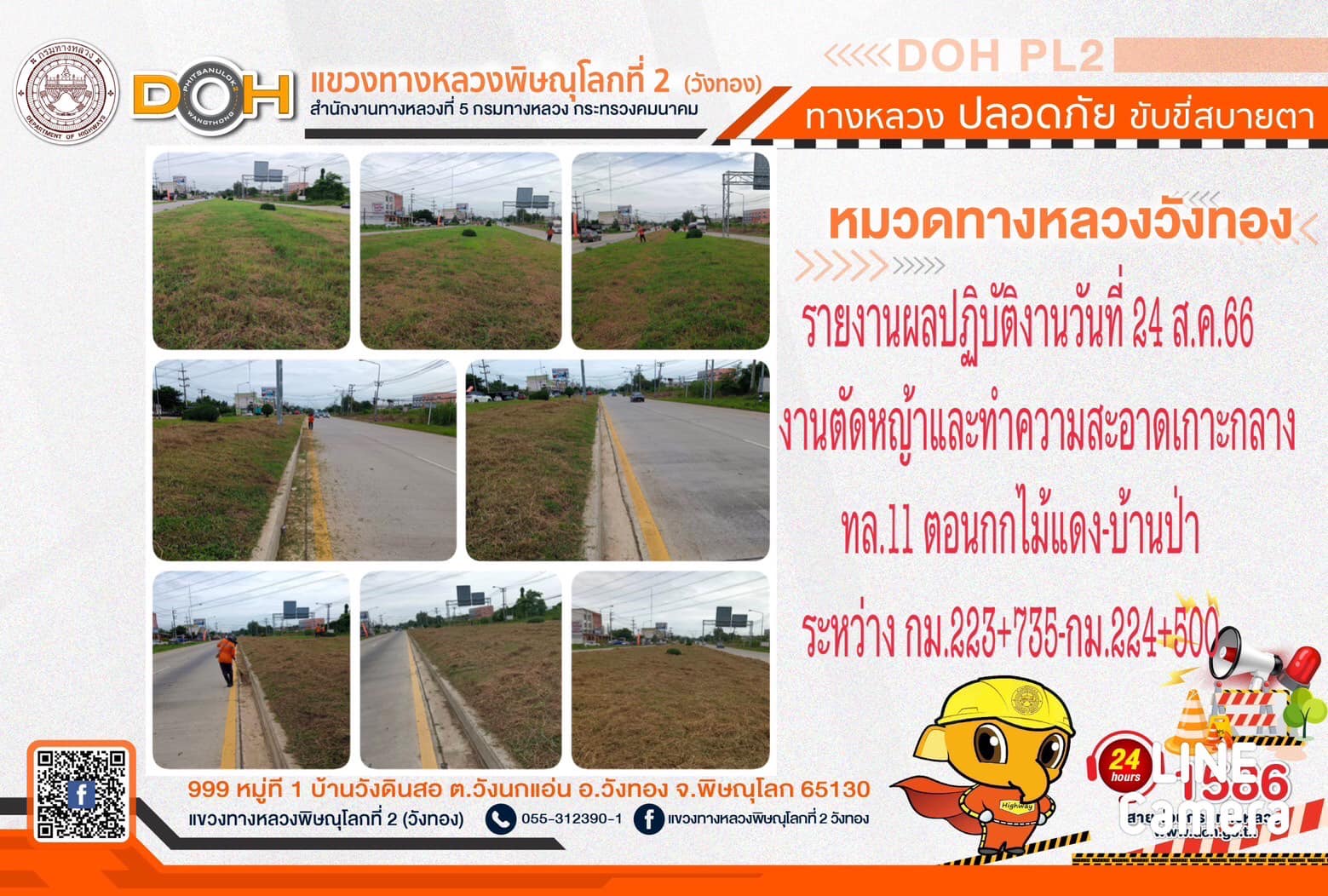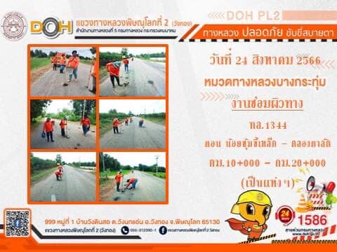การปฏิบัติงานของ หมวดทางหลวง และ หน่วยงานในสังกัด เพื่ออำนวยความสะดวก และปลอดภัยให้กับประชาชนผู้ใช้เส้นทาง ประจำ วันพฤหัสบดีที่ 24 สิงหาคม 2566