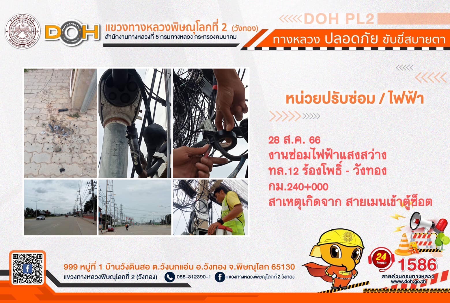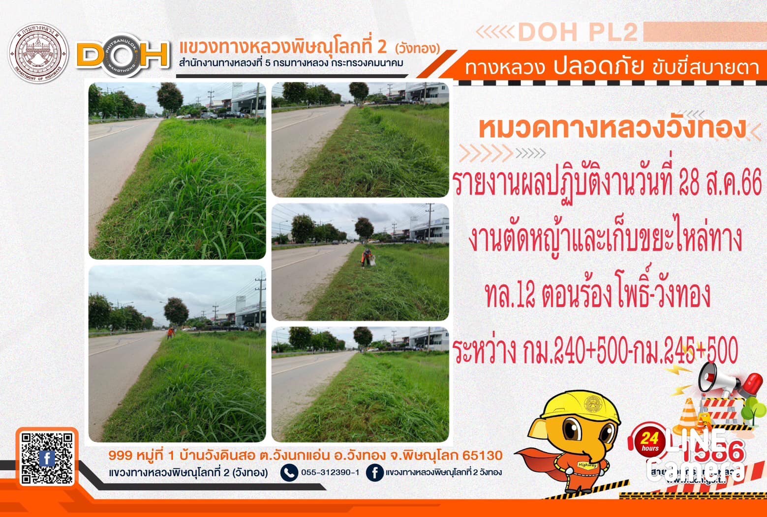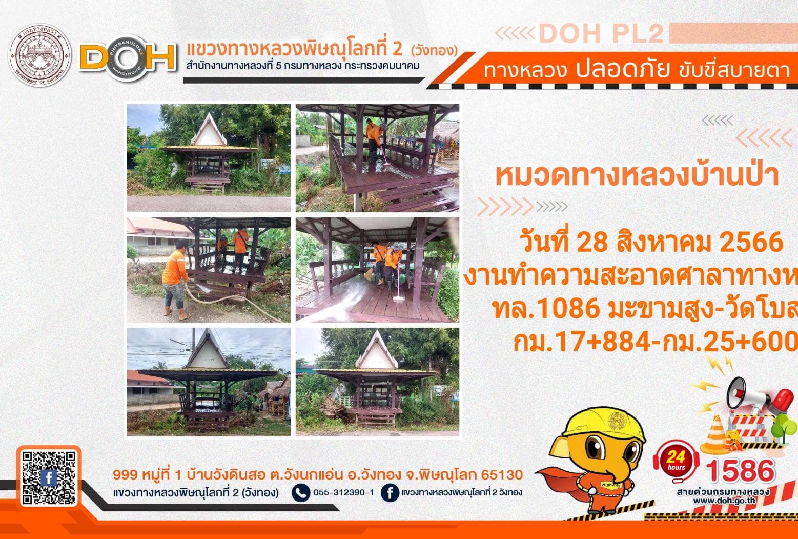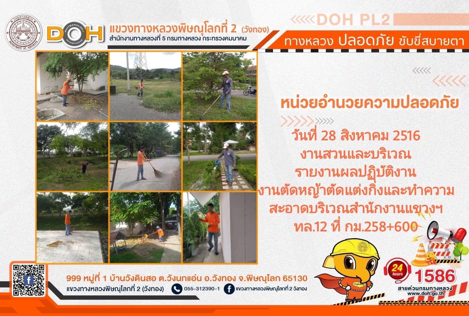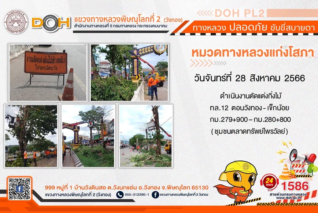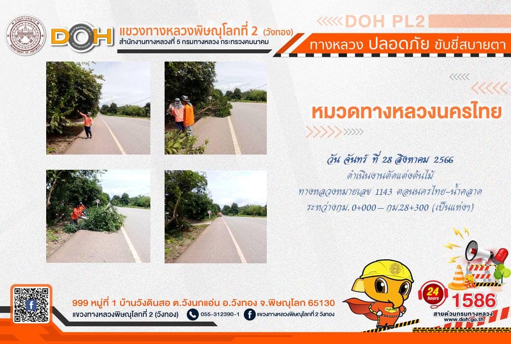 การปฏิบัติงานของ หมวดทางหลวง และ หน่วยงานในสังกัด เพื่ออำนวยความสะดวก และปลอดภัยให้กับประชาชนผู้ใช้เส้นทาง ประจำ วันจันทร์ที่ 28 สิงหาคม 2566